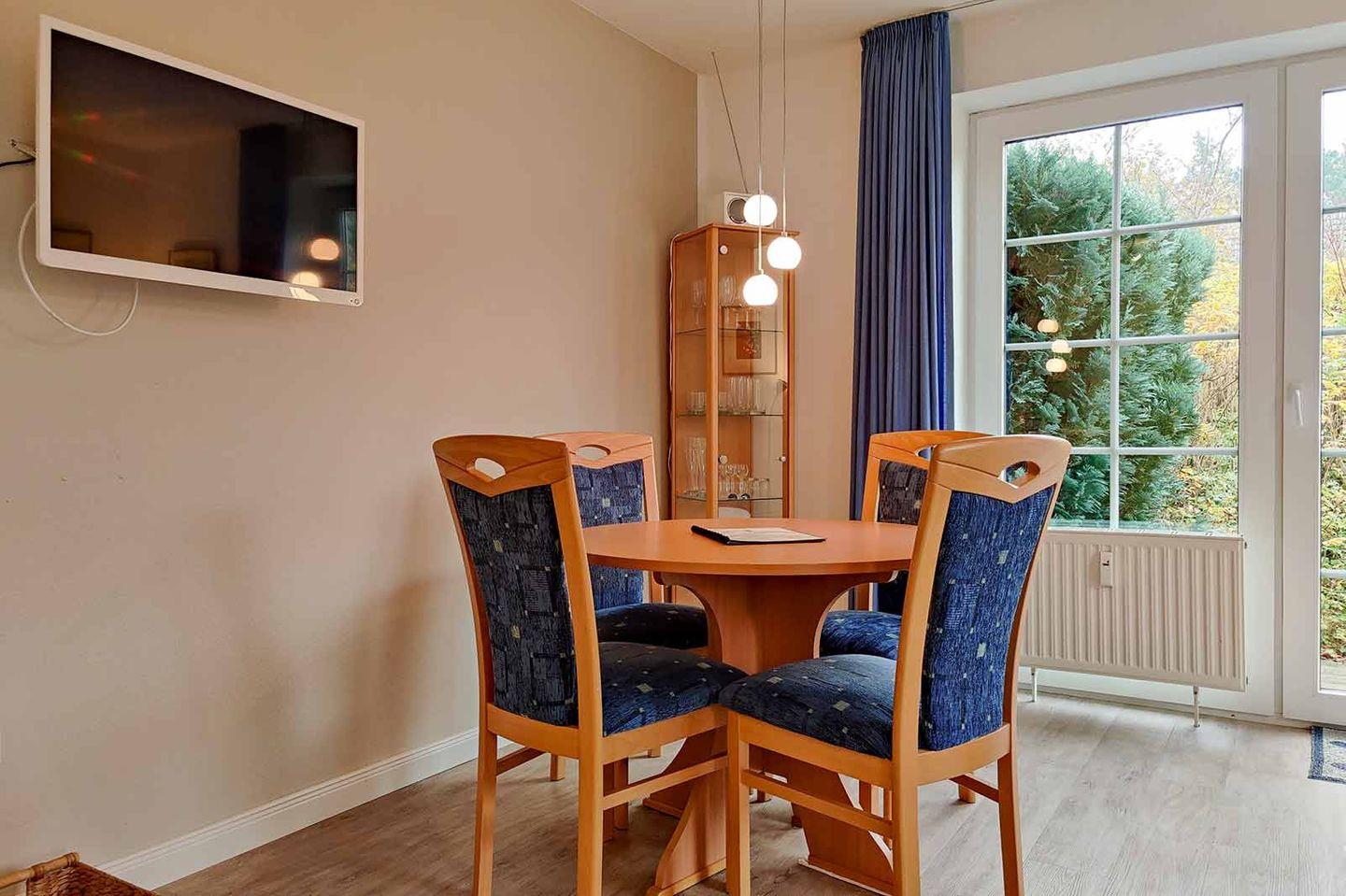 Einer der besonderen Höhepunkte der Unterkunft ist die großzügige Terrasse, auf der Sie das Frühstück im Freien oder ein Glas Wein am Abend genießen können. Gartenmöbel laden zum Verweilen ein, und Sichtschutz an den Fenstern gewährleistet Ihnen die nötige Privatsphäre. Für strandliebende Gäste stellt die Ferienwohnung einen Strandkorb am Strand zur Verfügung, den Sie während Ihres Aufenthalts nutzen können.