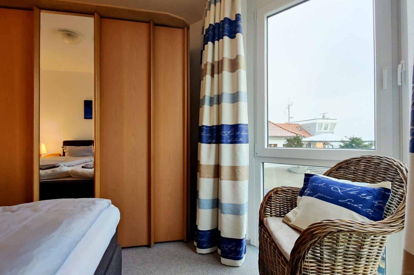 Das 54 m² große Feriendomizil im 2. Stock bietet mit zwei Zimmern und bis zu vier Schlafmöglichkeiten ausreichend Platz für Paare und Familien. Im separaten Schlafzimmer sorgt ein Teppichboden für behagliche Atmosphäre, während im modernen Wohnbereich mit Fliesenboden und großzügigem Schnitt Erholung garantiert ist. Die für Kinder geeignete Ausstattung und der nahegelegene Spielplatz machen die Ferienwohnung besonders familienfreundlich.