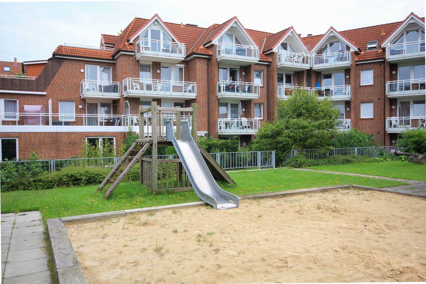Die Residenz Albatros Ferienwohnung 1 bietet auf 50 m² im Parterre modernen Komfort in bester Lage, nur 200 Meter vom Sandstrand entfernt. Zur Ausstattung zählen ein Schlafzimmer, offene Küche mit Spülmaschine, überdachte Terrasse, beheizter Indoor-Pool, Sauna, WLAN, Privatparkplatz und ein inklusiver Strandkorb am Strand von Mai bis September. Ideal für Familien und Erholungssuchende.