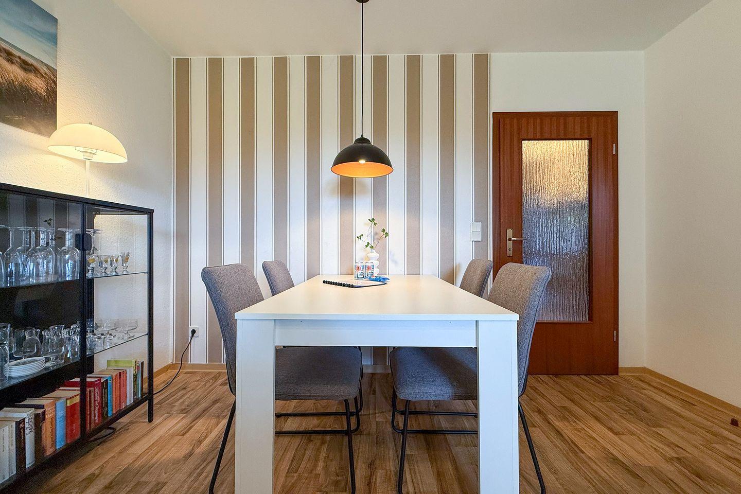 Die Ferienwohnung 7 im Landhaus Hubertus in Cuxhaven bietet auf 68 m² Platz für bis zu 4 Personen. Sie liegt im Erdgeschoss, verfügt über zwei Schlafzimmer, ein modernes Bad mit Dusche und Wanne, eine geschlossene Küche mit Spülmaschine sowie einen überdachten Terrassenbereich mit Garten. WLAN, TV, Privatparkplatz sowie gemeinschaftliche Waschmaschine und Trockner stehen zur Verfügung.