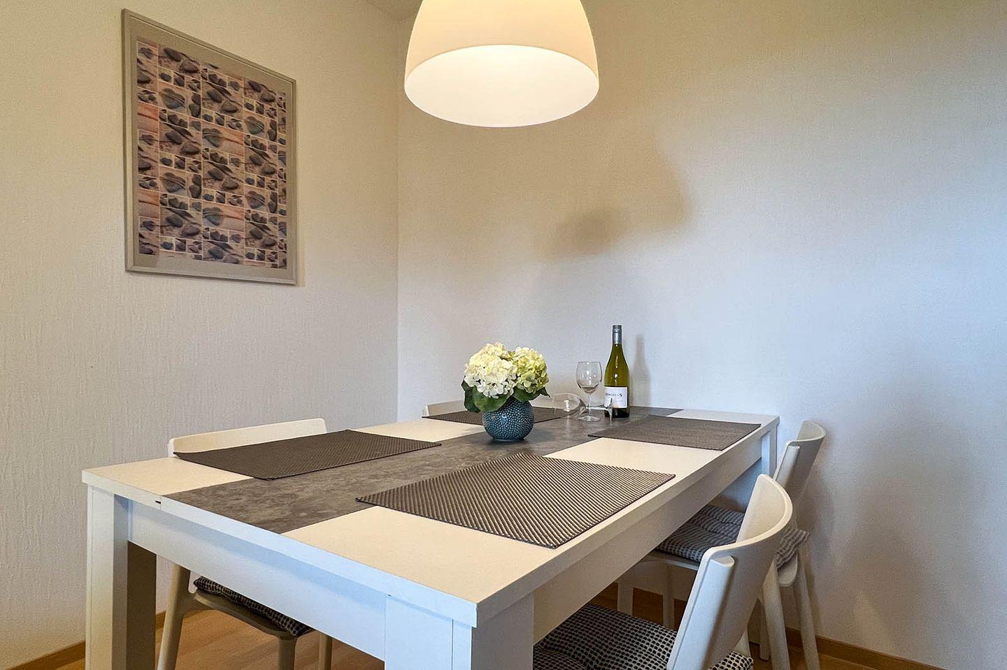 Sie wohnen auf insgesamt 80 qm mit eigener Terrasse im Grünen, nur wenige Minuten zu Fuß von Strand, Ortskern und Kureinrichtungen entfernt.