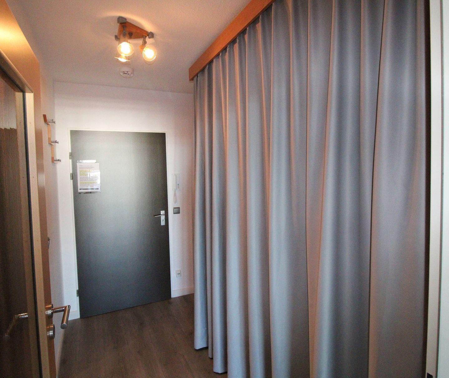 In der Diele ist ein Etagenbett mit 0,90 x 2,00 m vorhanden, welche mit einem guten Verdunklungsvorhang