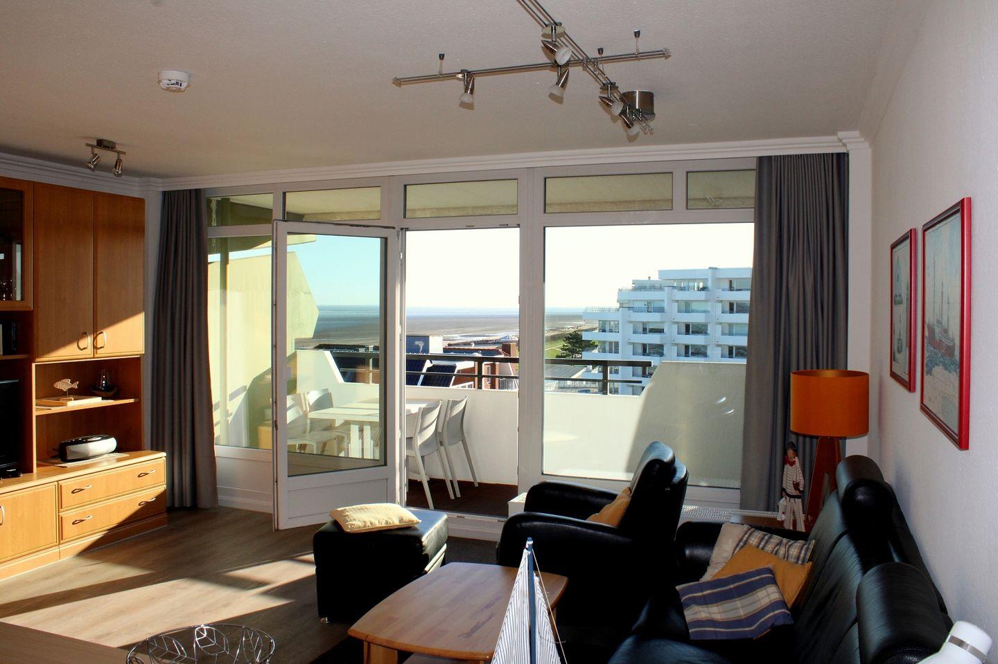 Die Panorama Whg 92 in Cuxhaven bietet Ihnen auf 49 m² einen überdachten Balkon mit gutem Meerblick, eine moderne offene Küche mit Spülmaschine sowie ein wohnliches Ambiente mit Sofa- und Essbereich. WLAN, TV, eine gemeinschaftlich nutzbare Waschmaschine und Trockner sowie ein beheizter Indoor-Pool, Sauna und Solarium runden das Angebot ab. Die Unterkunft liegt in erster Reihe am Strand, Einkaufsmöglichkeiten und Restaurants befinden sich in unmittelbarer Nähe.