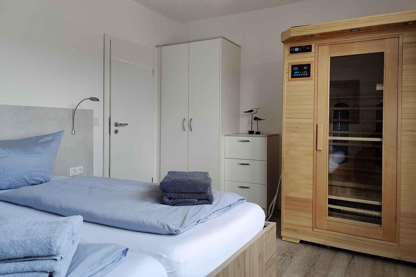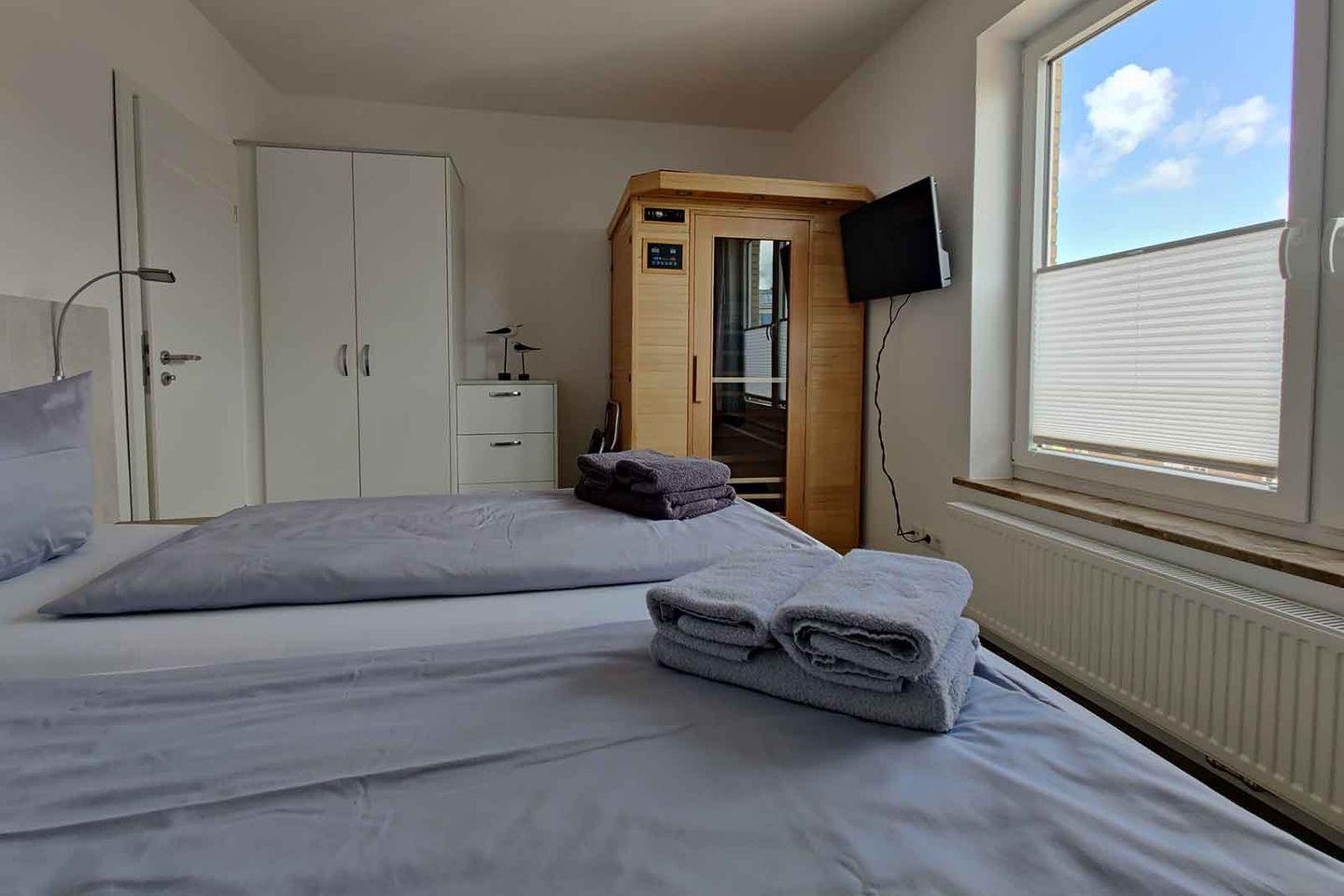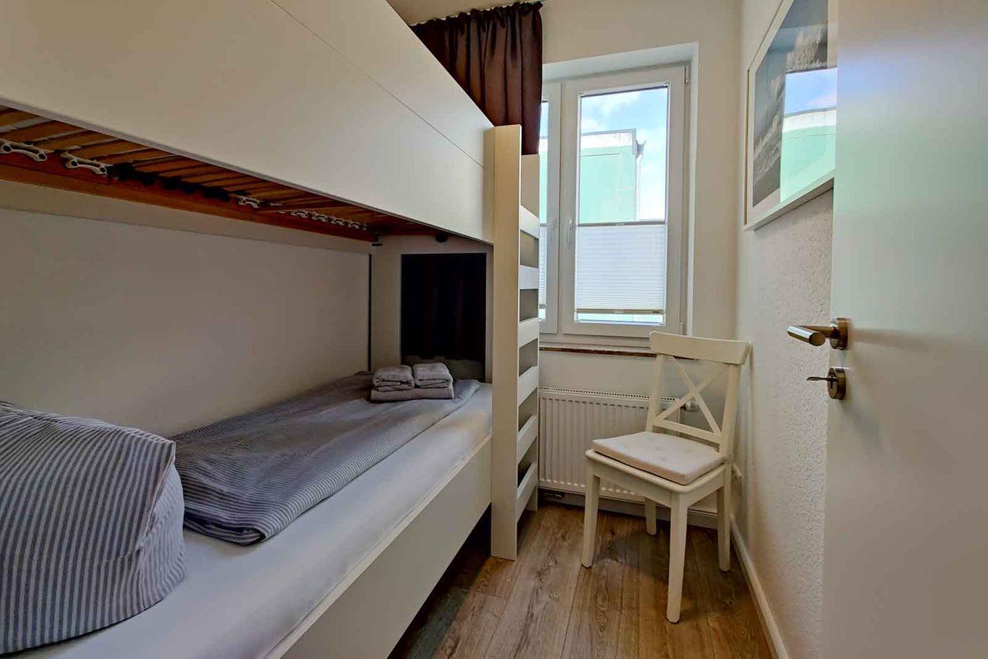 Die geräumige Wohnung ist mit einem Doppel- und einem Etagenbett in 2 Schlafzimmern ausgestattet. Durch die schöne, separate Küche mit kleinem Balkon macht das Kochen im Urlaub richtig Spaß. Das geräumige Wohnzimmer ist durch den verglasten Wintergarten hell und freundlich. Von dort aus sehen Sie die nahgelegene Kurpromenade und die Nordsee. Die Wohnung verfügt zudem über ein Duschbad und ein separates Gäste-WC. WLAN ist für Sie in der Unterkunft inklusive.