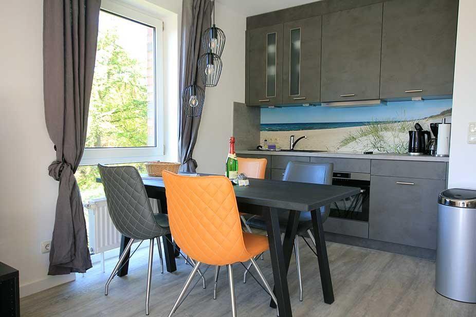 Die Ferienwohnung 9 im Appartementhaus Seeadler bietet auf 46 m² komfortablen Wohnraum für bis zu vier Personen. Sie verfügt über ein Schlafzimmer, eine offene Küche mit moderner Ausstattung, einen Balkon sowie WLAN. Zu den Vorzügen zählen ein Privatparkplatz, eine gemeinschaftlich nutzbare Sauna und die Nähe zum Sandstrand mit eigenem Strandkorb (von Mai bis Mitte Oktober).