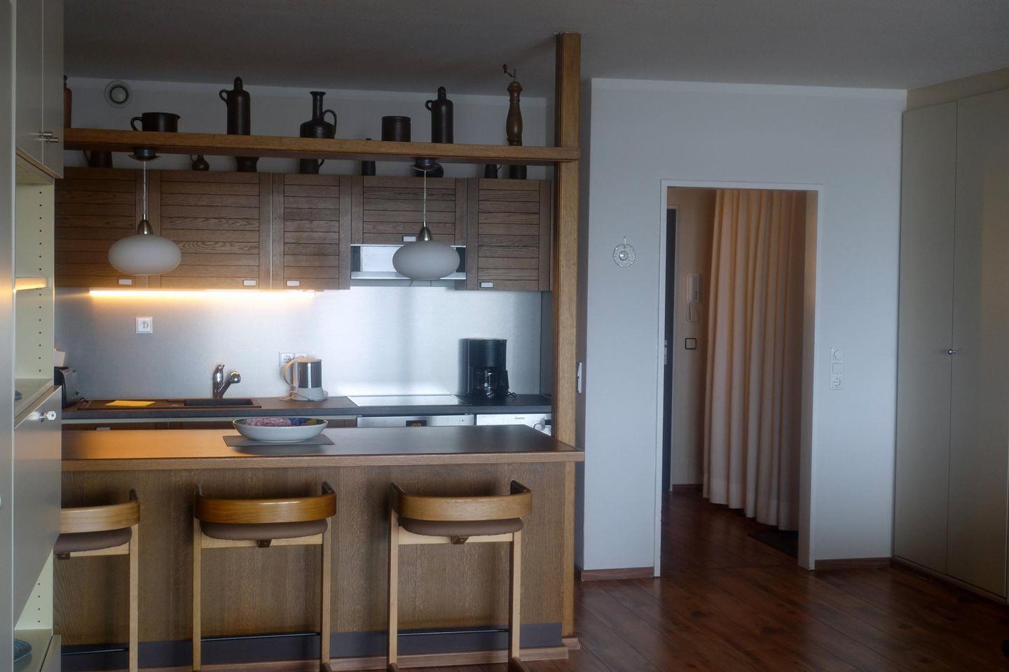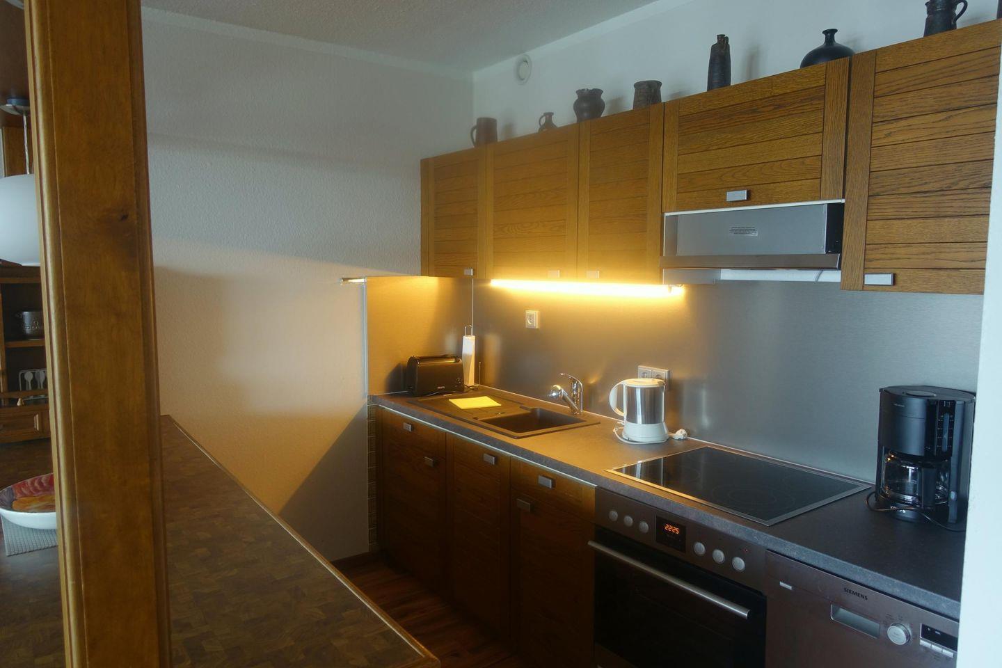 Die Wohnung ist mit allem notwendigen ausgestattet auch Geschirrspüler, Mikrowelle, E-Herd, Ceranfeld und Elektro-Kleingeräte.