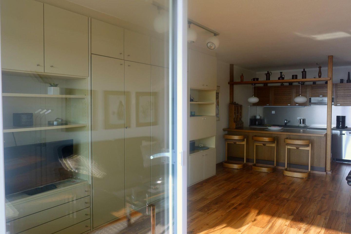 Die Wohnung ist für 2 bis 4 Gäste geeignet. Im Wohnraum steht eine Schrankwand mit 2 Schrankbetten und in der Diele ist ein Etagenbett integriert,