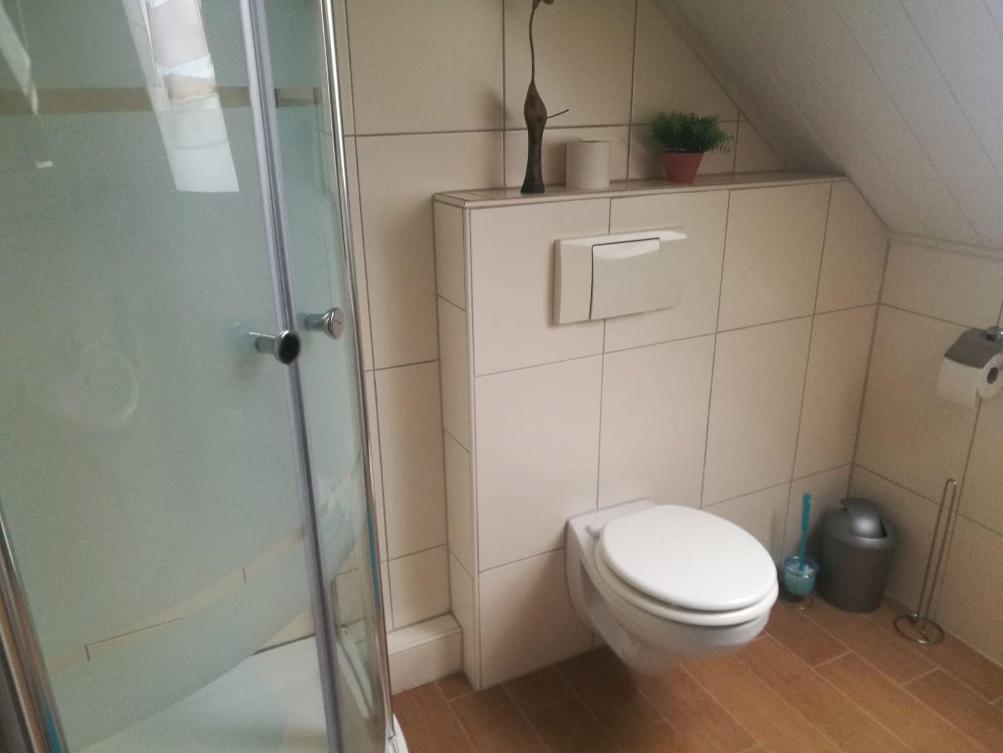 Das Appartement ist perfekt für eine Singelperson geeigent. Sie verfügt über einen kombinierten Wohn- und Schlafbereich. Der Schlafbereich ist mit einem Einzelbett ausgestattet. Der Wohnbereich mit einem Ausziehsofa, einem Sessel, einem Wohnzimmerisch und einem TV. Bitte beachten Sie, dass der TV (Senderliste) nicht verstellt werden darf! Die Kochniesche/ Küchenzeile ist komplett ausgesatettet (E-Herd mit zwei Platten, Mikrowelle, Kühlschrank, Spüle, Geschirr, Besteck und viele weitere Küchenutensilien). Vor dem Fenster in der Küche befindet sich ein Essplatz für eine Person. Das Badezimmer ist mit Dusche und WC ausgestattet. Gerne können Sie auch eine Waschmaschine und einen Wäschetrockner benutzen (gegen zusätliche Gebühr). Bitte beachten Sie, dass in der Wohnung keine Haustiere erlaubt sind, außerdem ist die Wohnung eine Nichtraucherwohnung. Die Nutzung des WLANs ist inklusive. Handtücher liegen bei der Anreise für Sie bereit. Die Betten sind bei Anreise für Sie bezogen. Die Appartement liegt im Dachgeschoss.