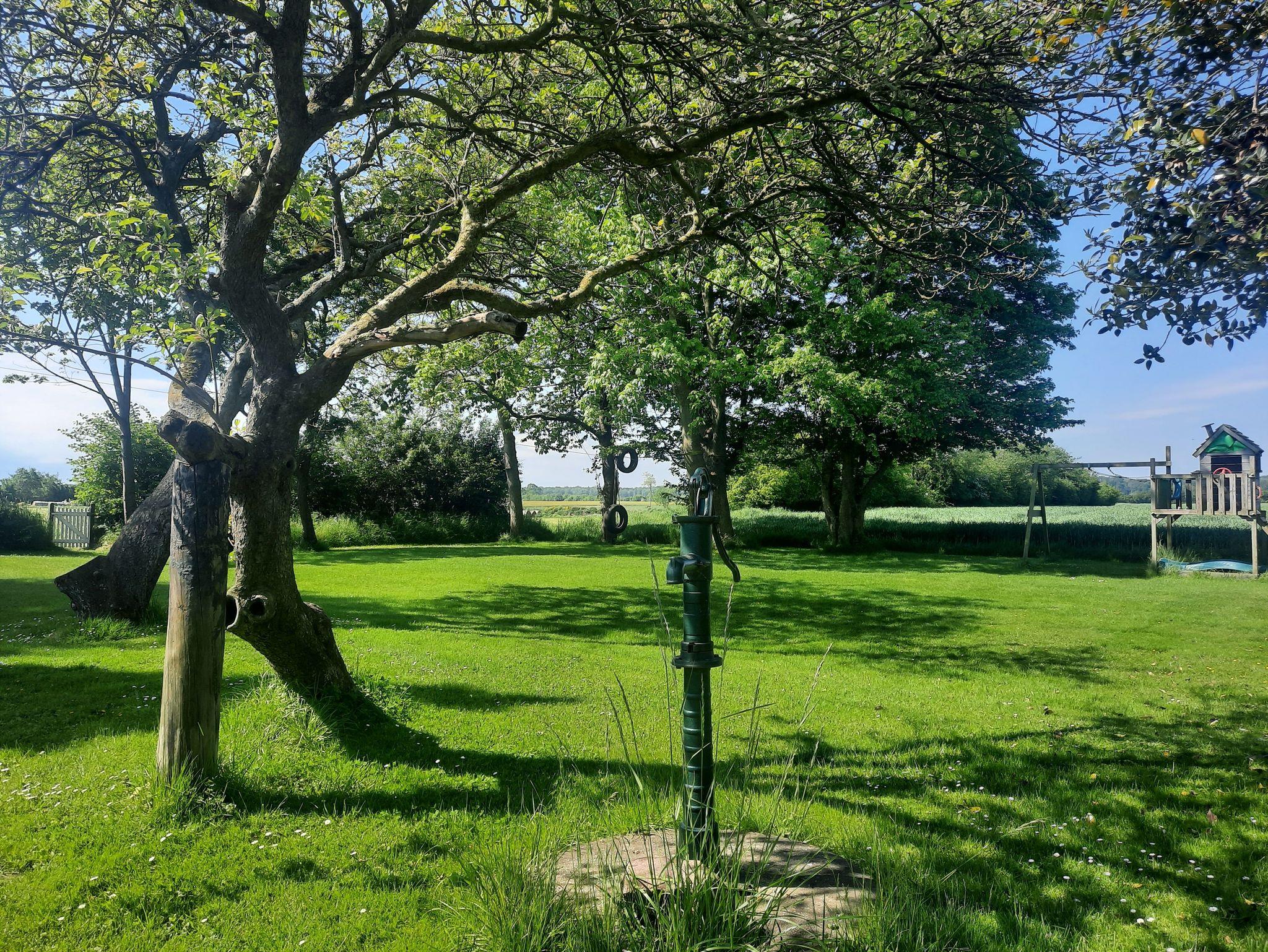 Das ca. 2000 m² große Grundstück und nicht eingezäunt und bietet einen herrlichen Blick über angrenzende Felder. Aufgrund der abgelegenen Lage verfügt das Haus über kein W-LAN. Der reguläre Netzempfang ist in Ordnung. Auf dem Grundstück ist ausreichend Platz für 2-3 Autos.
