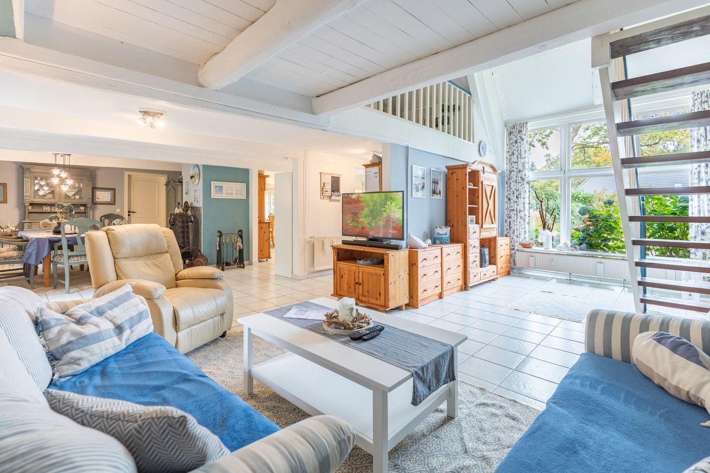 Auszeit unter Reet – stilvolle Ferienwohnung in Dörpum bei Bordelum. 140 qm auf zwei Etagen mit Kamin, moderner Küche, zwei Schlafzimmern und zwei Bädern. Große Terrasse mit Gartenblick, Grill und Strandkorb. WLAN, drei TVs, Parkplatz und Hund erlaubt. Ideal für bis zu vier Personen, die Ruhe, Natur und Nordseeluft genießen möchten.
