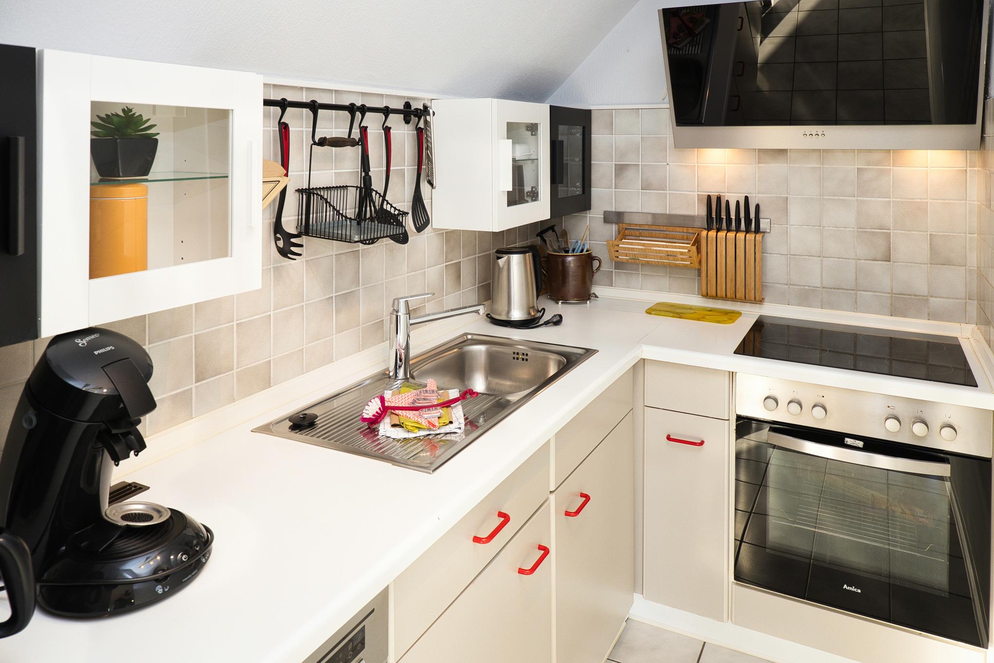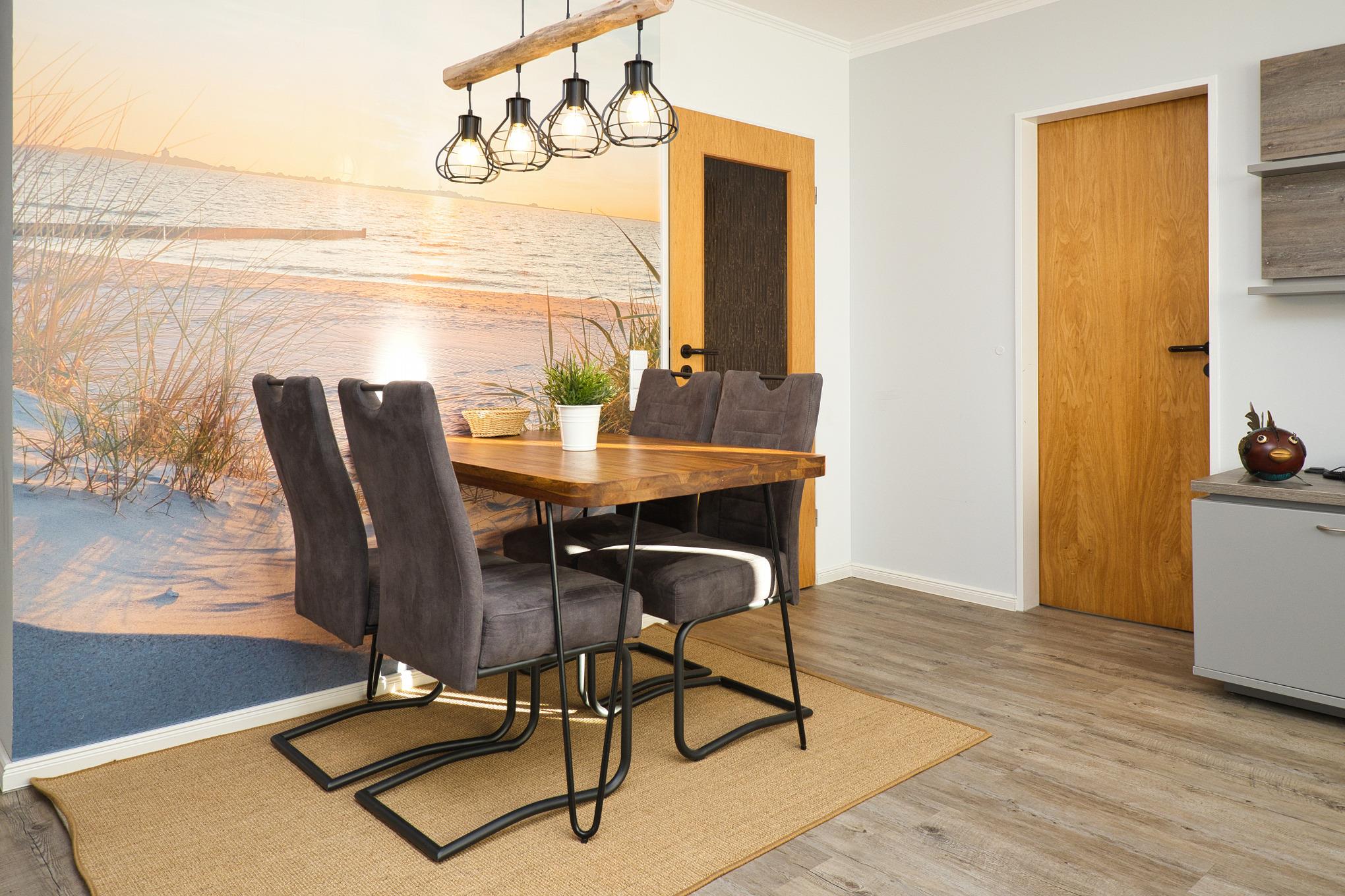 Der Wohnbereich ist mit einer gemütlichen Couchgarnitur, TV, Radio und kostenlosem WLAN ausgestattet. Ein separater Essplatz für 4 Personen sowie die gut ausgestattete Küche mit Spülmaschine, Backofen, Kaffeemaschine und Toaster runden das Angebot ab.