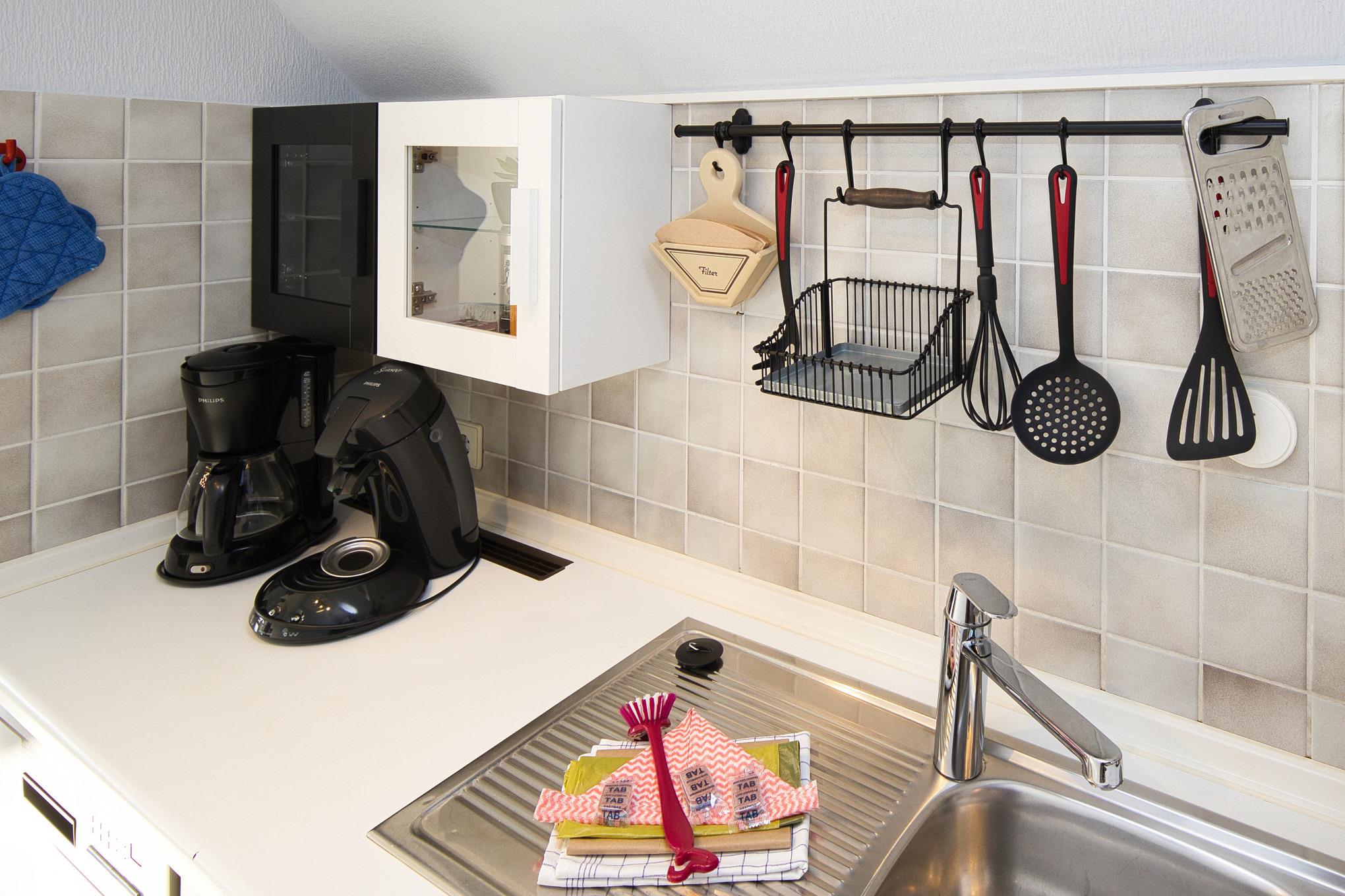 Fewo-Starterpaket: bezogene Betten, Duschvorleger, Geschirrtuch, Spülutensilien, Müllbeutel, Toilettenpapier u.?a.