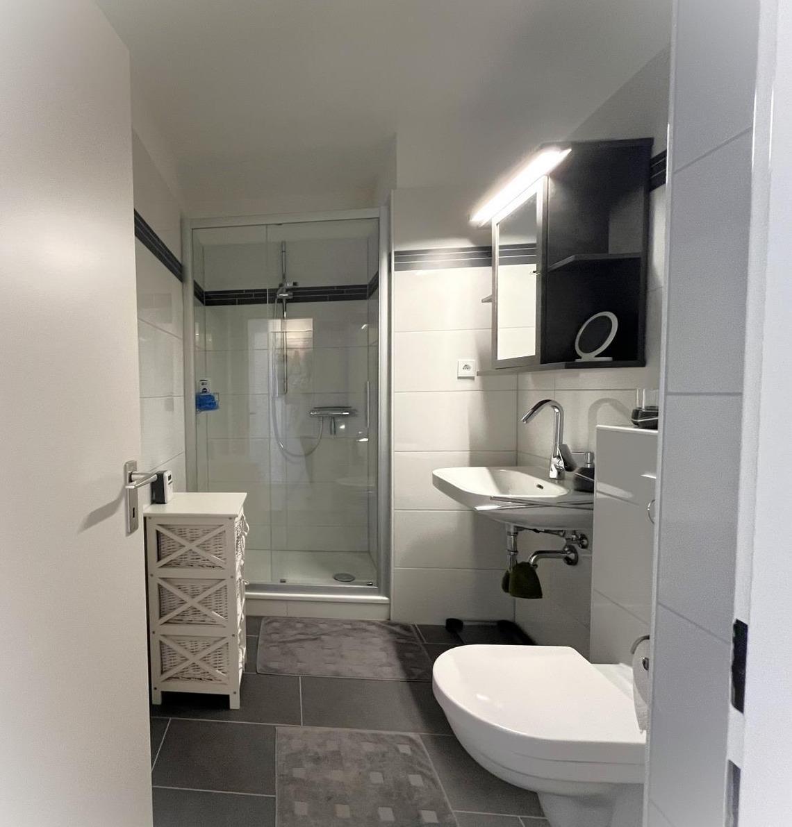 Die voll ausgestattete Küche lässt keine Wünsche offen: 4-Platten-Herd, Backofen, Mikrowelle, Geschirrspüler, Kaffeemaschine und Wasserkocher stehen Ihnen zur Verfügung. Das Schlafzimmer ist mit einem gemütlichen Doppelbett und einem geräumigen Kleiderschrank ausgestattet. Das neu renovierte Bad überzeugt mit Dusche, niedrigem Einstieg, Waschtisch und WC.