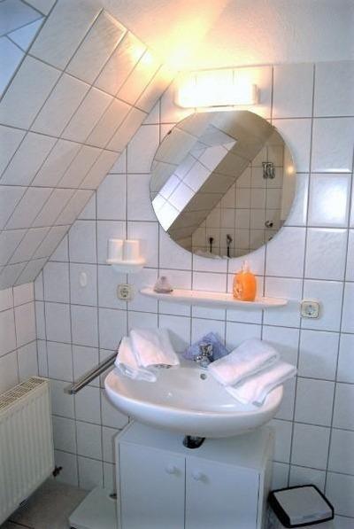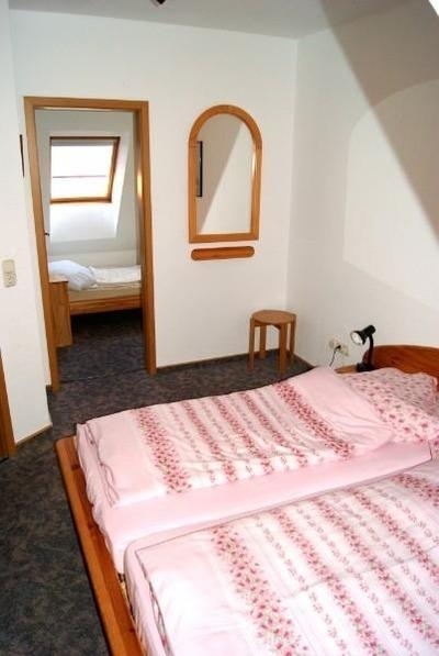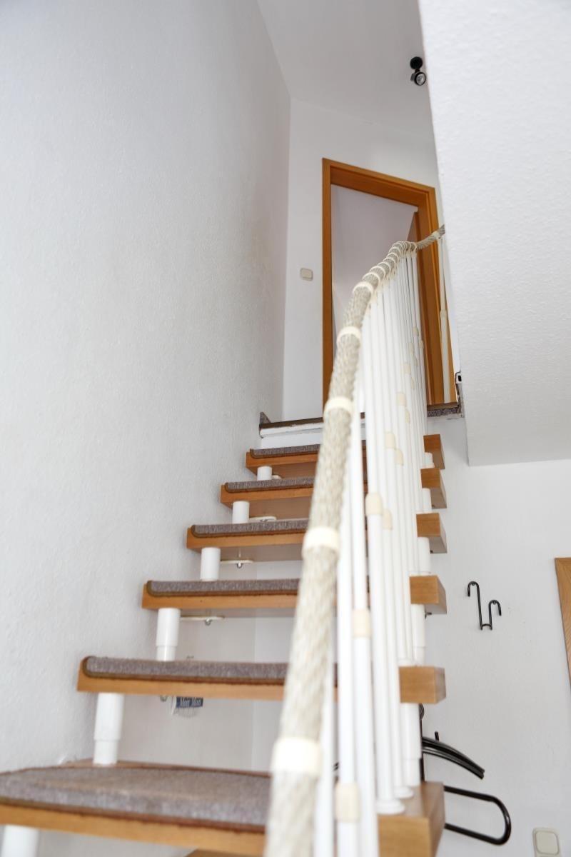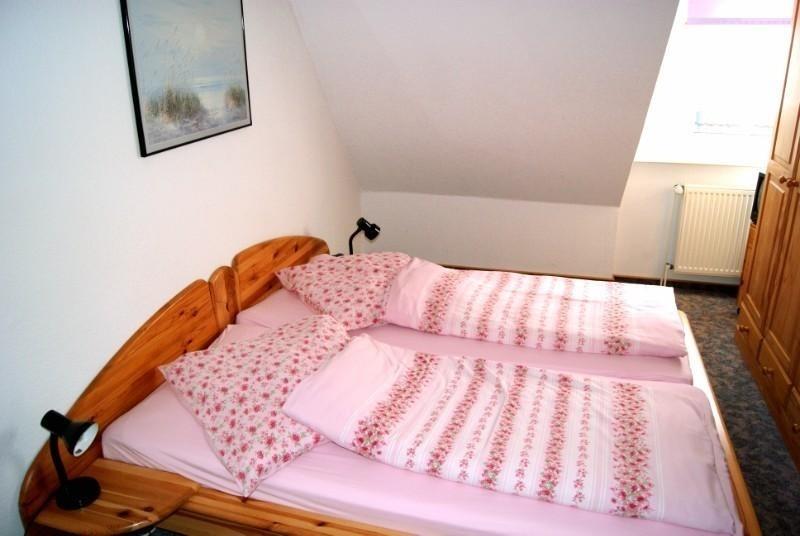 Im Obergeschoss befinden sich drei Schlafzimmer: ein großes Doppelzimmer, ein Zimmer mit zwei Einzelbetten sowie ein gemütliches Einzelzimmer. Das freundliche Badezimmer ist mit Dusche und WC ausgestattet. Eine Waschmaschine steht gegen Gebühr bereit.