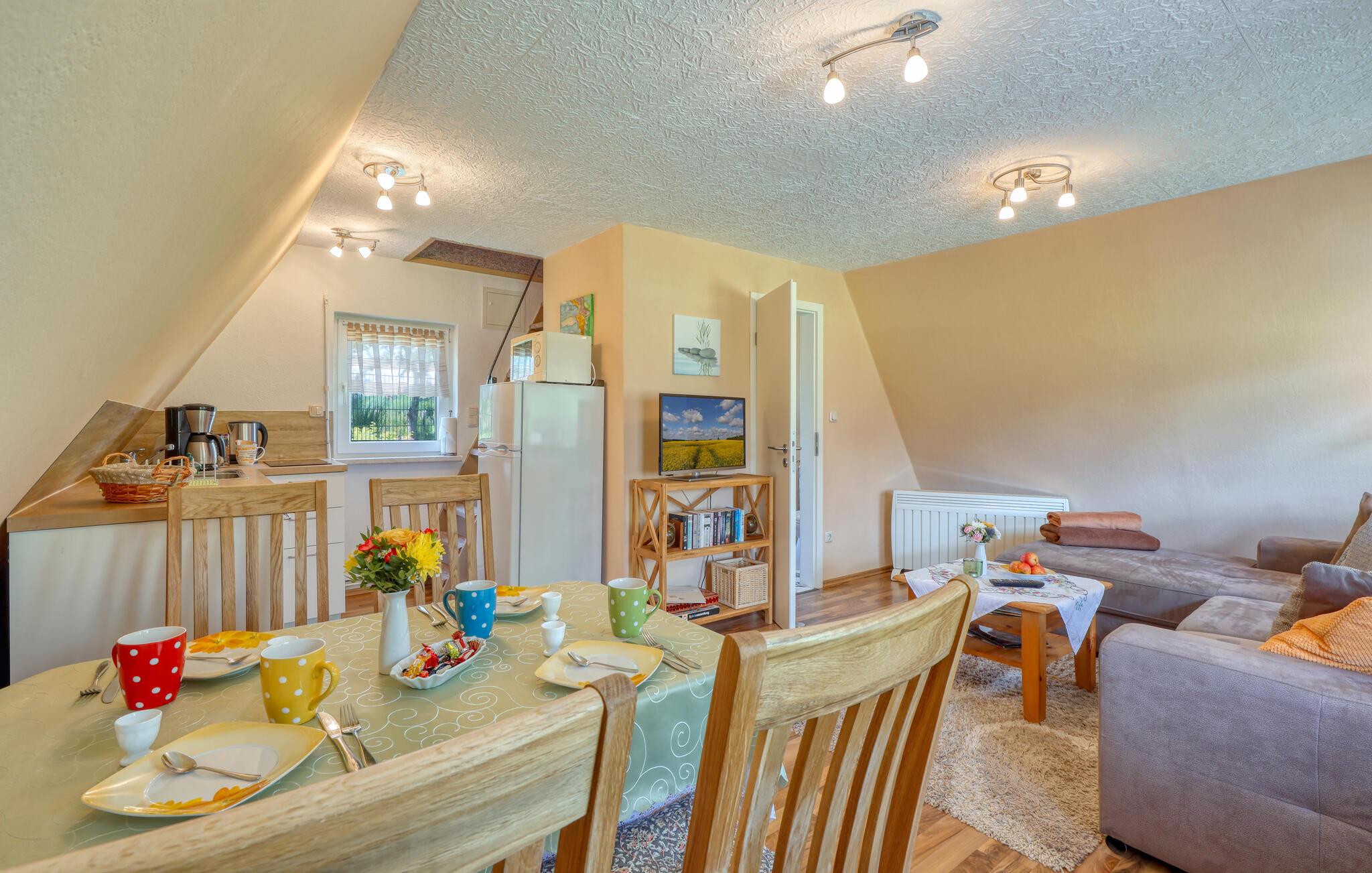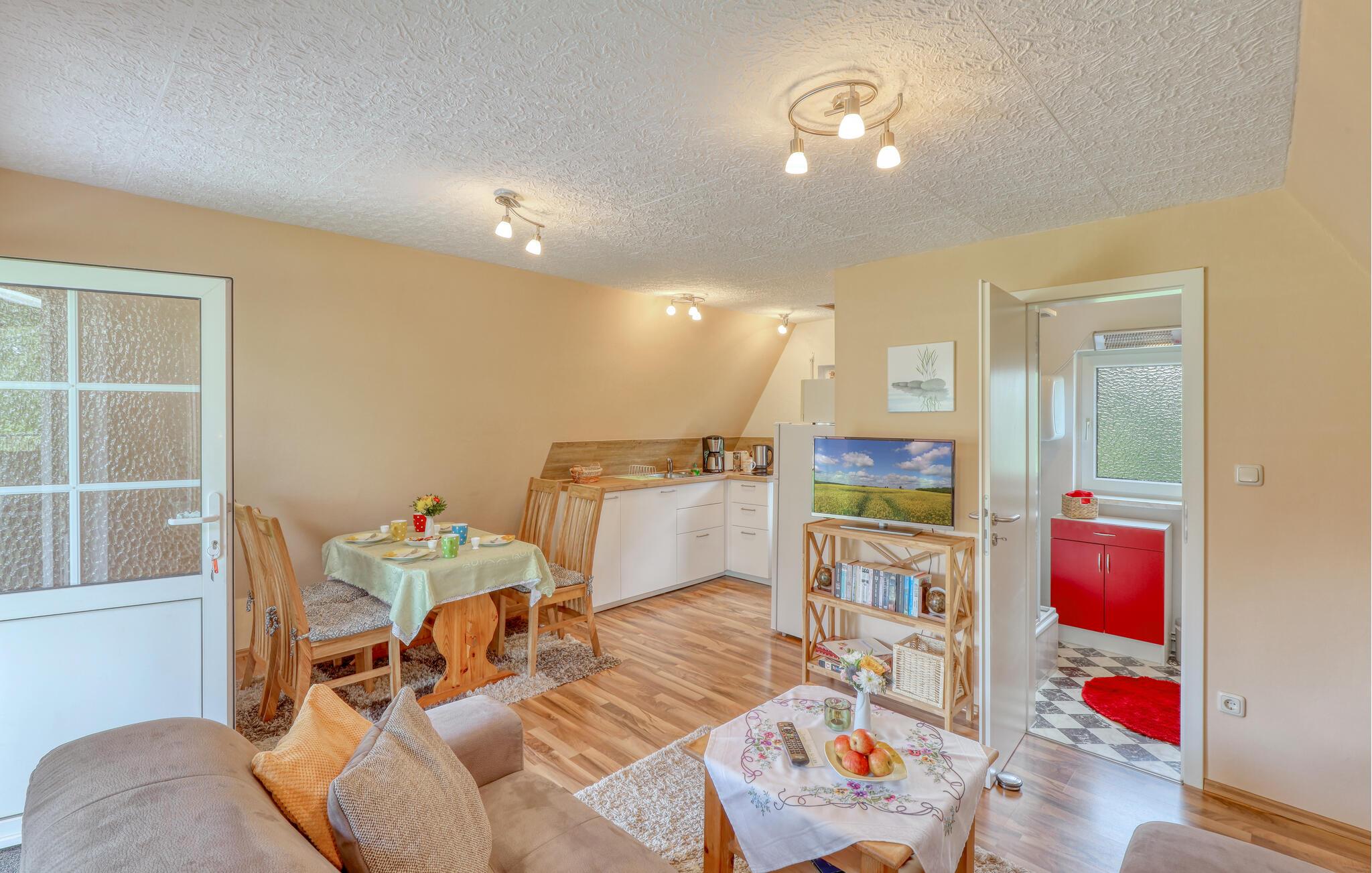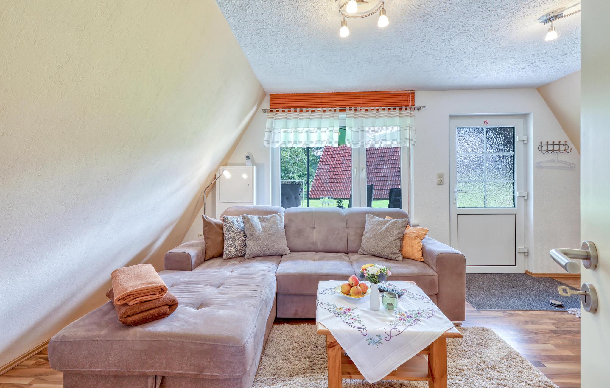 Dette charmerende feriehus i Dabel lægger op til en uforglemmelig ferie. Med sine hyggelige møbler og klassiske møbler formidler den en varm og indbydende atmosfære. De lyse rum og det åbne design sikrer en harmonisk sammenhæng mellem indendørs og udendørs arealer. I kan starte dagen med at slappe af på den solrige terrasse eller nyde aftentimerne efter en begivenhedsrig dag ved søen. Dette hus er perfekt til familier på udkig efter fred og natur.