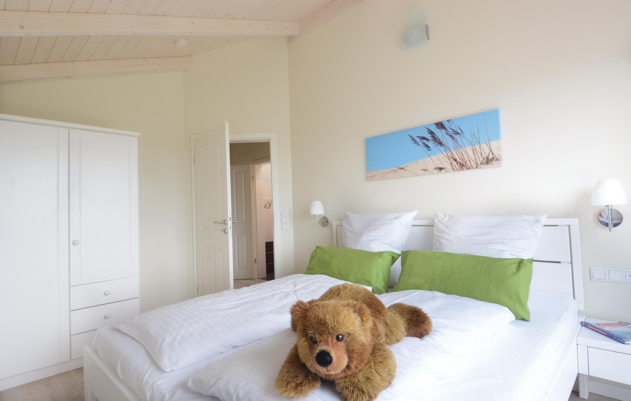 Et soveværelse med en bred enkeltseng (1,20 m) og husets andet badeværelse (uden trin i brusekabinen) ligger i stueplan, så huset også er praktisk for de gæster, der ikke er så glade for at gå på trapper. Dette soveværelse er udstyret med boxmadras. Alle soveværelser har myggenet for vinduerne.
