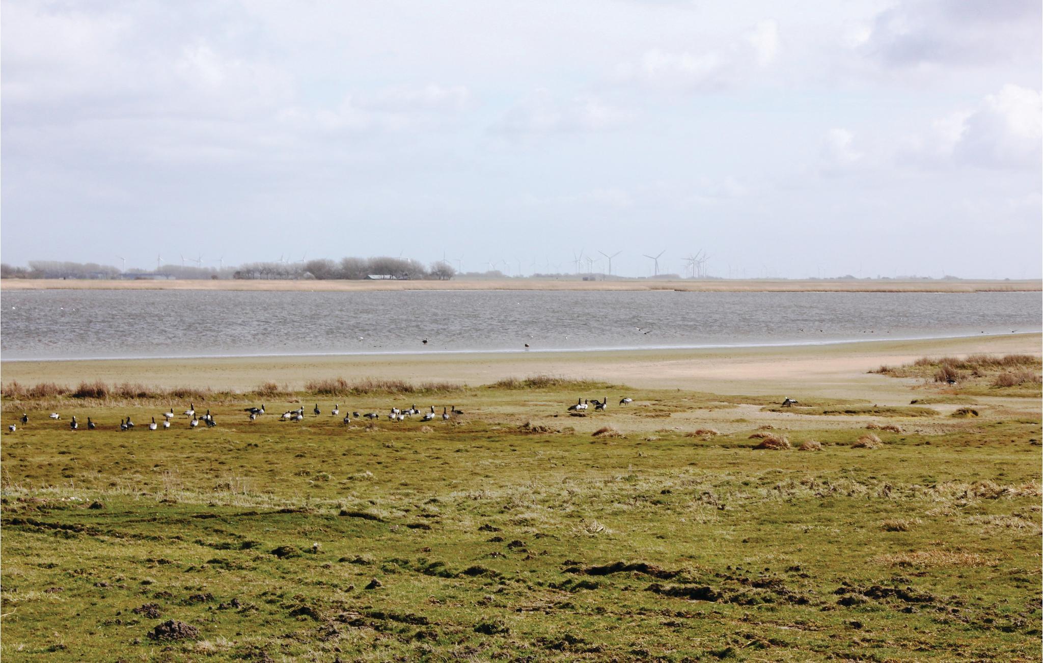 Feriehuset ligger kun 200 m fra Vadehavet og fra Dagebülls stedsegrønne naturstrand, pyntet med de karakteristiske strandkurvestole. De mange diger i området er perfekte til ture på cykel. Hvis I ikke har cykler med, kan de lejes i feriehusbyen.