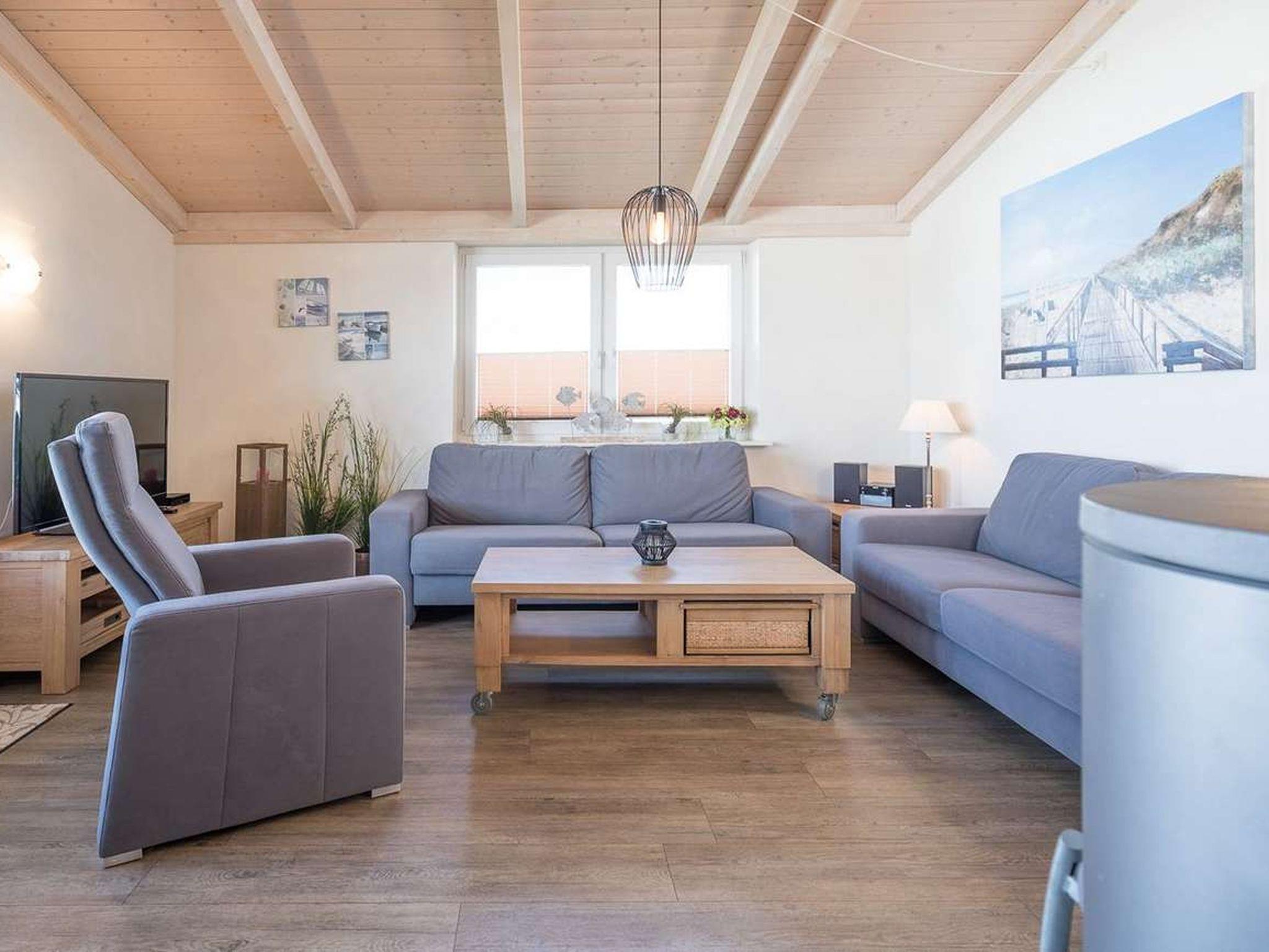 "Stockente", 3-room house 85 m2, on the ground floor. Comfortable and tasteful furnishings: living/dining room with Scandinavian wood stove and satellite TV (flat screen), radio and DVD. Exit to the terrace. 2 double bedrooms. Open kitchen (oven, dishwasher, 4 ceramic glass hob hotplates, electric coffee machine). Sep. WC, bath/shower/WC, Sauna. Terrace furniture. Facilities: Internet (WiFi, free). Please note: non-smoking house. Maximum 2 pets/ dogs allowed. Smoke alarm.