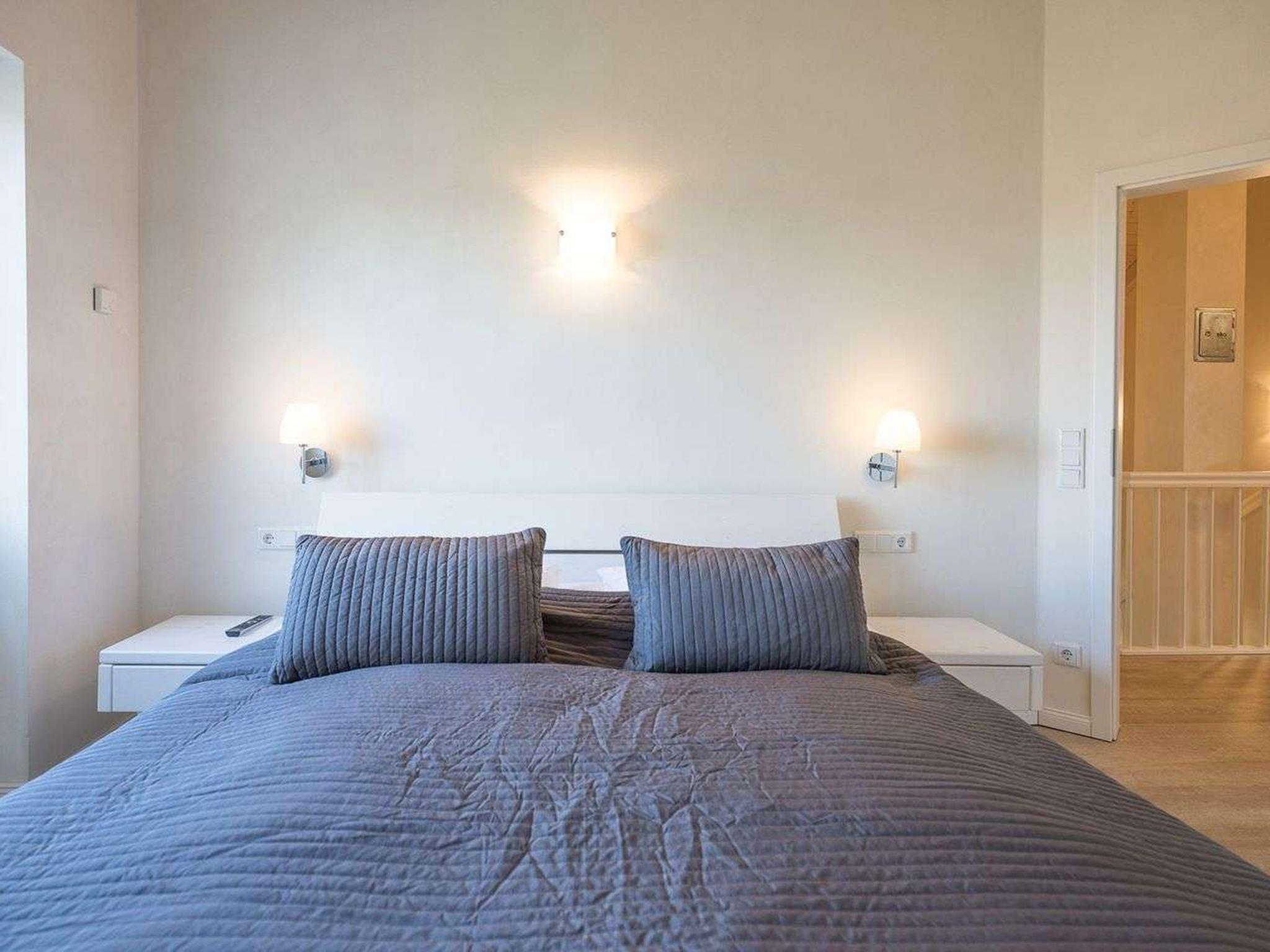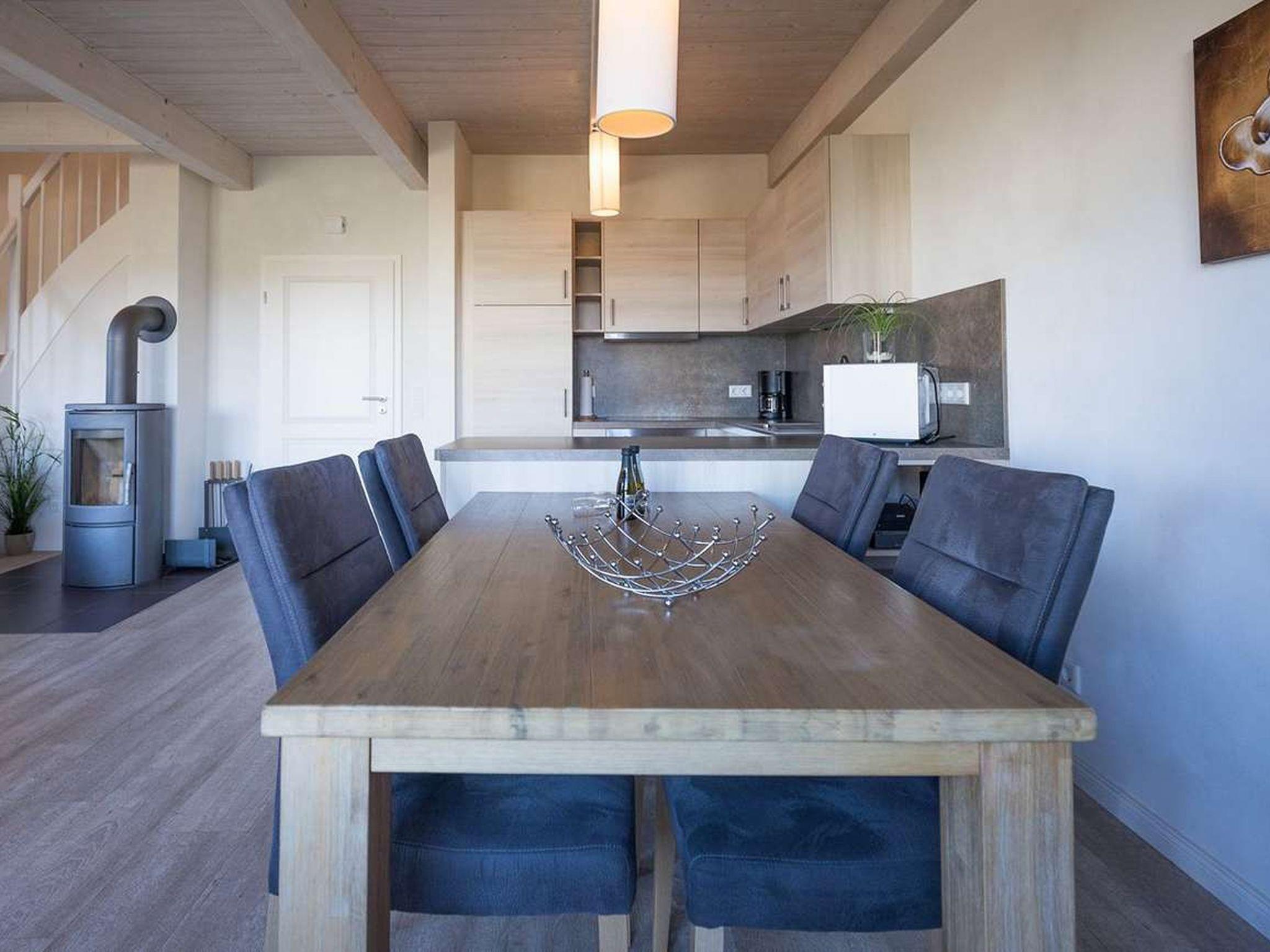 "Rotschenkel", 4-room semi-detached house 100 m2 on 2 levels, on the ground floor. Comfortable and tasteful furnishings: living/dining room with Scandinavian wood stove and satellite TV (flat screen), radio and DVD. Exit to the terrace. 1 room with 1 bed. Open kitchen (oven, dishwasher, 4 ceramic glass hob hotplates, electric coffee machine). Shower/WC. Upper floor: 2 double bedrooms. Sep. WC, bath/shower/WC, Sauna. Terrace furniture. Facilities: Internet (WiFi, free). Please note: non-smoking house. Maximum 2 pets/ dogs allowed. Smoke alarm.