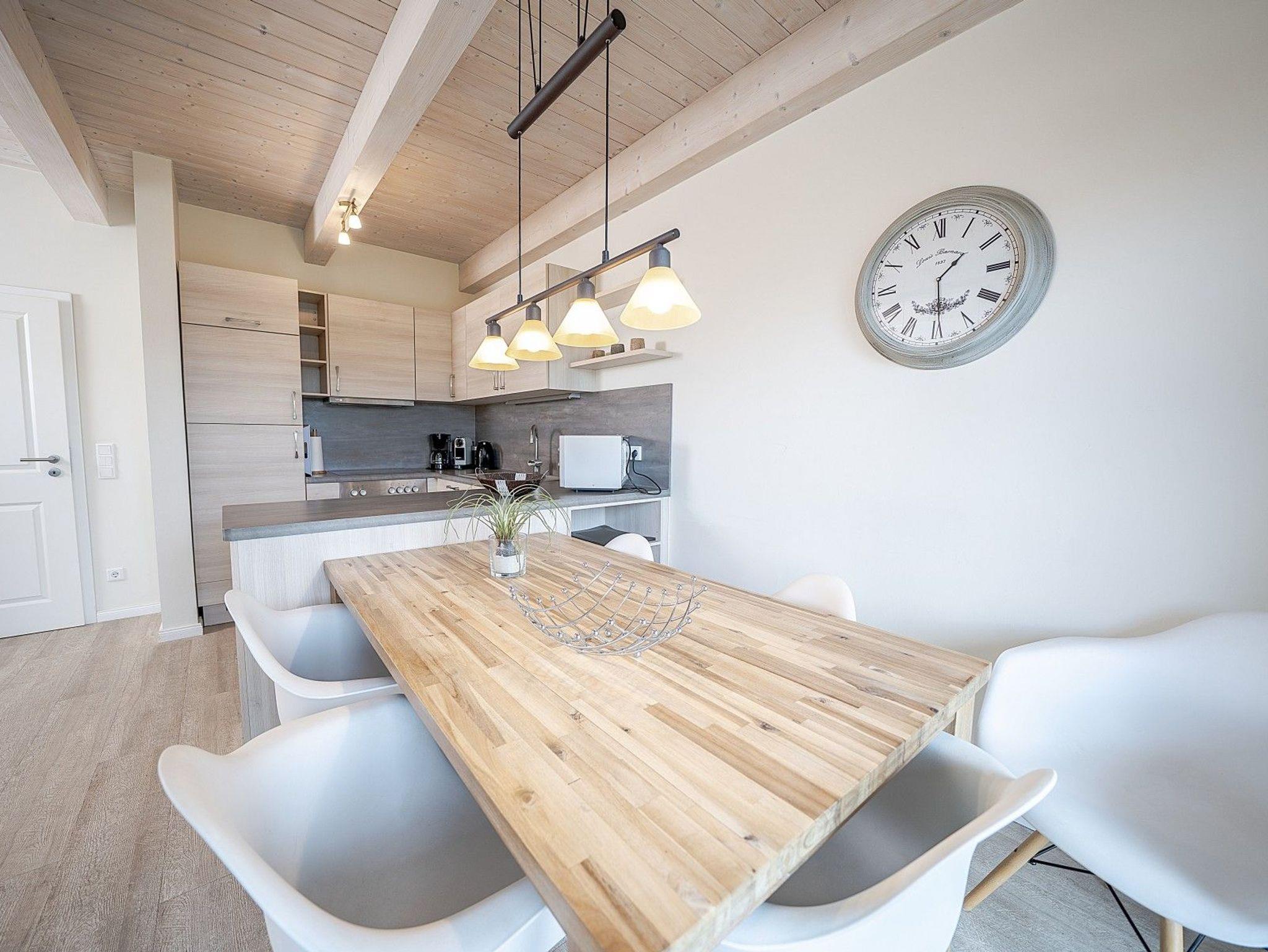 Dieses moderne Reihenhaus in Dagebüll bietet auf 101 m² Wohnfläche den idealen Rahmen für einen entspannten Aufenthalt an der Nordsee. Bis zu fünf Gäste und zwei Haustiere finden hier komfortabel Platz. Im Erdgeschoss befindet sich ein barrierearmes Bad mit schwellenloser Dusche sowie ein gemütliches Einzelzimmer mit Komfortbett ? eine praktische Lösung für alle, die kurze Wege bevorzugen. Der offene Wohn- und Essbereich verbindet moderne Ausstattung mit behaglicher Atmosphäre. Die Küche ist hochwertig eingerichtet und verfügt über eine Filter- und Nespresso-Maschine, während die großzügige Sofalandschaft zum Verweilen einlädt.