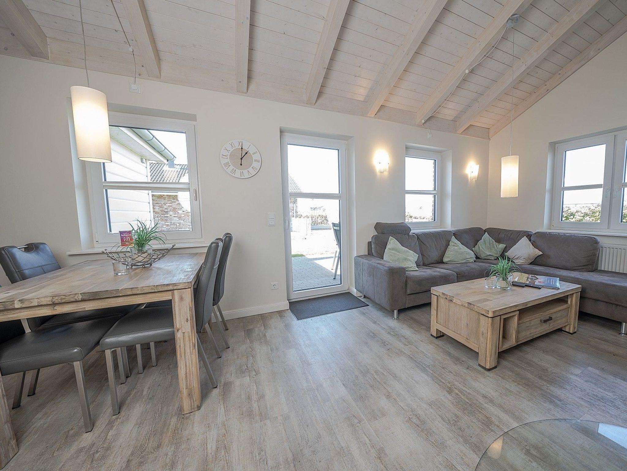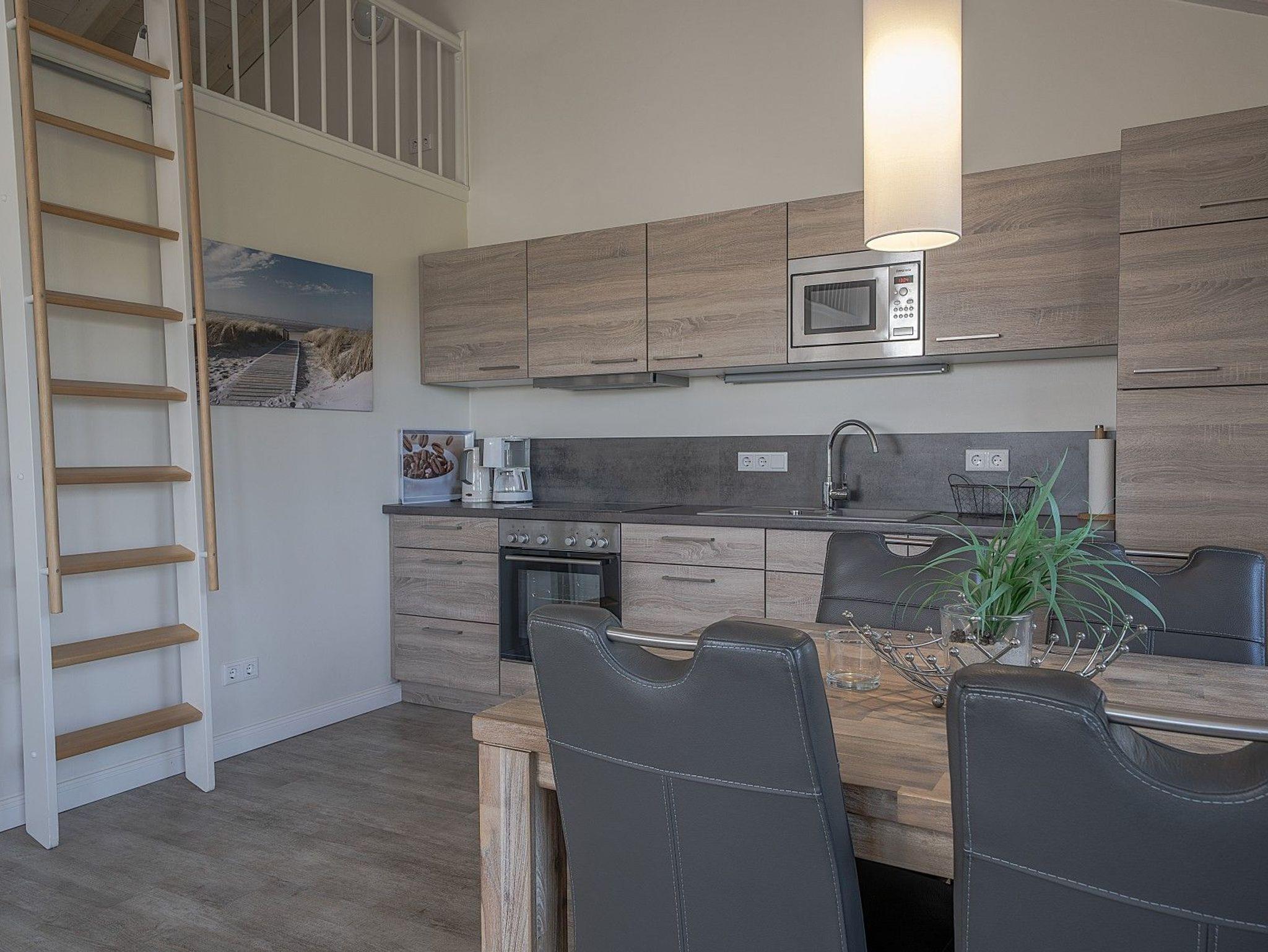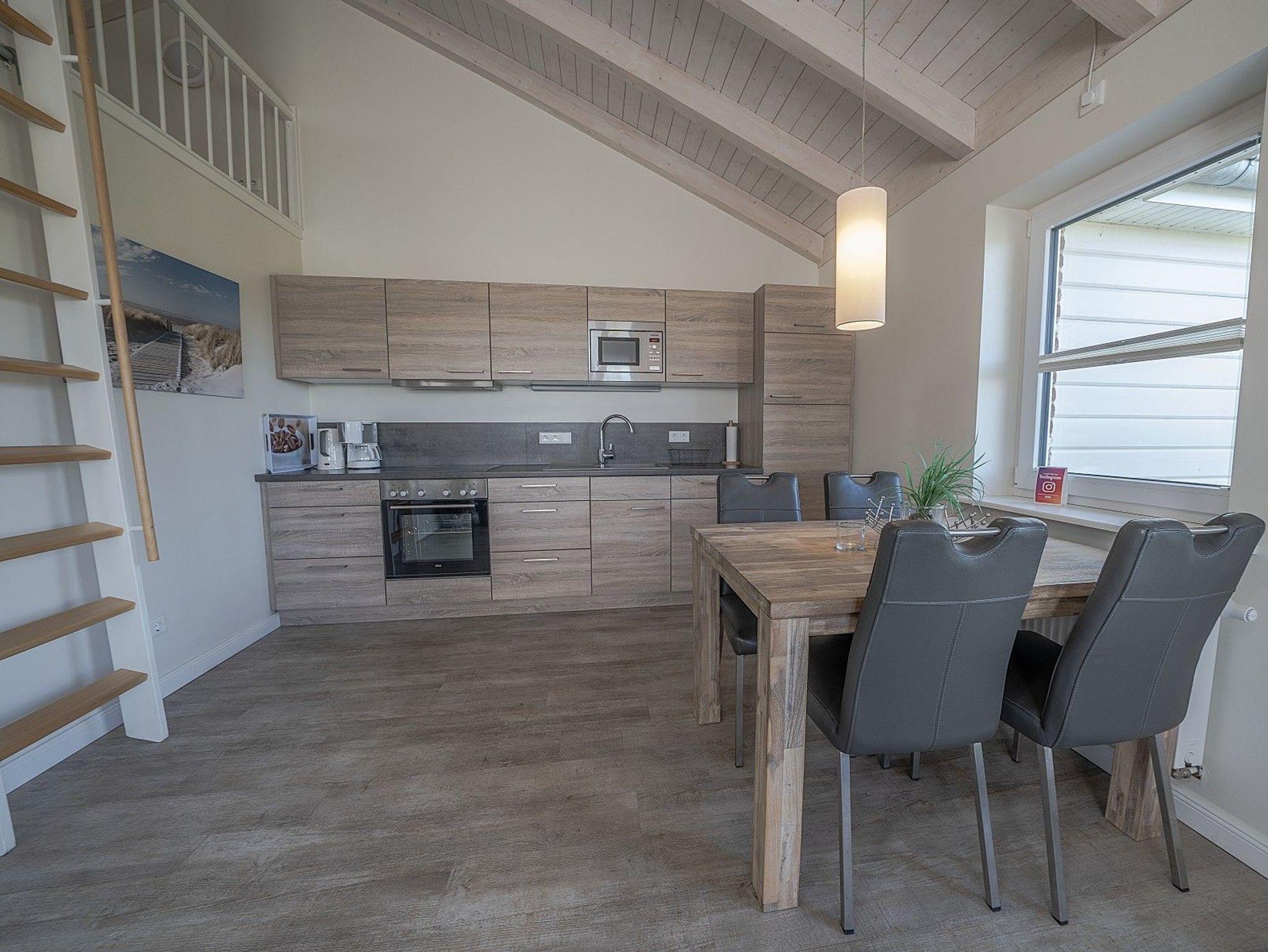 Esstisch für 4 Personen bieten Platz für entspannte Stunden in den hellen Räumen.Ideal für gemeinsam reisende Paare, die ihre Privatsphäre schätzen, ist zum Beispiel die Buchung beider Haushälften, in denen genug Platz ist, um sich gegenseitig zu besuchen.