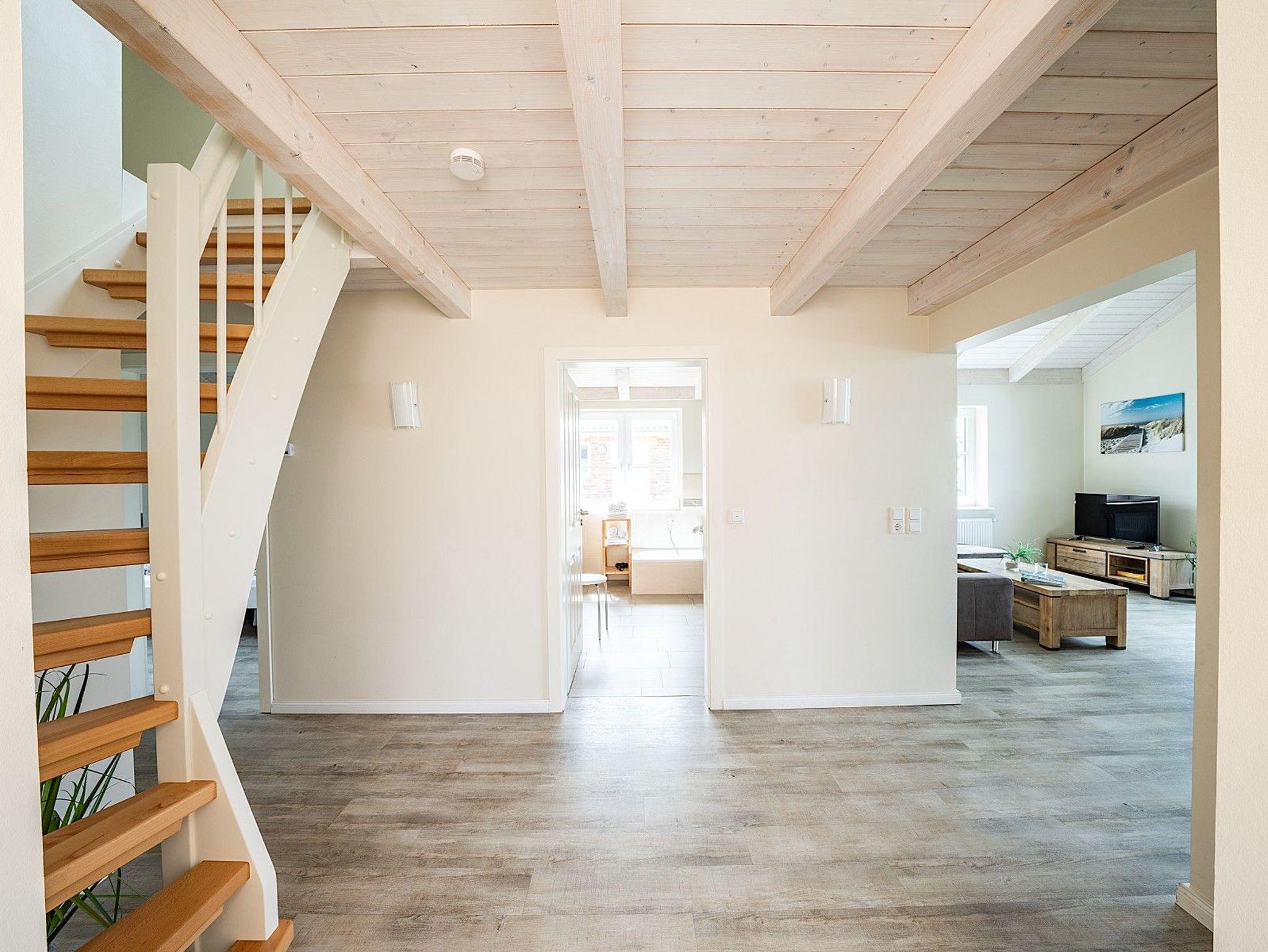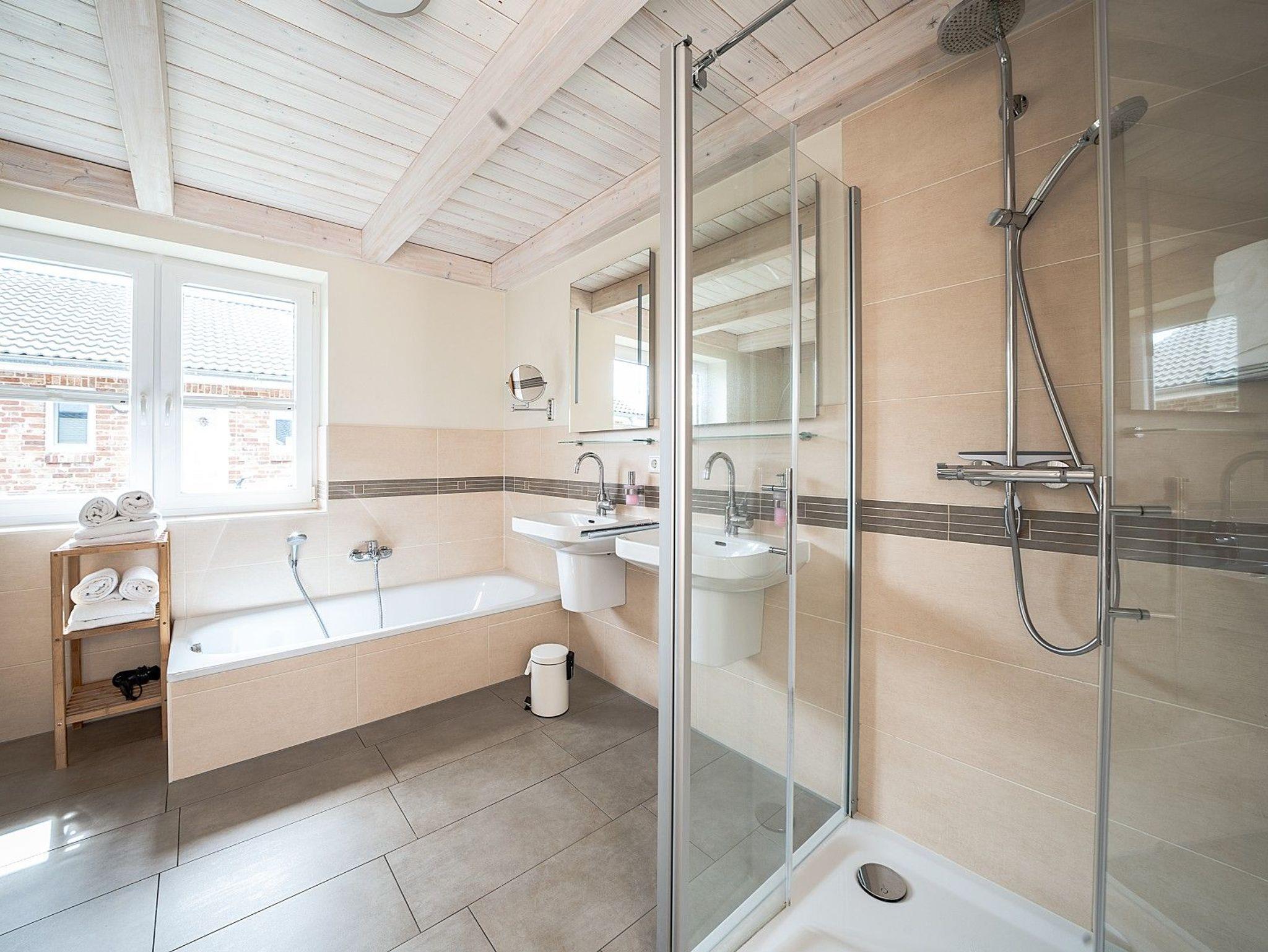Dieses freistehende Ferienhaus bietet auf 80 m² Platz für bis zu vier Personen und ist die ideale Wahl für einen erholsamen Nordseeurlaub. Zwei komfortable Schlafzimmer, ein großzügiges Bad mit Dusche und Badewanne sowie ein heller Wohnbereich mit Kaminofen schaffen ein wohnliches Ambiente zum Wohlfühlen.