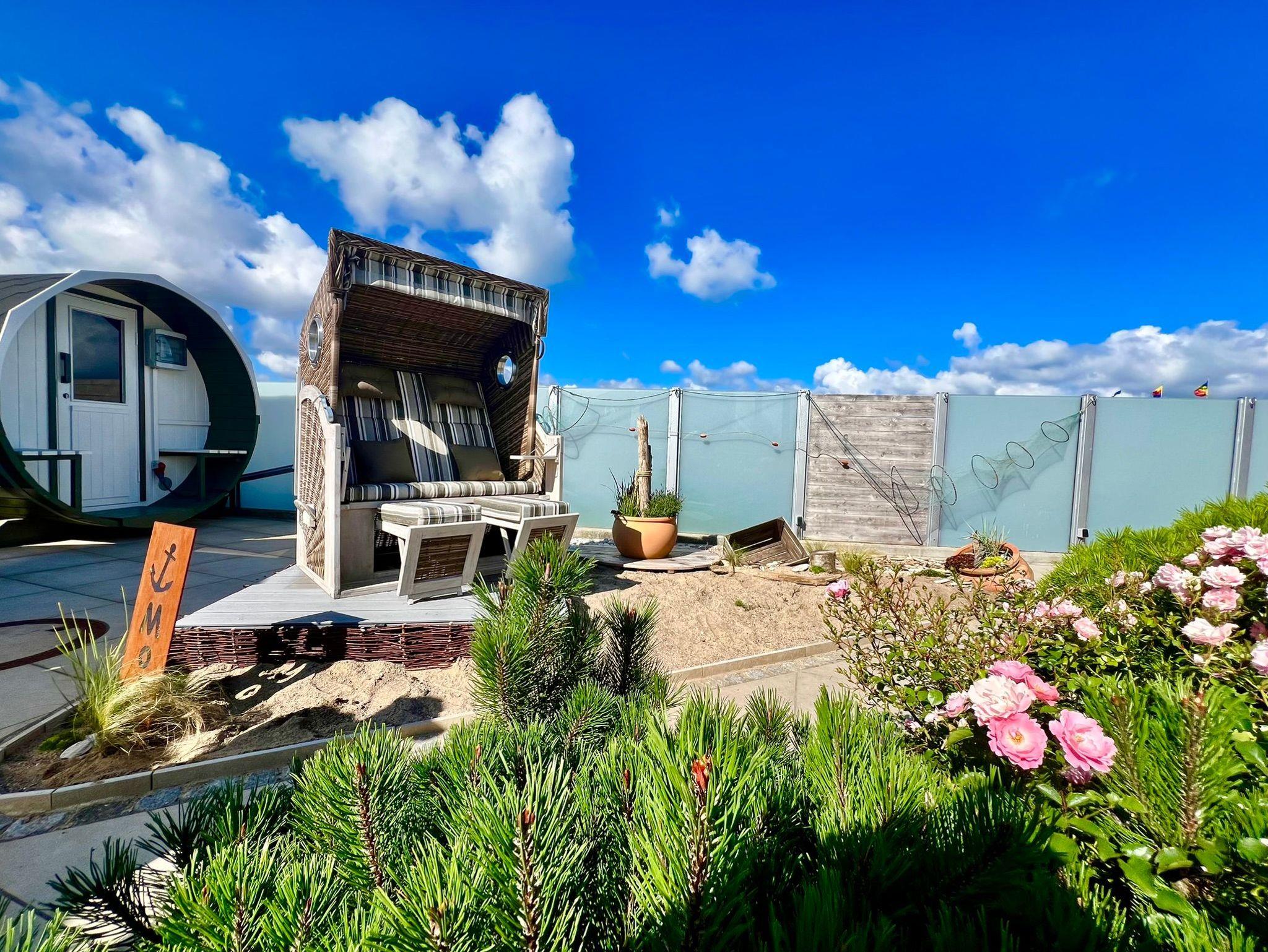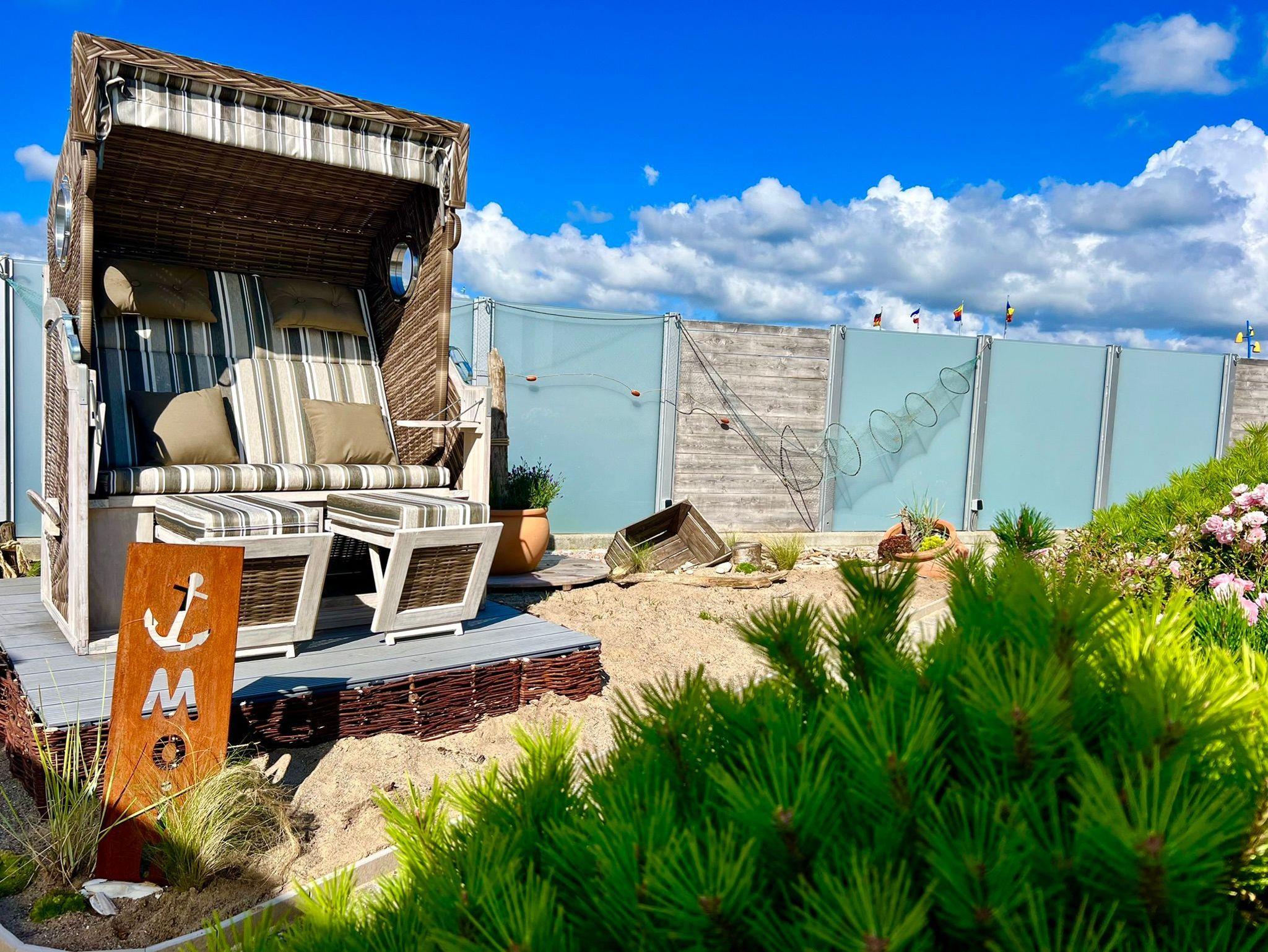 Für erholsame Stunden im Freien steht Ihnen der gemeinschaftliche Garten zur Verfügung. Hier können Sie im Strandkorb die Sonne genießen oder in der Sauna neue Energie tanken. Diese Außenbereiche teilen Sie sich harmonisch mit den Gästen der zweiten Wohnung im Haus.