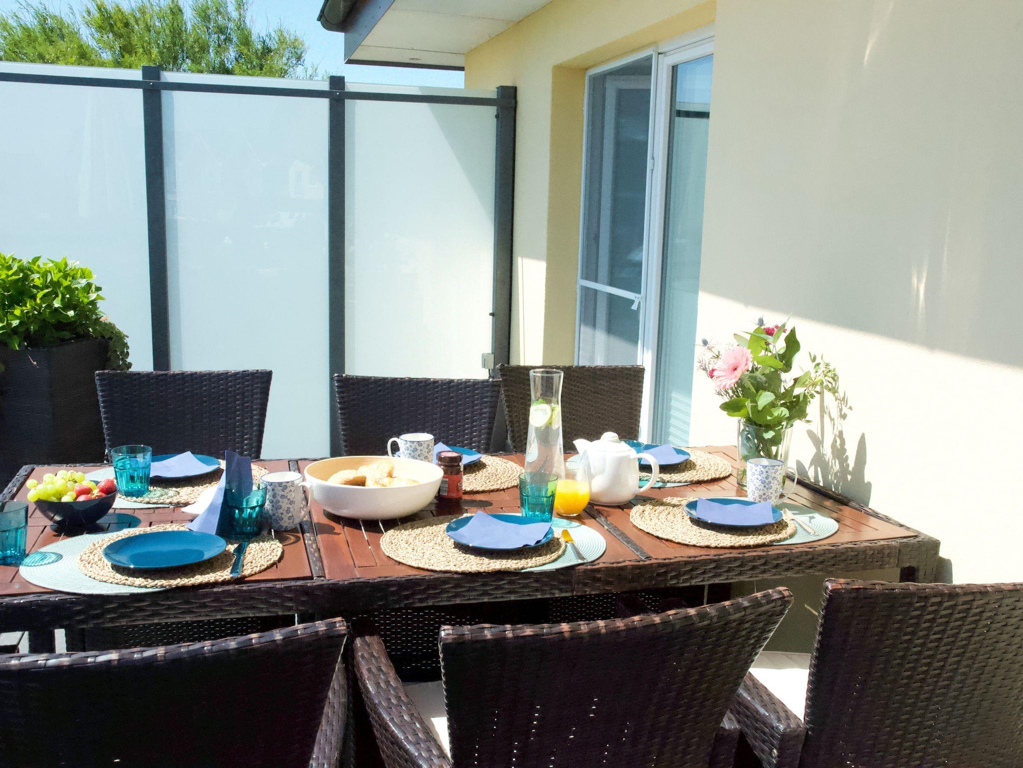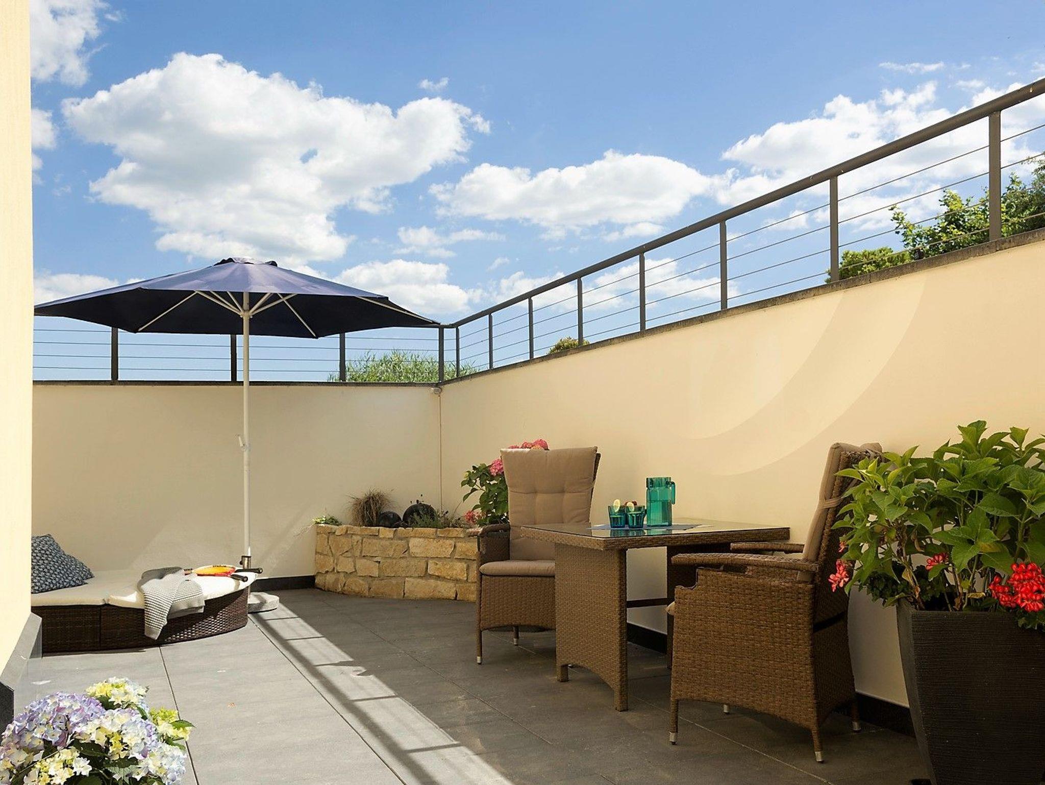 Jede Wohnung hat ihren eigenen Balkon/Terrasse auf dem relaxt oder auch gegessen werden kann.