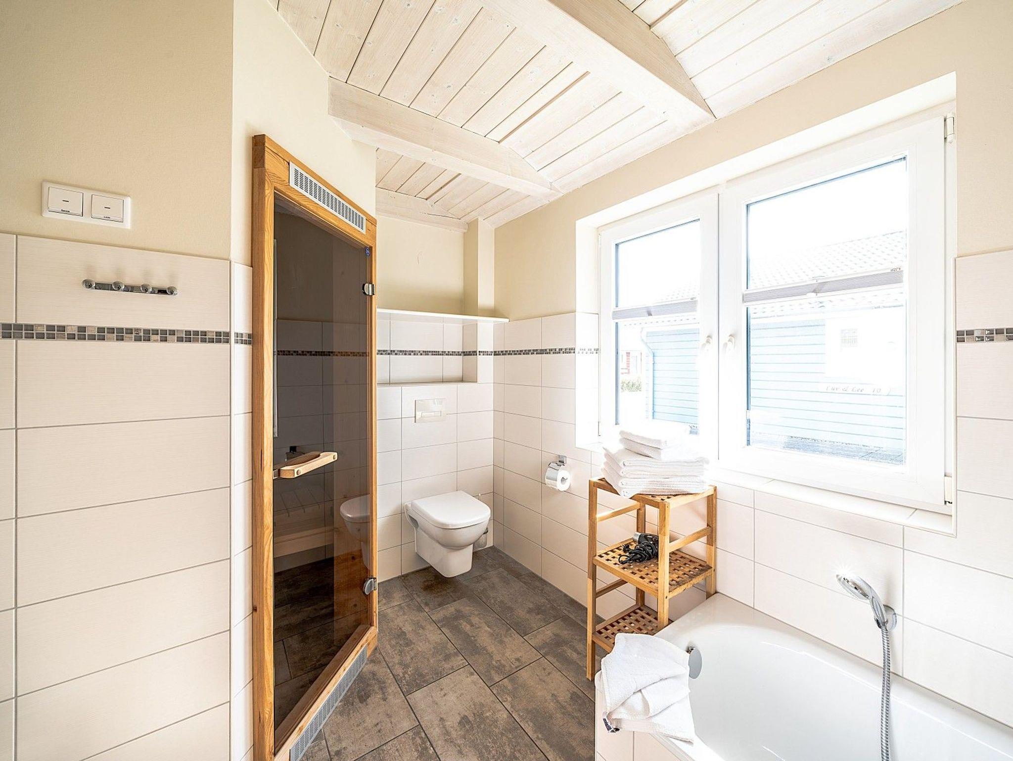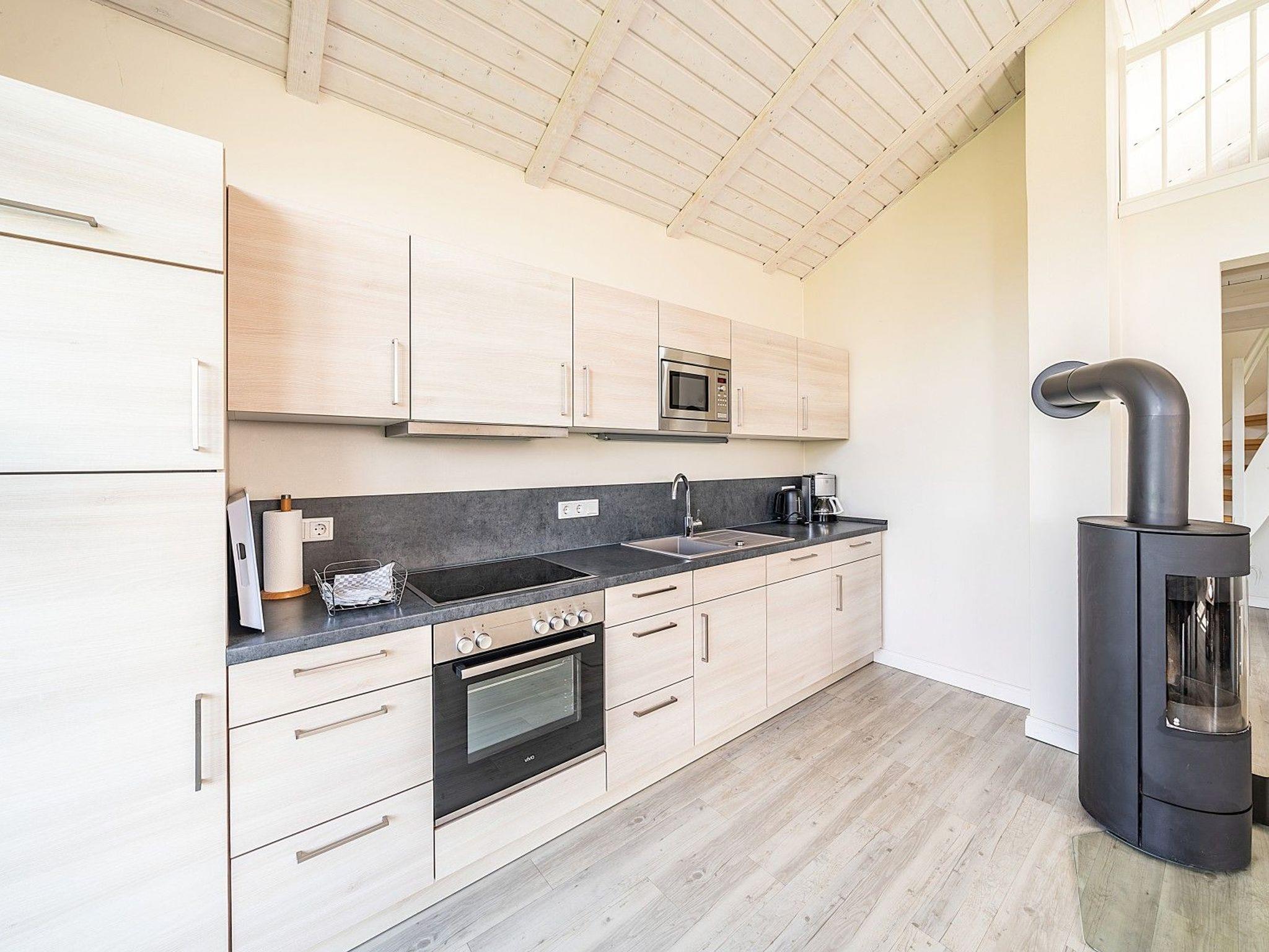 Im Inneren erwarten Sie zwei gemütliche Schlafzimmer mit Doppelbetten, ein modernes Bad mit Dusche und Badewanne sowie eine offene, voll ausgestattete Küche. Nach Spaziergängen am Deich laden Sauna und Kaminofen zu wohltuender Entspannung ein.