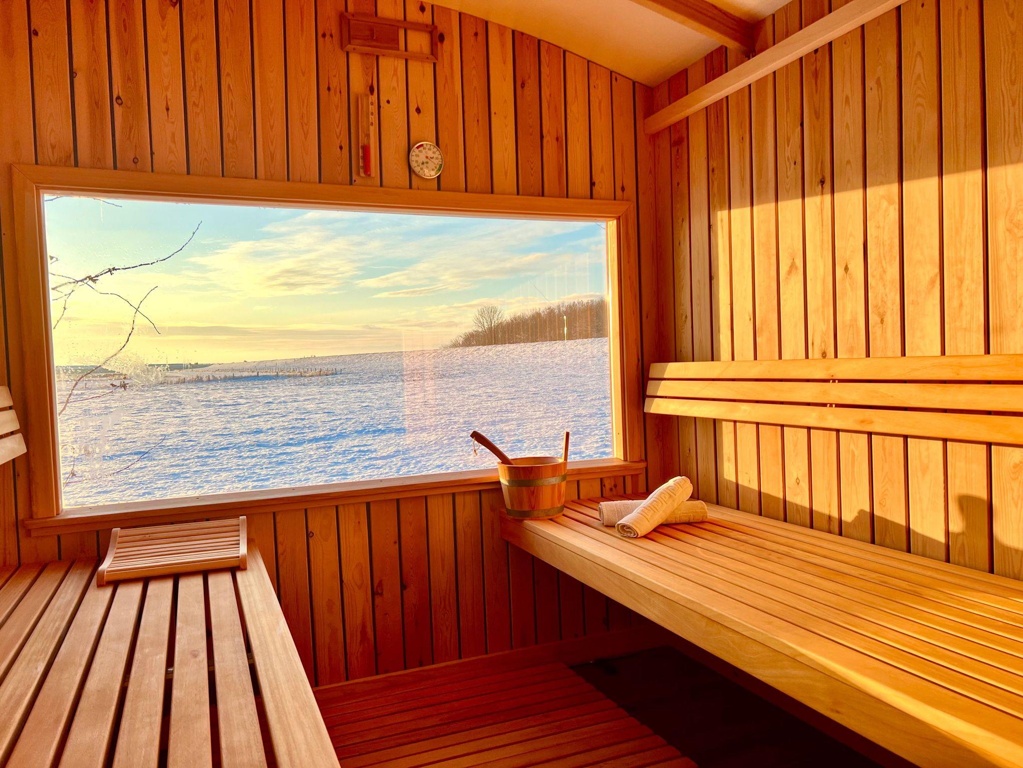 Eine große Terasse mit Panoramasauna, Gartenmöbel und Strandkörbe können Sie den ganzen Tag über nutzen. Zudem haben Sie die Möglichkeit in unserer Sommerlagune abends ein Lagerfeuer zu machen und einen entspannten Sommerabend zu verbringen.
