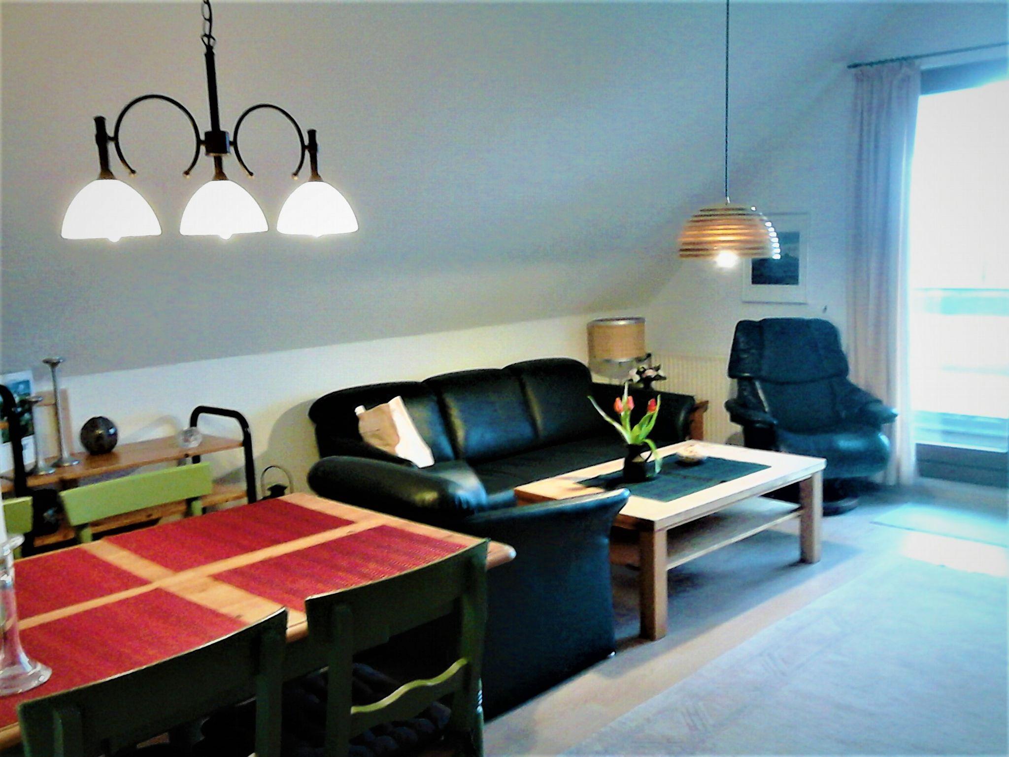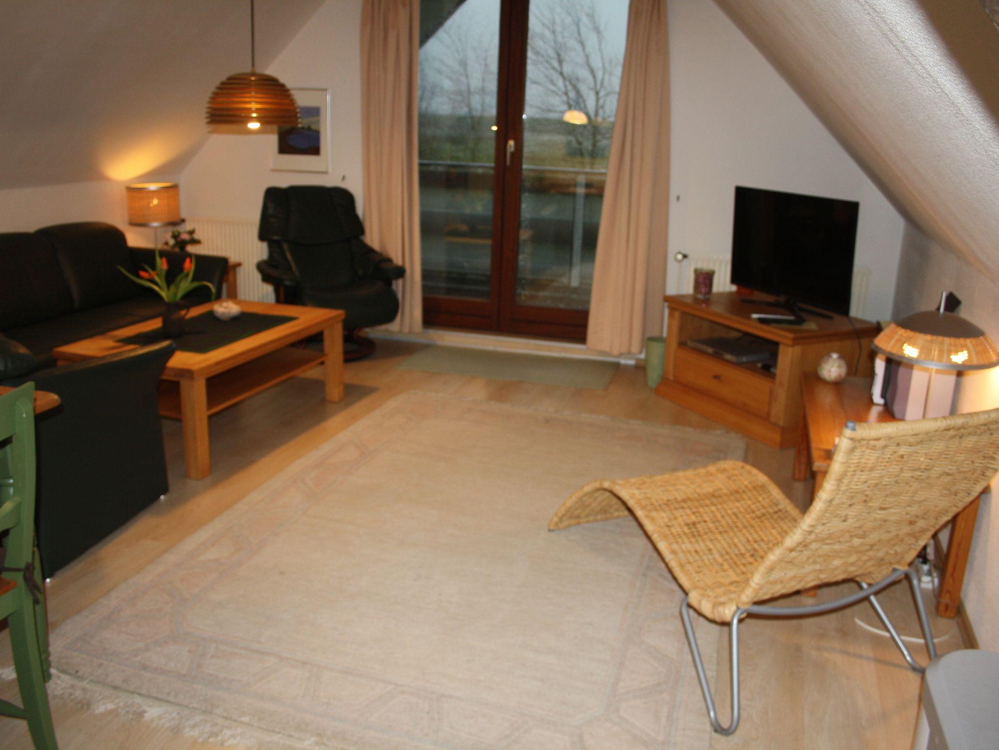 Das Apartment Fewo 2 Oland in Dagebüll bietet auf 60 m² Platz für bis zu 4 Gäste mit 2 Schlafzimmern und 1 Badezimmer. Es gibt ein Schlafzimmer mit Doppelbett und ein kleineres mit 2 Einzelbetten. Die Wohnung befindet sich im ersten Stock und verfügt über ein Wohnzimmer mit integriertem Essbereich sowie eine Küchenzeile. Vom Wohnzimmer aus gelangen Sie durch eine große Glastür auf Ihren privaten Balkon, der einen schönen Blick auf den Deich und das Meer bietet. WLAN und TV stehen Ihnen während Ihres Aufenthalts zur Verfügung. Wäschepakete und Endreinigung sind gegen eine zusätzliche Gebühr verfügbar.