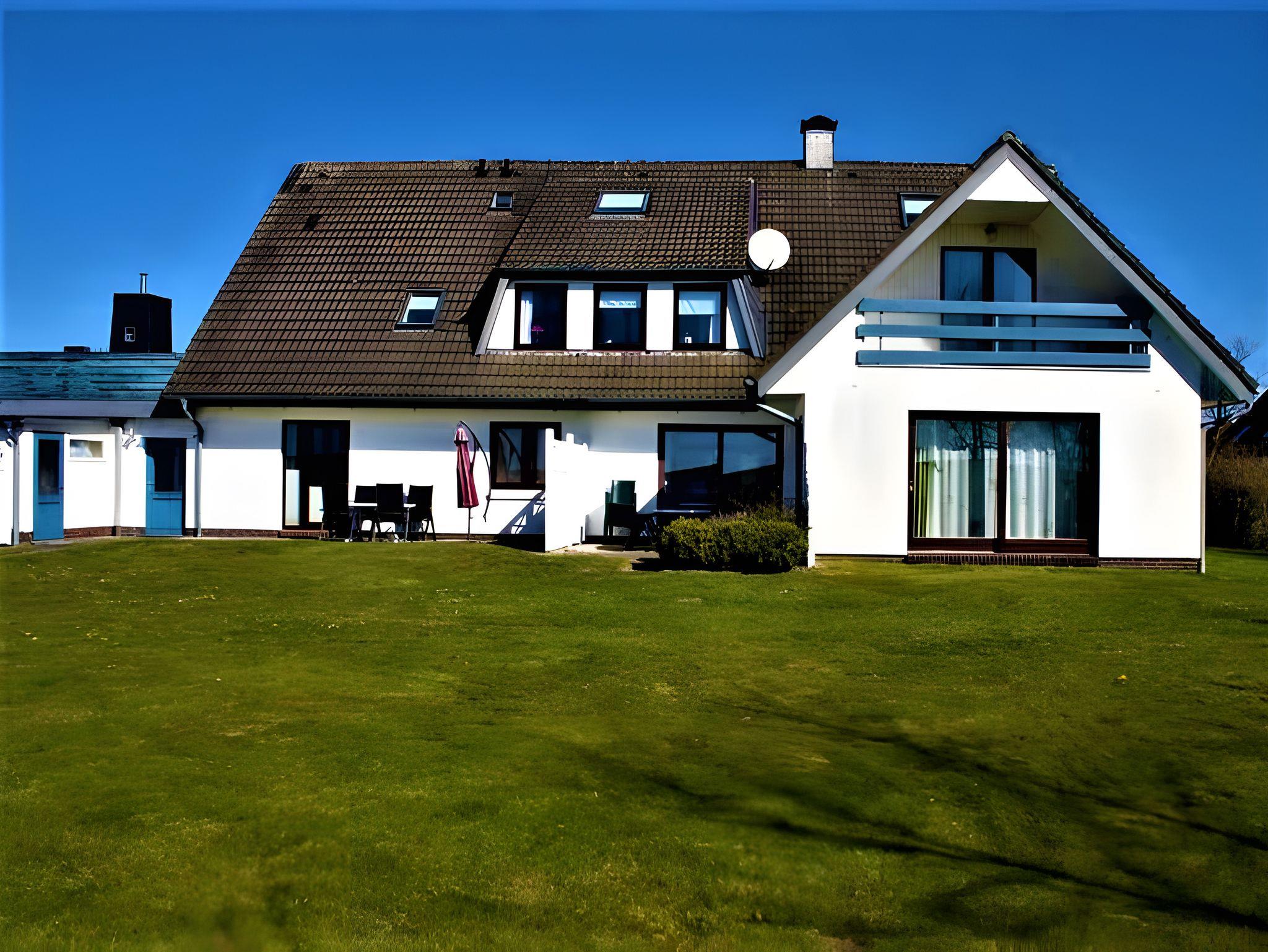Im Haus Halligblick in Dagebüll stehen gemeinschaftliche Außenbereiche wie ein Spielplatz, eine offene Terrasse, ein Garten mit jeweils eigener Terrasse für jede Wohnung sowie ein Fahrradabstellraum zur Verfügung. Für Familien gibt es Spielzeug und Bücher für Kinder.