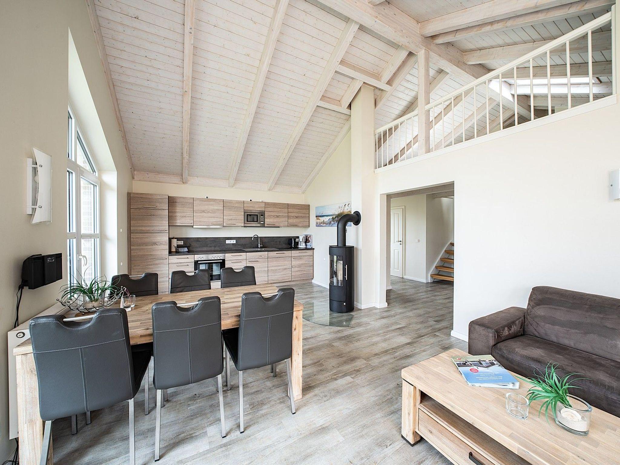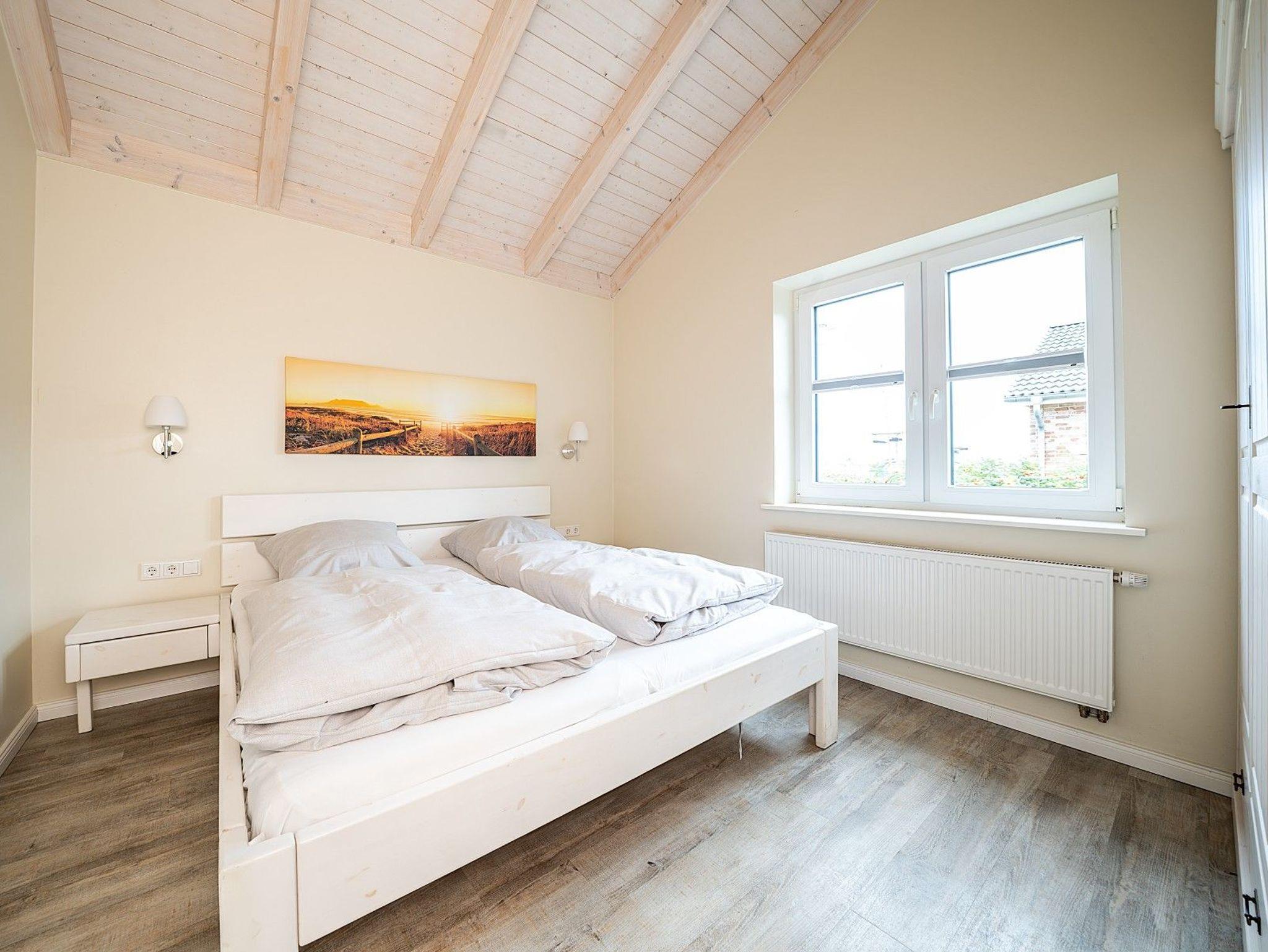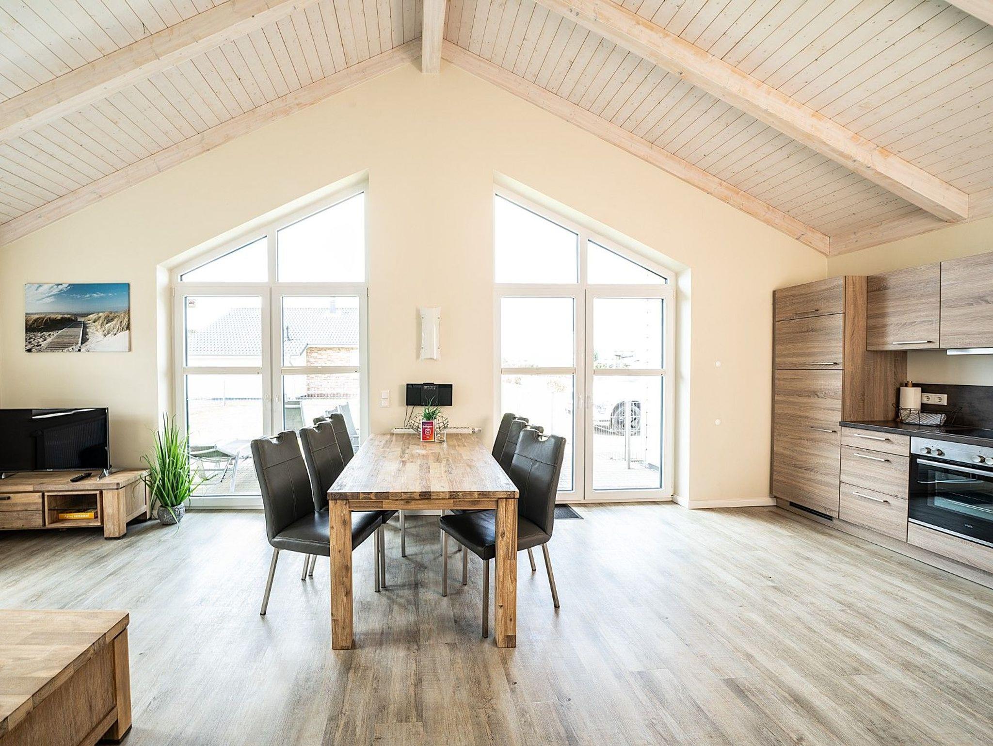 Dieses freistehende Ferienhaus bietet auf 80 m² Platz für bis zu vier Personen und ist die ideale Wahl für einen erholsamen Nordseeurlaub. Zwei komfortable Schlafzimmer, ein großzügiges Bad mit Dusche und Badewanne sowie ein heller Wohnbereich mit Kaminofen schaffen ein wohnliches Ambiente zum Wohlfühlen.