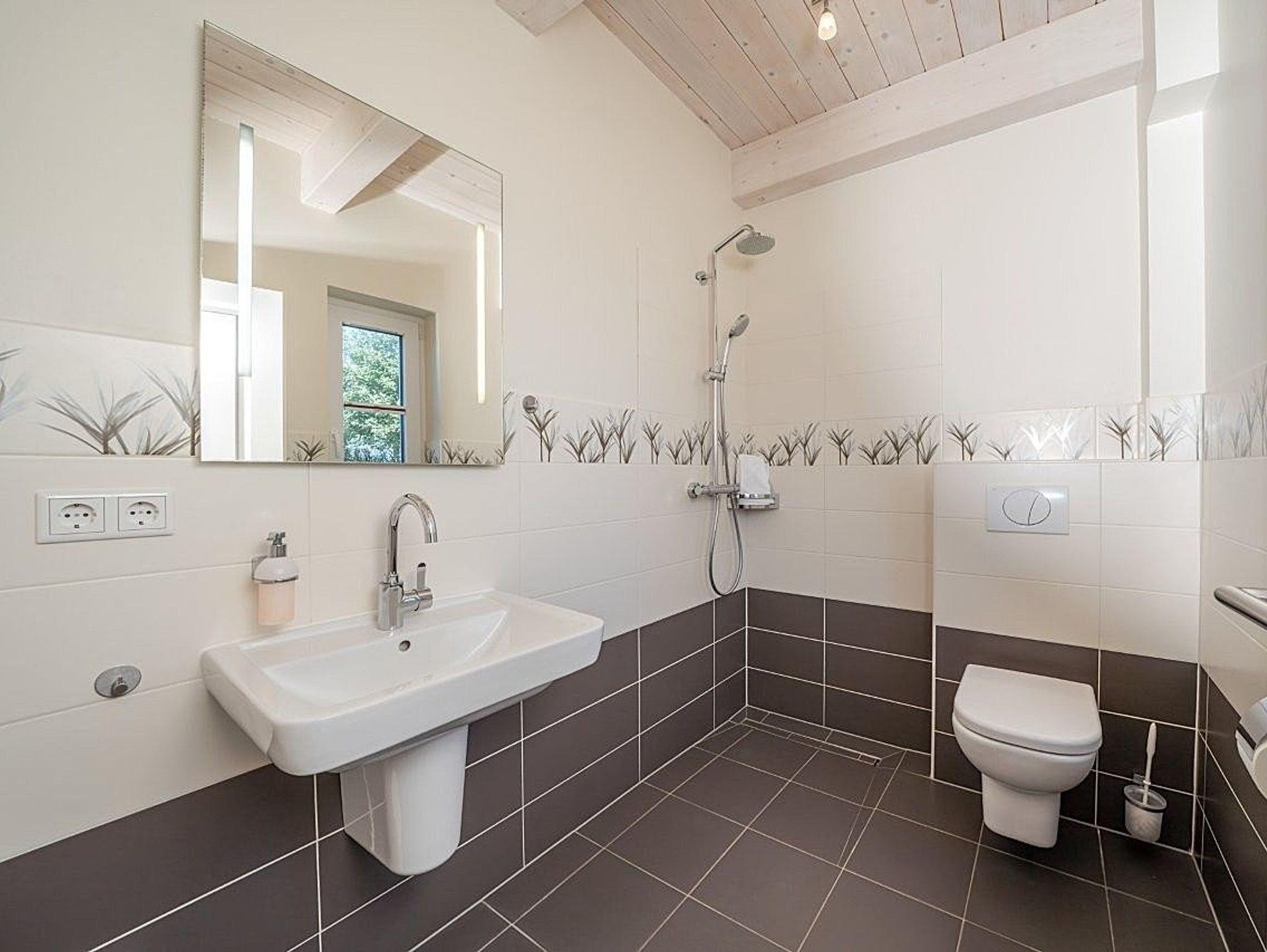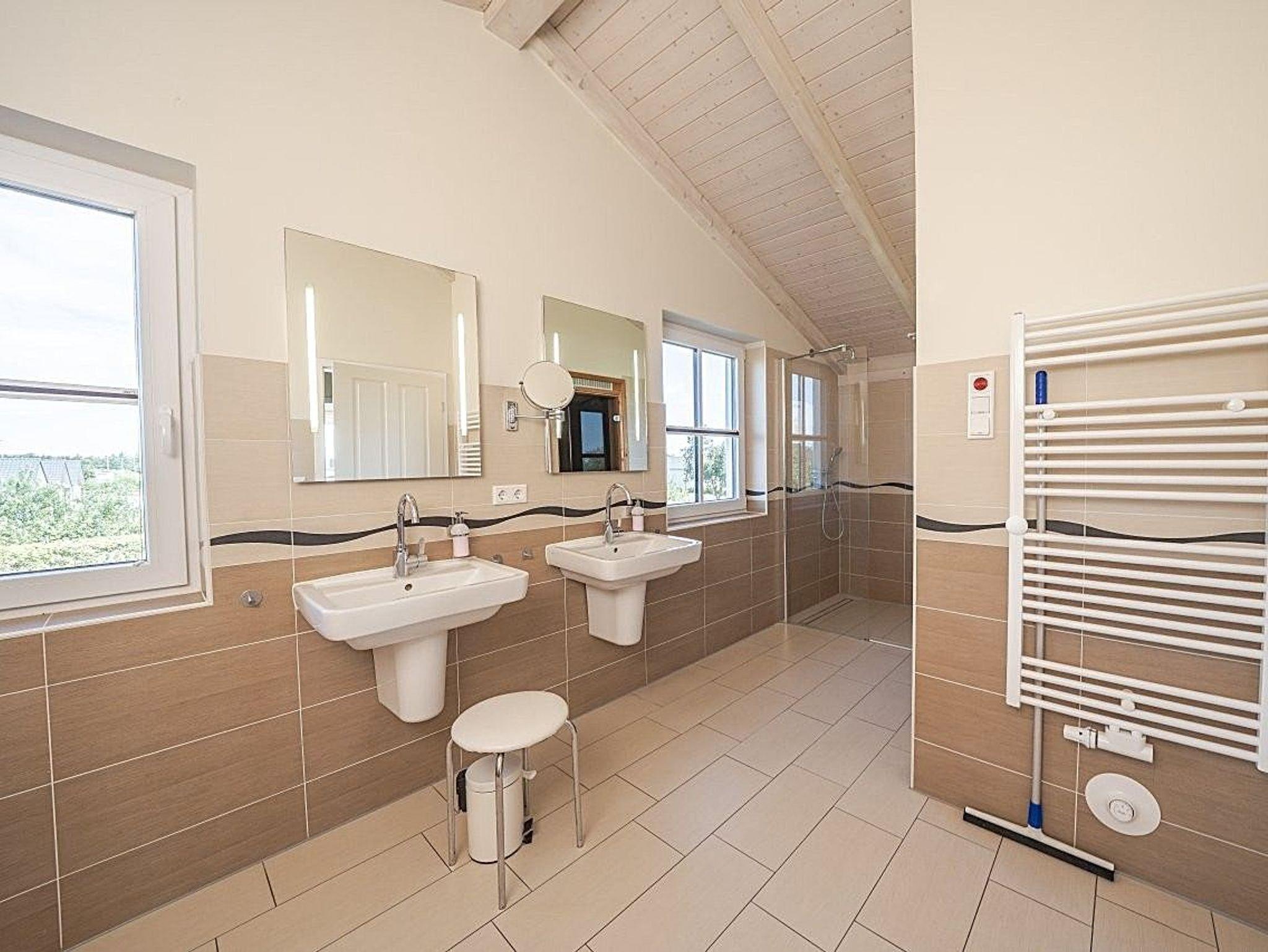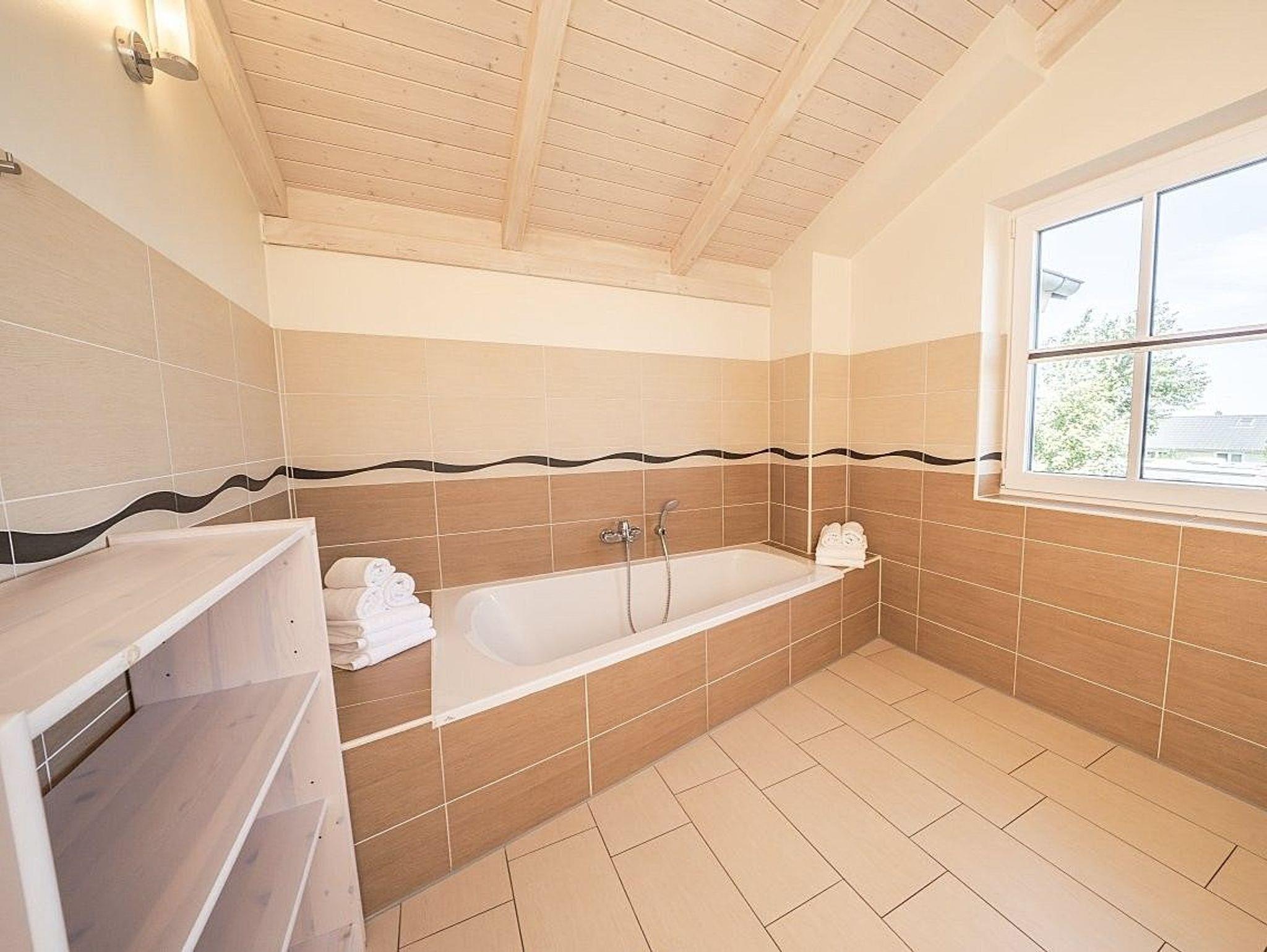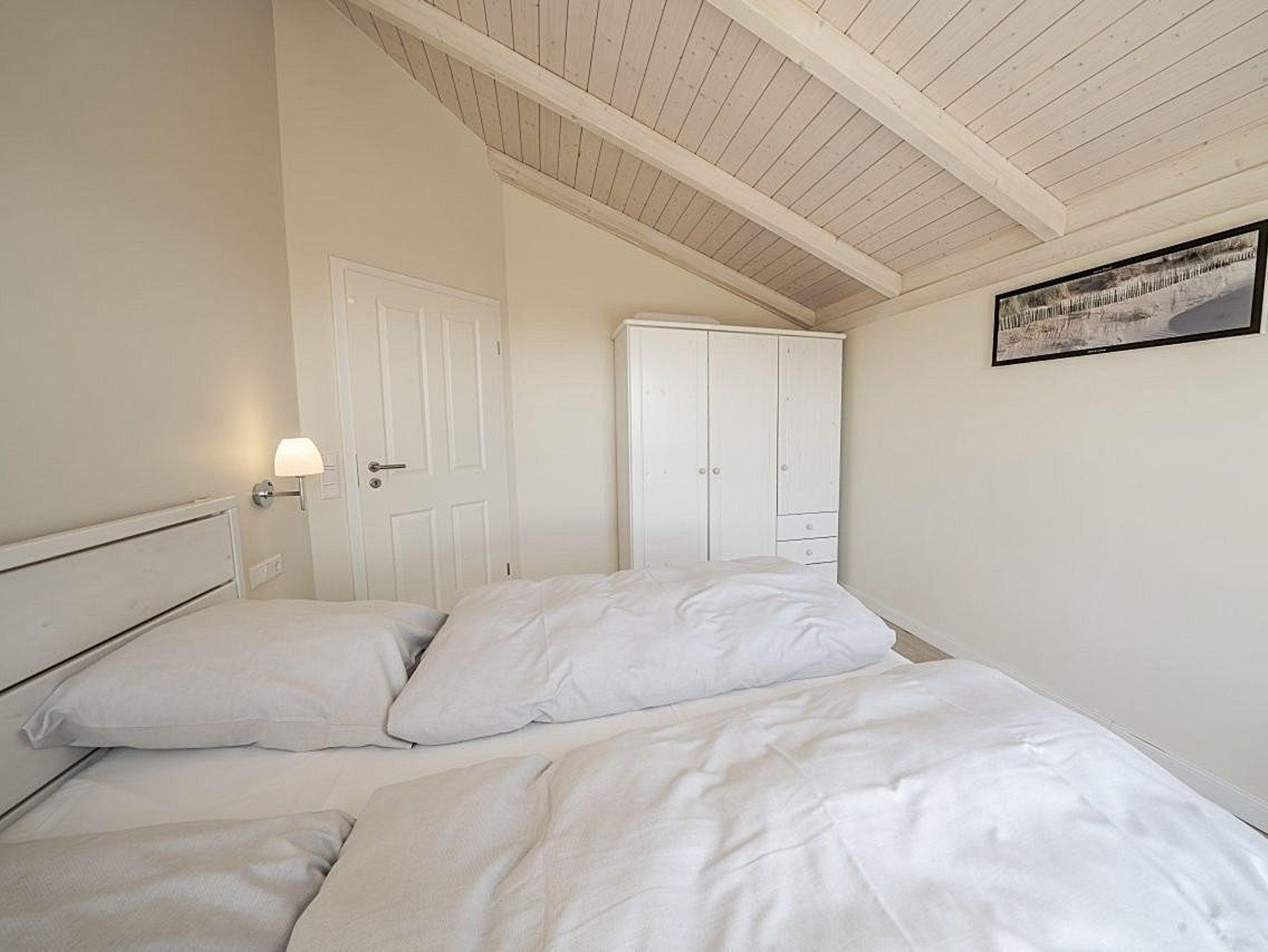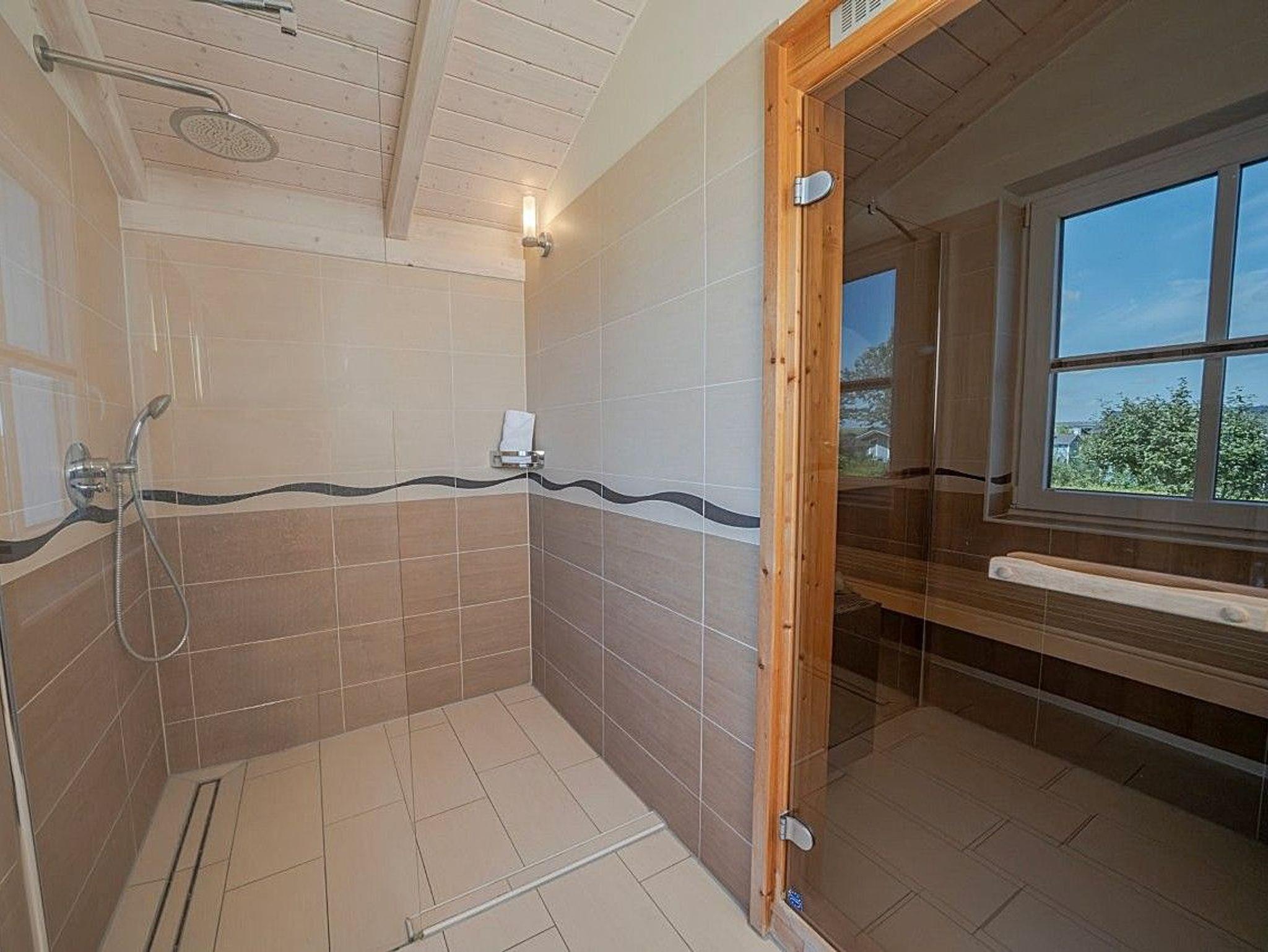 Im Erdgeschoss befinden sich ein Schlafzimmer mit komfortablem Einzelbett sowie ein Bad mit schwellenloser Dusche ? ideal für Gäste, die Treppen vermeiden möchten. Im Obergeschoss erwarten Sie zwei weitere Schlafzimmer sowie ein großzügiges Wellnessbad mit XXL-Badewanne für zwei Personen und einer geräumigen Sauna.