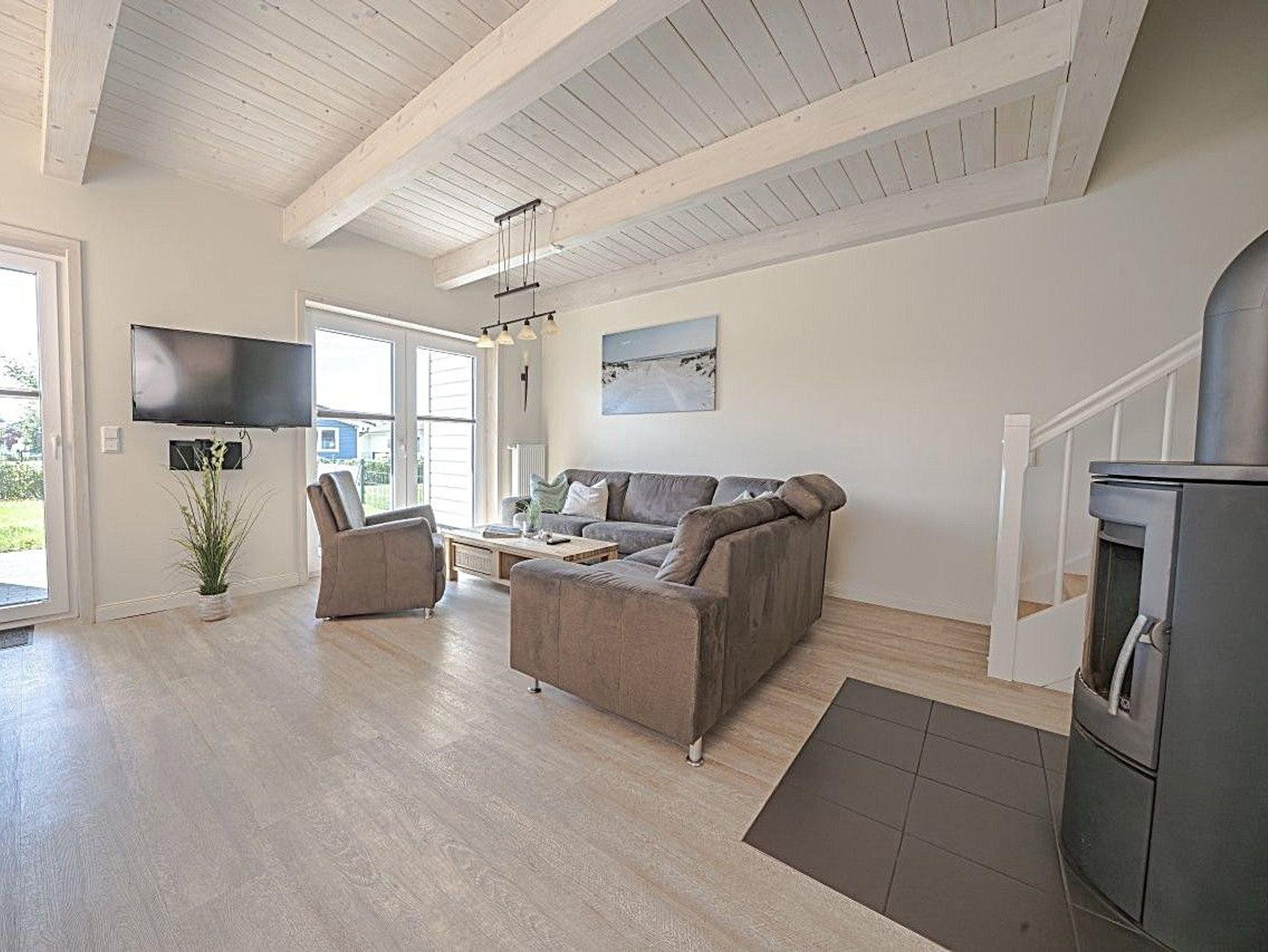Der helle Wohnbereich mit gemütlicher Sofalandschaft, Kaminofen und voll ausgestatteter Küche bildet das Herz des Hauses. Vom Wohnbereich aus gelangen Sie auf den Balkon oder die teilweise überdachte Terrasse, die zum Entspannen und Grillen einladen. Für E-Bike-Besitzer steht eine abschaltbare Außensteckdose bereit. WLAN, Waschmaschine, Trockner und zwei kostenfreie Parkplätze runden die hochwertige Ausstattung ab.