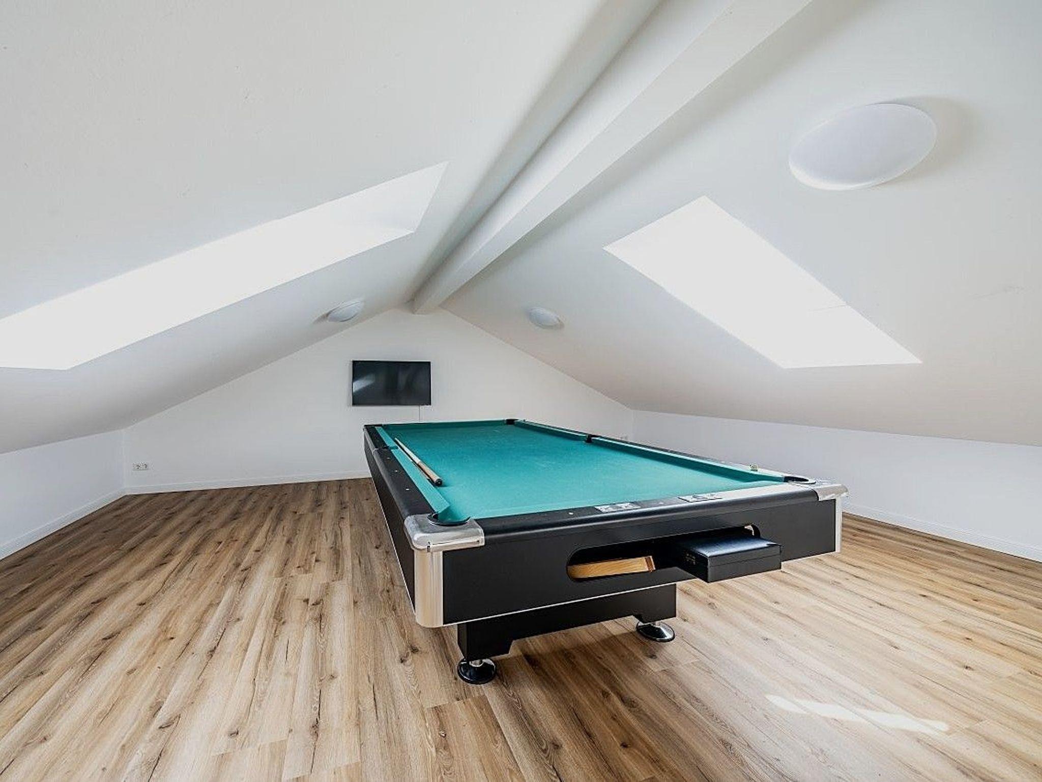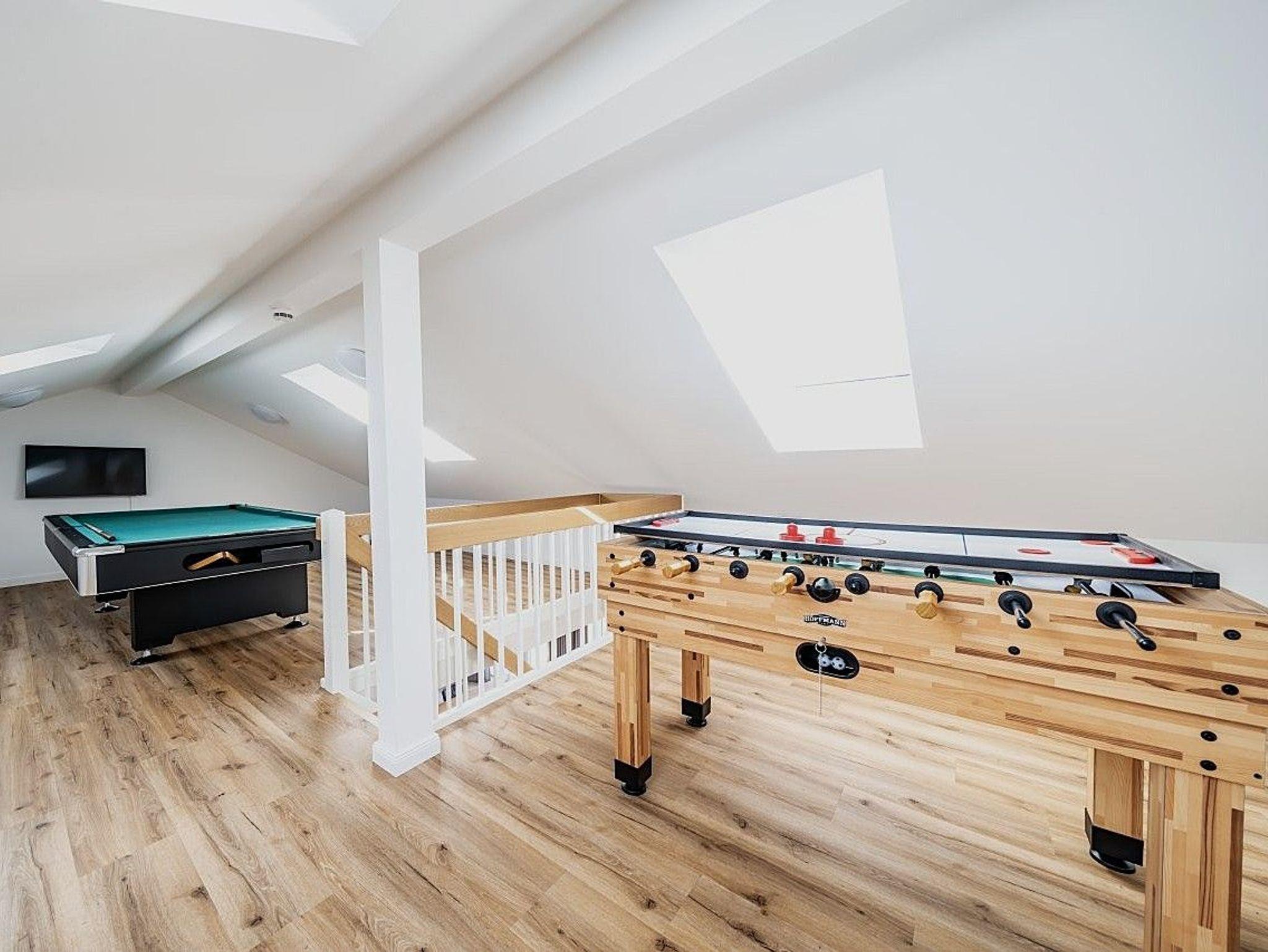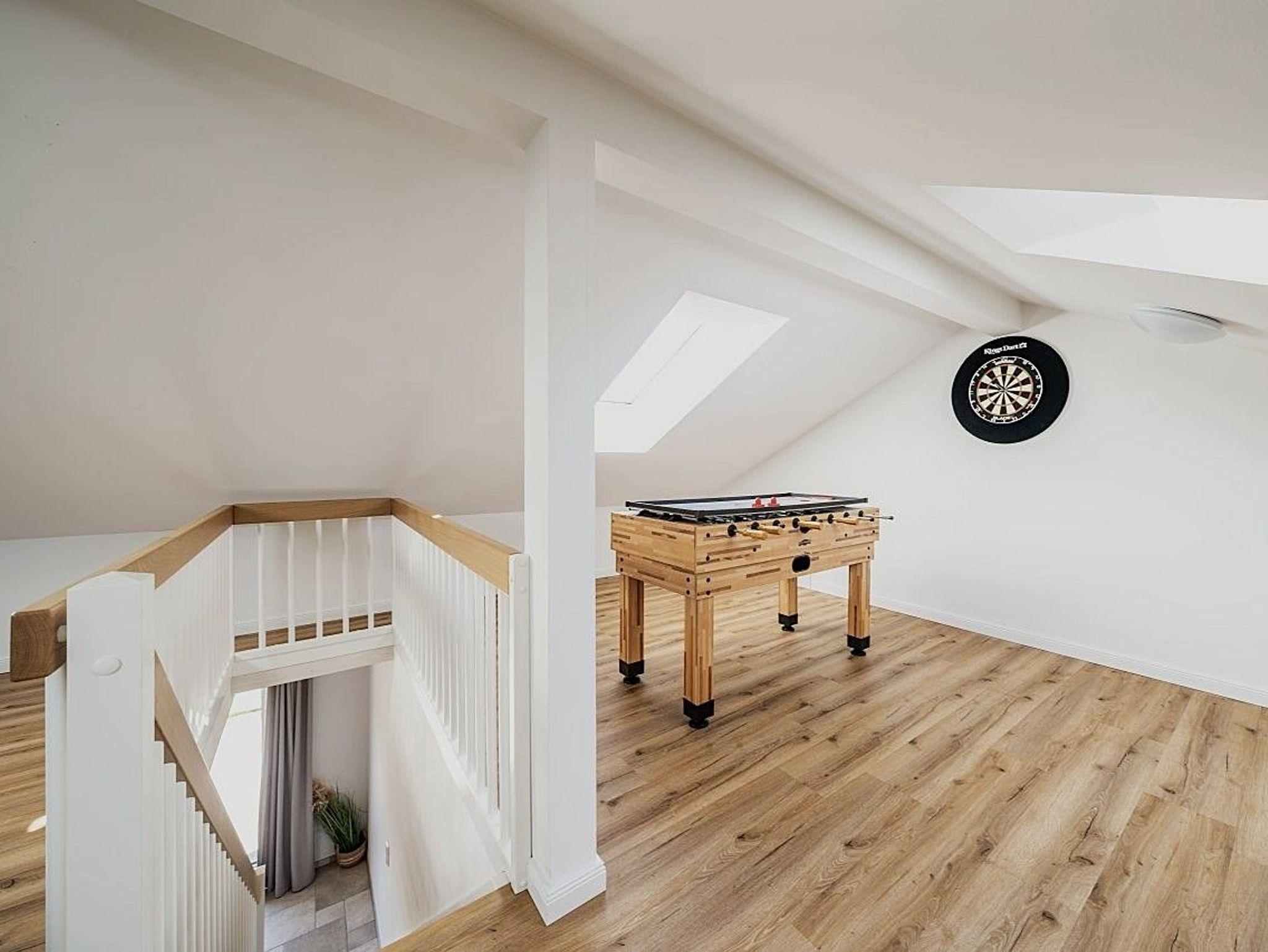 • Galerie mit Tischkicker, Billard, Dart und weiterem TV