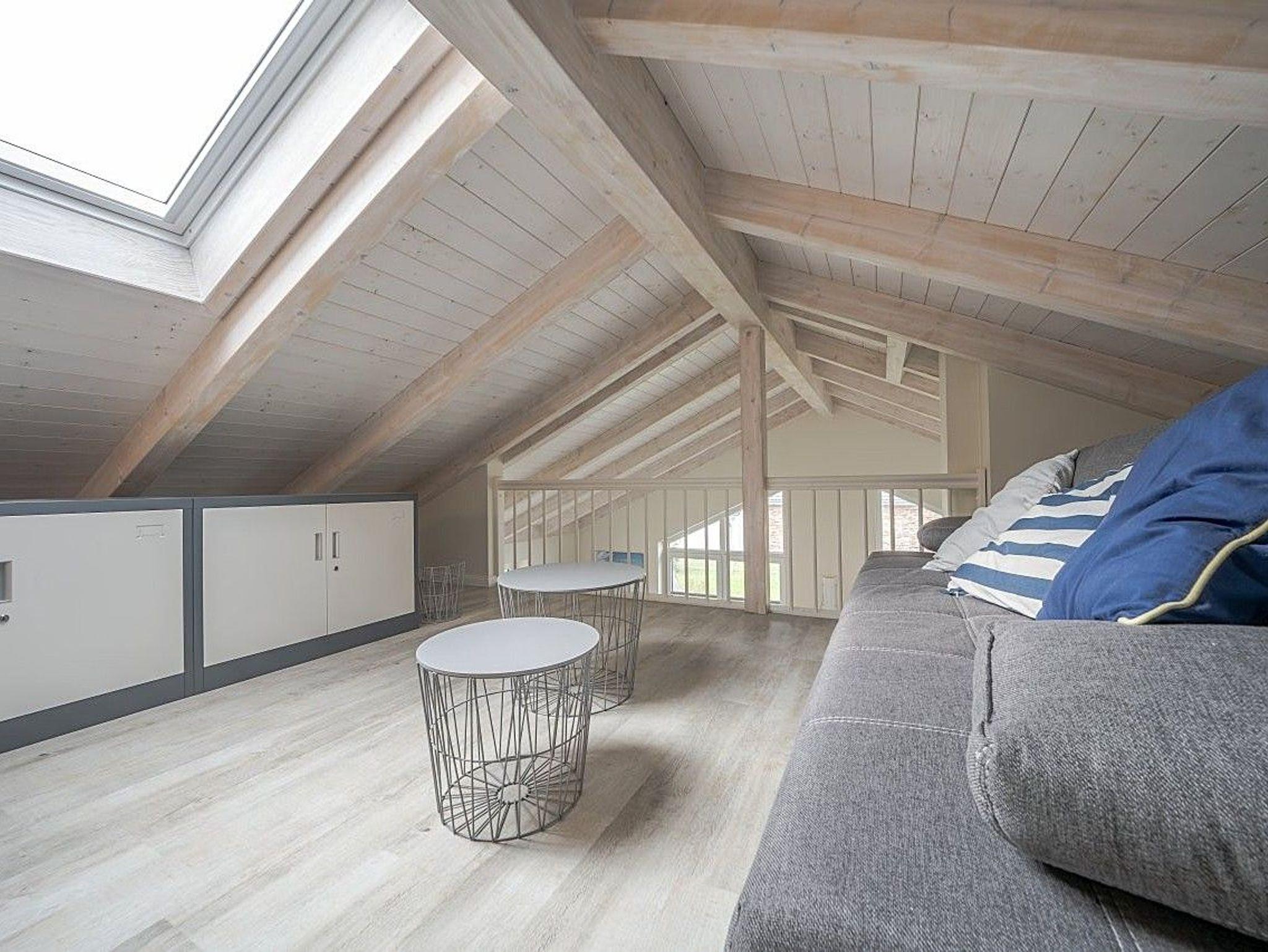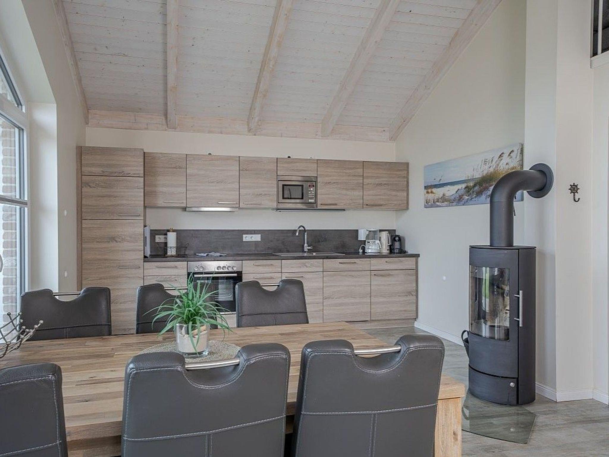 Im Wohnbereich sorgen Kaminofen und Sauna für wohlige Wärme, während auf der Galerie ein gemütliches Sofa zum Entspannen einlädt. Für Unterhaltung stehen ein DVD-Player, Bücher und eine kleine Auswahl an Spielen bereit. Beide Schlafzimmer sind mit Verdunklungsvorhängen ausgestattet und bieten erholsamen Schlafkomfort.