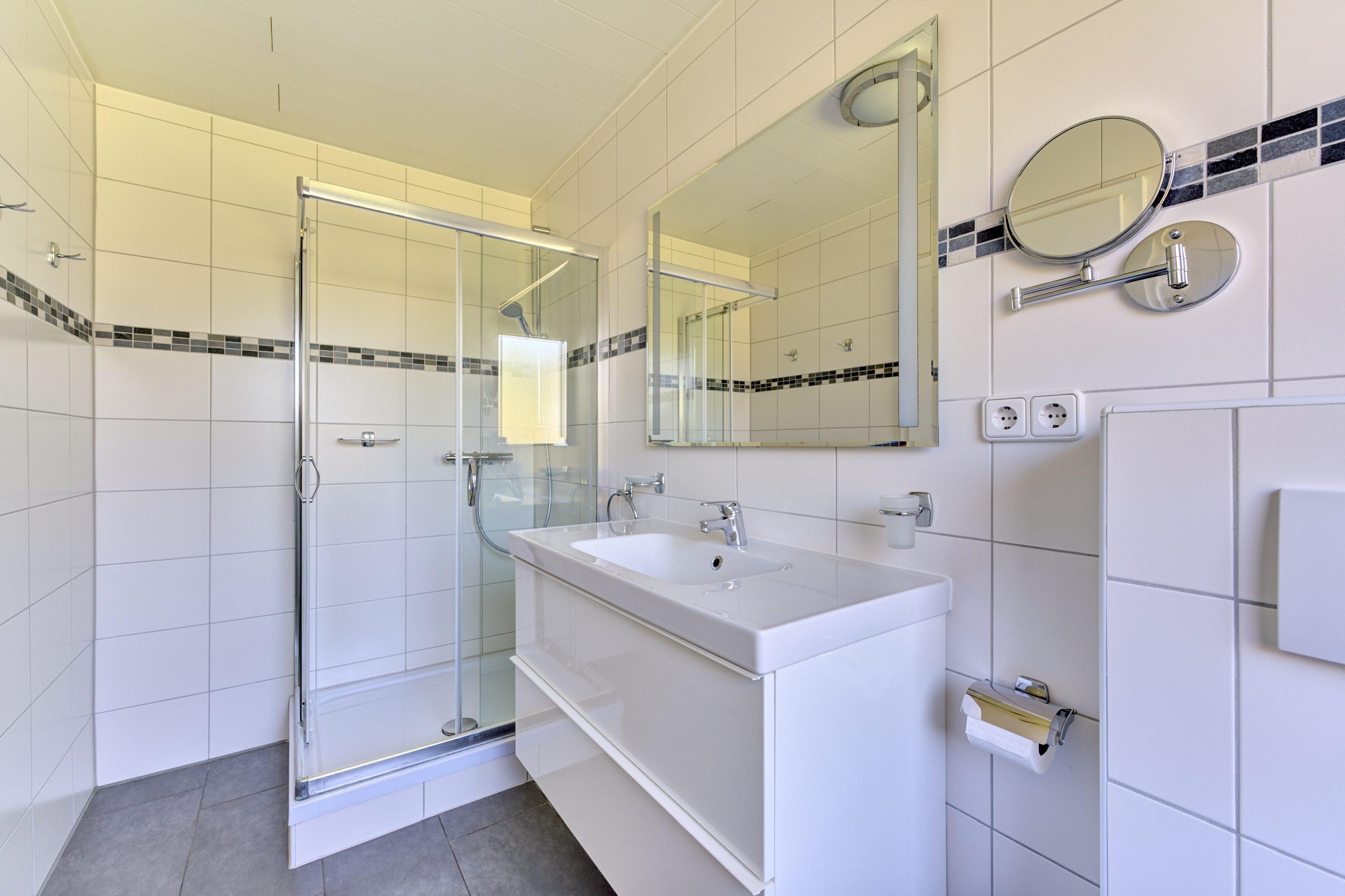 ausgestattet. Das Badezimmer verfügt über Dusche, WC und Föhn.