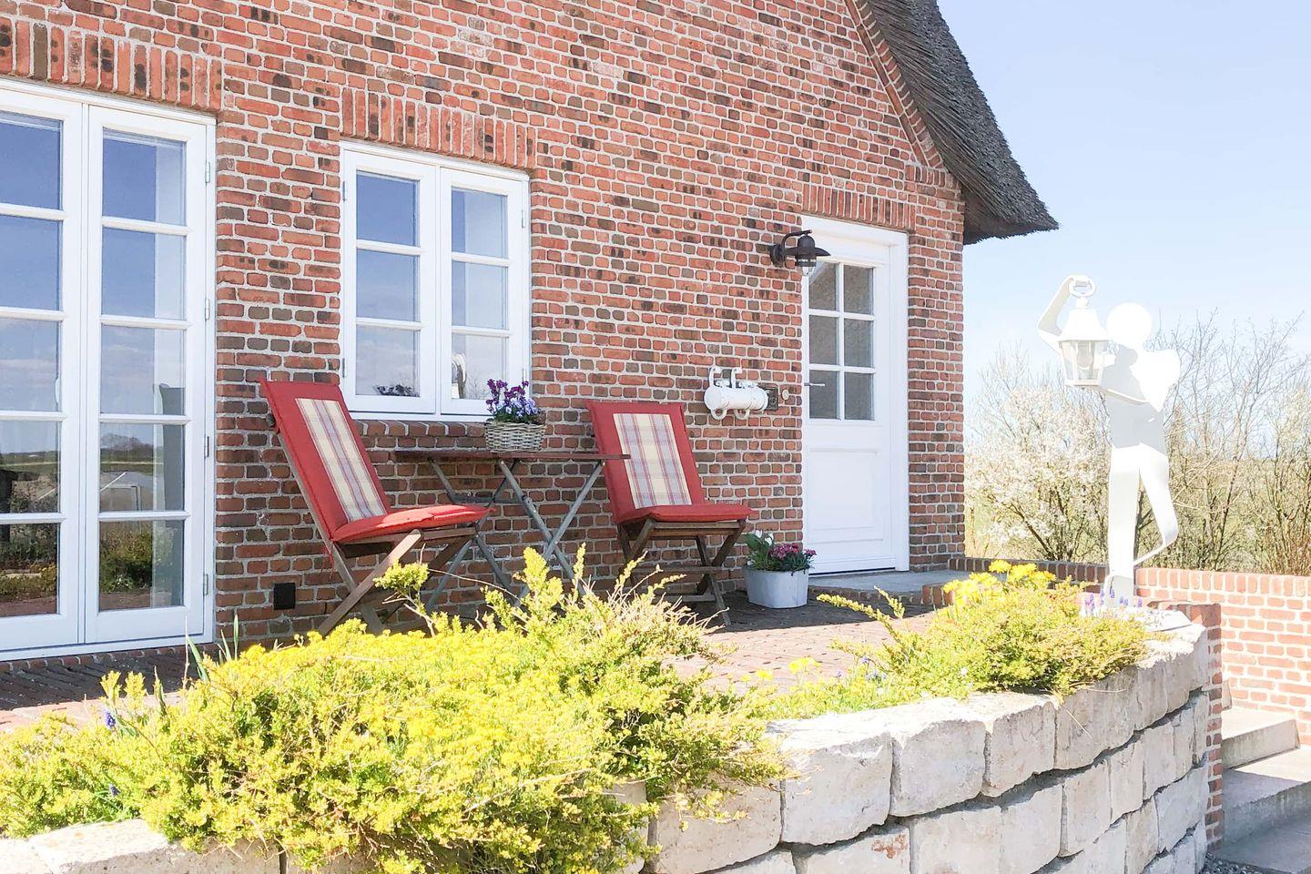 Das frei stehende Ferienhaus verfügt über einen Garten mit zwei Terrassen. Genießen Sie die warmen Sonnenstrahlen auf Ihrer Haut während Sie im Strandkorb relaxen.