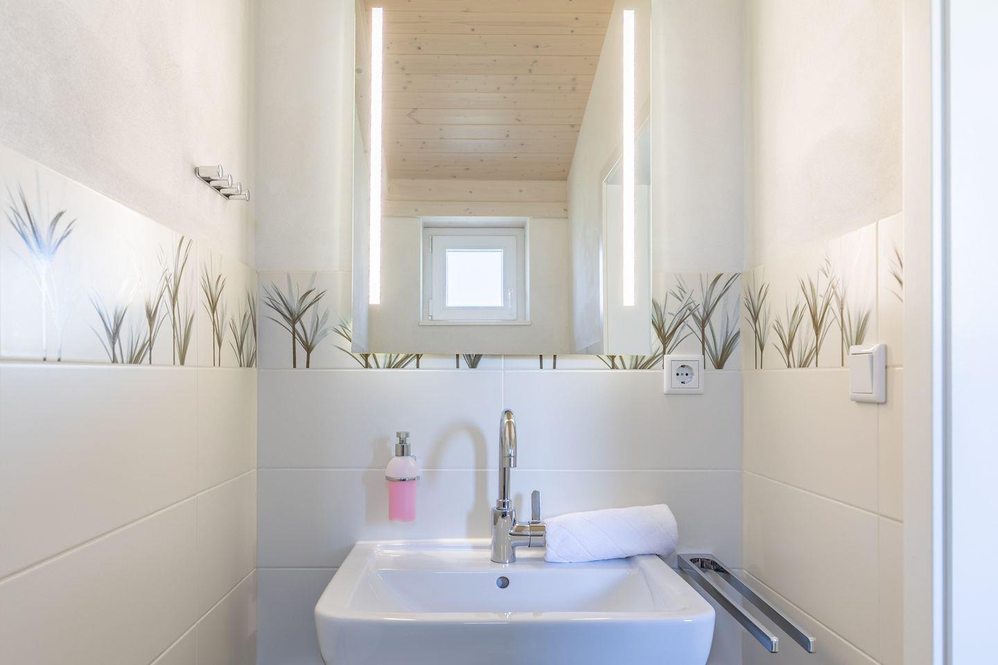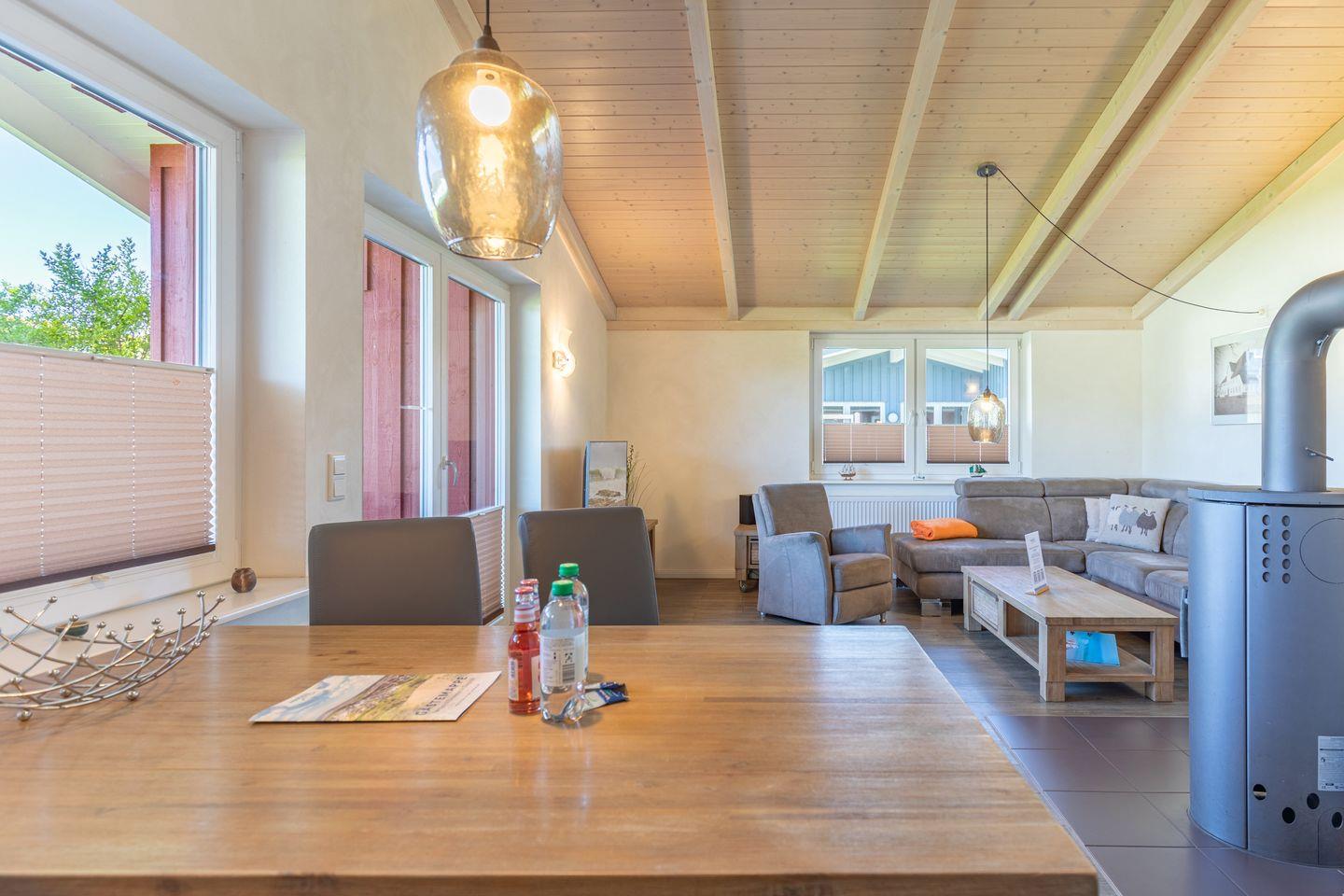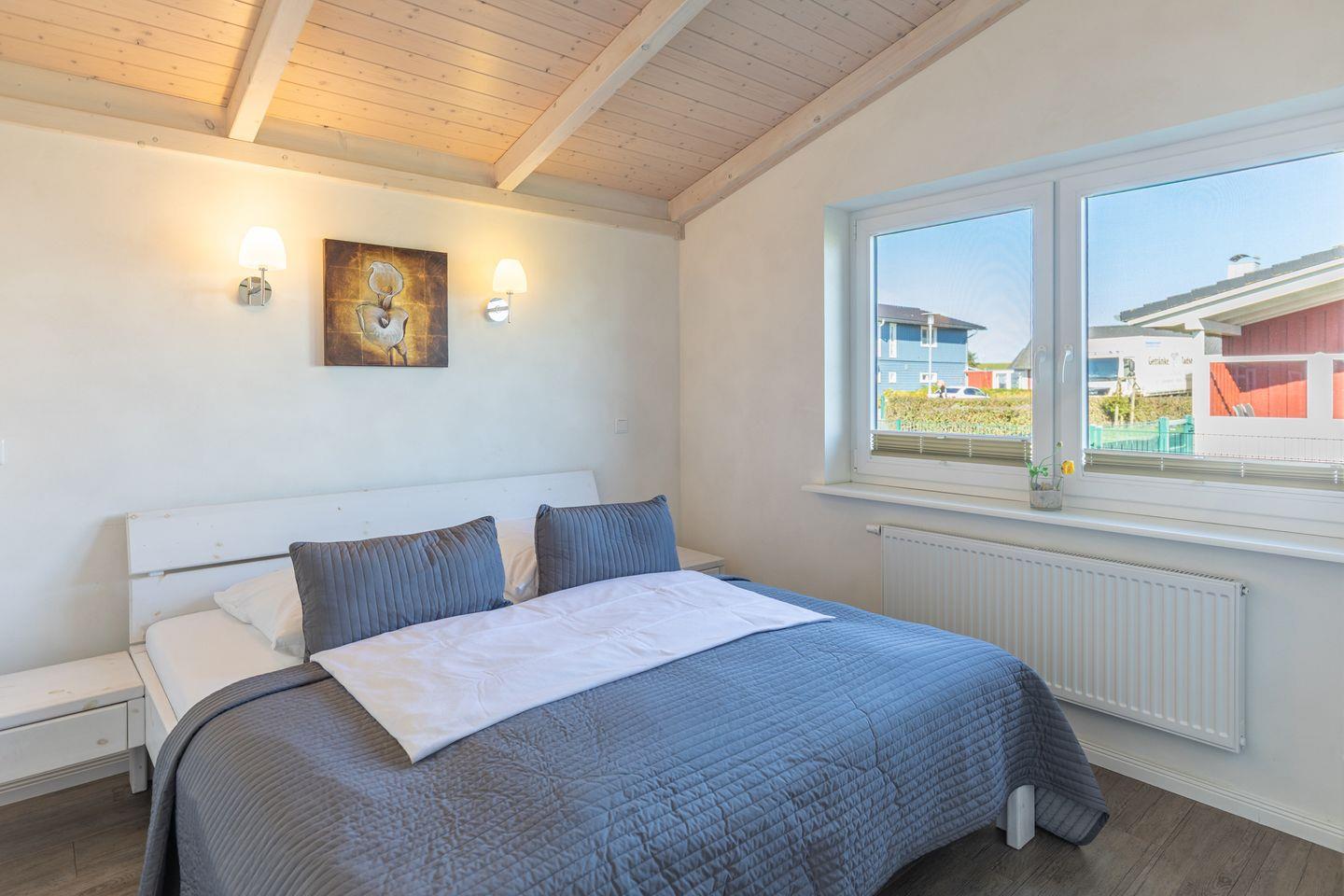 Das 85 qm große Ferienhaus ist modern und exklusiv im skandinavischen Charme eingerichtet. Die zwei Schlafzimmer mit jeweils einem Komfort-Doppelbett (180 x 200 cm) bieten Platz für bis zu vier Personen. Das gemütliche Wohnzimmer ist mit SAT-TV und einem Blu-Ray-DVD-Player ausgestattet. Der Kaminofen sorgt auch in der kälteren Jahreszeit für behagliche Stunden. Die offene Küche bietet Ihnen eine exklusive und umfangreiche Ausstattung, die das Herz eines jeden Hobbykochs höher schlagen lässt: Ceranfeld mit 4 Kochplatten, Backofen, Kühlschrank mit ***Gefrierfach, Mikrowelle, Geschirrspüler, Filterkaffeemaschine, Qbo Essential uvm. Das Badezimmer lässt keine Wünsche offen: zwei Waschbecken, eine große Badewanne, eine ebenerdige Dusche und eine schöne Sauna geben Ihrem Urlaub den richtigen Rahmen. Das Ferienhaus verfügt über ein zusätzliches WC. Auf der überdachten Terrasse können Sie auf bequemen Gartenstühlen und im Strandkorb die Sonne genießen.