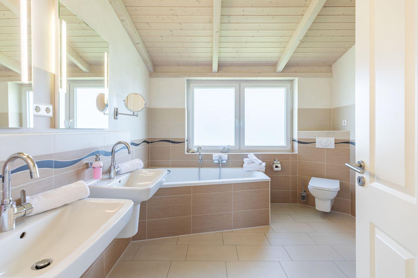 Das 85 qm große Ferienhaus ist modern und exklusiv im skandinavischen Charme eingerichtet. Die zwei Schlafzimmer mit jeweils einen Komfort-Doppelbett (180 x 200 cm) bieten Platz für bis zu vier Personen. Das gemütliche Wohnzimmer ist mit einem Smart-TV ausgestattet. Der Kaminofen sorgt auch in der kälteren Jahreszeit für behagliche Stunden. Die offene Küche bietet Ihnen eine exklusive und umfangreiche Ausstattung, die das Herz eines jeden Hobbykochs höher schlagen lässt: Ceranfeld mit 4 Kochplatten, Backofen, Kühlschrank mit ***Gefrierfach, Mikrowelle, Geschirrspüler, Filterkaffeemaschine uvm. Das Badezimmer lässt keine Wünsche offen: zwei Waschbecken, eine große Badewanne, eine ebenerdige Dusche und eine schöne Sauna geben Ihrem Urlaub den richtigen Rahmen. Das Ferienhaus verfügt über ein zusätzliches WC. Auf der überdachten, windgeschützten Terrasse können Sie auf bequemen Gartenstühlen, den Sonnenliegen oder im Strandkorb die Sonne genießen.
