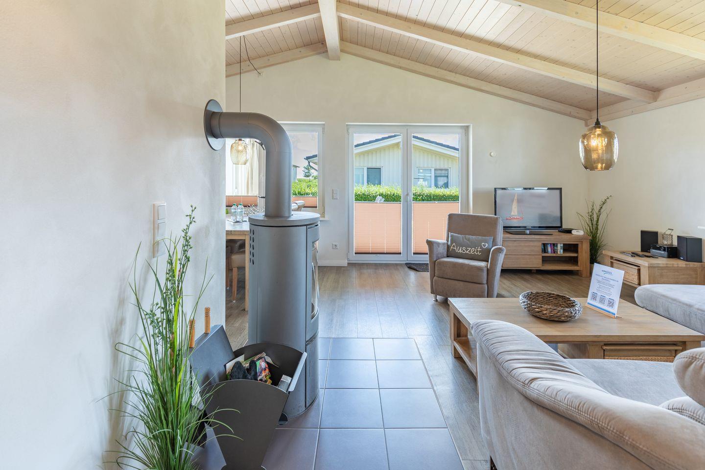 Das 85 qm große Ferienhaus ist modern und exklusiv im skandinavischen Charme eingerichtet. Die zwei Schlafzimmer mit jeweils einen Komfort-Doppelbett (180 x 200 cm) bieten Platz für bis zu vier Personen. Das gemütliche Wohnzimmer ist mit SAT-TV und einem Blu-Ray-DVD-Player ausgestattet. Der Kaminofen sorgt auch in der kälteren Jahreszeit für behagliche Stunden. Die offene Küche bietet Ihnen eine exklusive und umfangreiche Ausstattung, die das Herz eines jeden Hobbykochs höher schlagen lässt: Ceranfeld mit 4 Kochplatten, Backofen, Kühlschrank mit ***Gefrierfach, Mikrowelle, Geschirrspüler, Filterkaffeemaschine,Qbo Essential uvm. Das Badezimmer lässt keine Wünsche offen: zwei Waschbecken, eine große Badewanne, eine ebenerdige Dusche und eine schöne Sauna geben Ihrem Urlaub den richtigen Rahmen. Das Ferienhaus verfügt über ein zusätzliches WC. Auf der überdachten, windgeschützten Terrasse können Sie auf bequemen Gartenstühlen oder im Strandkorb die Sonne genießen.