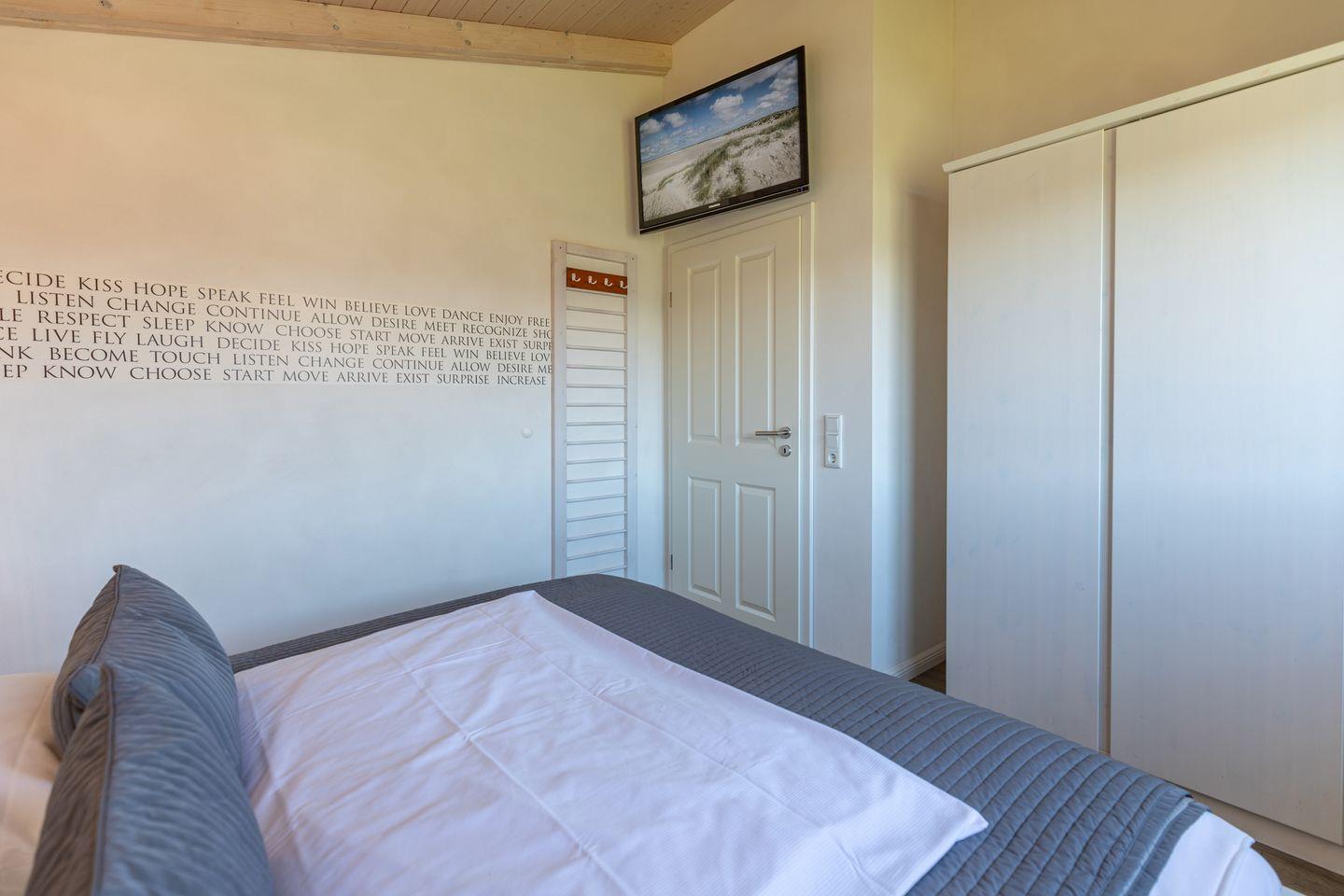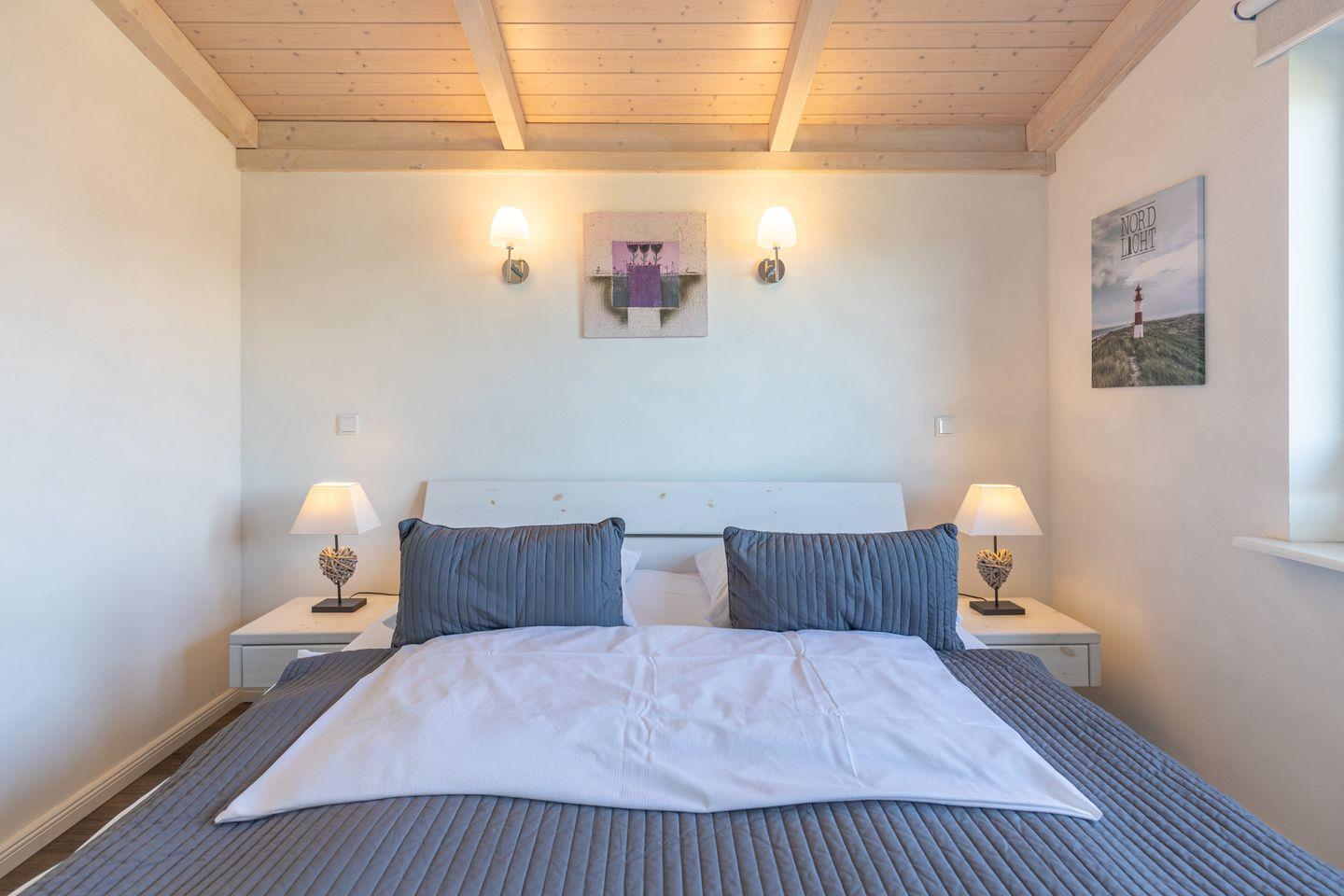 Das 85 qm große Ferienhaus ist modern und exklusiv im skandinavischen Charme eingerichtet. Die zwei Schlafzimmer mit jeweils einen Komfort-Doppelbett (180 x 200 cm) bieten Platz für bis zu vier Personen. Das gemütliche Wohnzimmer ist mit SAT-TV und einem Blu-Ray-DVD-Player ausgestattet. Der Kaminofen sorgt auch in der kälteren Jahreszeit für behagliche Stunden. Die offene Küche bietet Ihnen eine exklusive und umfangreiche Ausstattung, die das Herz eines jeden Hobbykochs höher schlagen lässt: Ceranfeld mit 4 Kochplatten, Backofen, Kühlschrank mit ***Gefrierfach, Mikrowelle, Geschirrspüler, Filterkaffeemaschine uvm. Das Badezimmer lässt keine Wünsche offen: zwei Waschbecken, eine große Badewanne, eine ebenerdige Dusche und eine schöne Sauna geben Ihrem Urlaub den richtigen Rahmen. Das Ferienhaus verfügt über ein zusätzliches WC. Auf der überdachten, windgeschützten Terrasse können Sie auf bequemen Gartenstühlen, den Sonnenliegen oder im Strandkorb die Sonne genießen.
