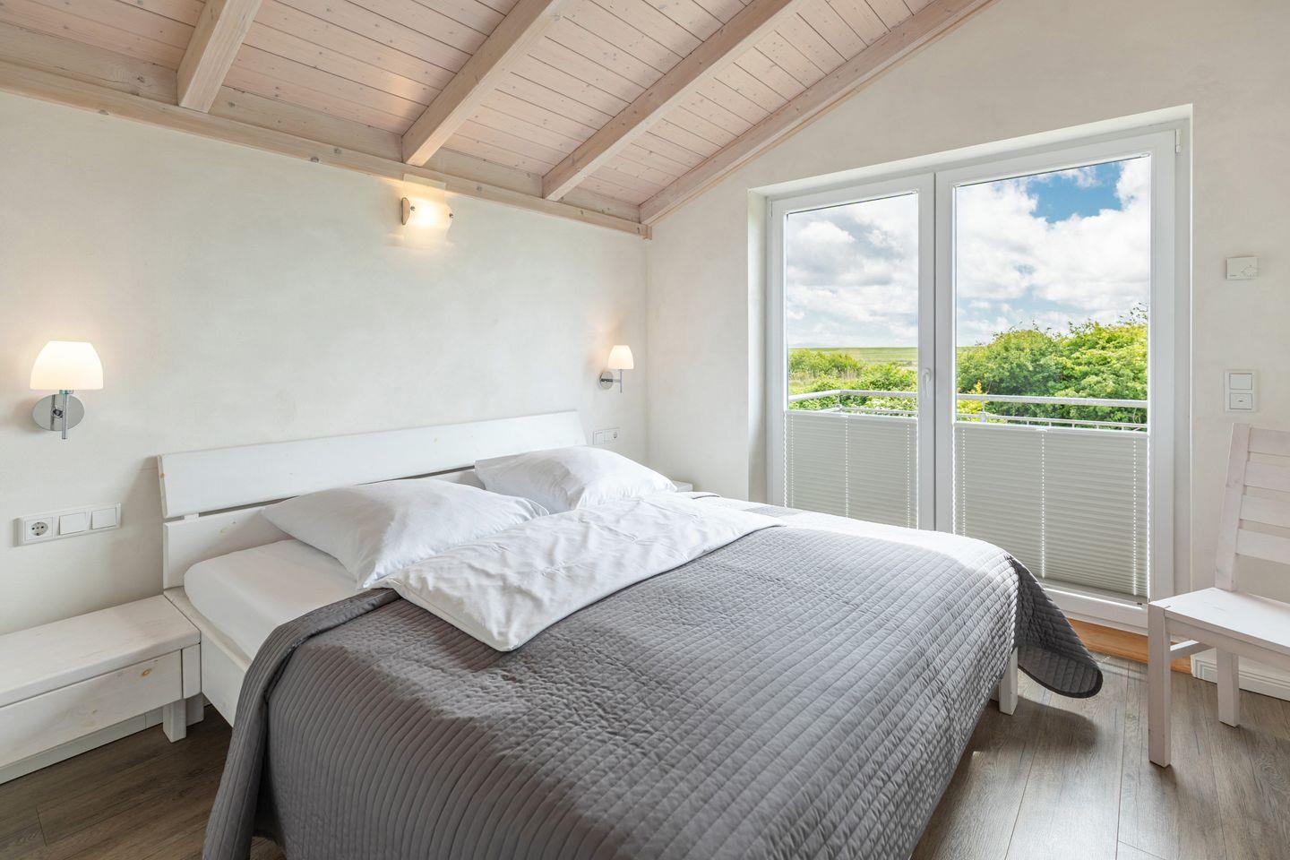 Das 100 qm große Ferienhaus ist modern und exklusiv im skandinavischen Charme eingerichtet. Zwei Schlafzimmer sind mit jeweils einen Komfort-Doppelbett (180 x 200 cm) ausgestattet, ein Schlafzimmer im Erdgeschoss bietet Ihnen ein Eck-Etagenbett, sodass Sie insgesamt für bis zu sechs Personen Platz finden. Das gemütliche Wohnzimmer ist mit SAT-TV und einem Blu-Ray-DVD-Player ausgestattet. Der Kaminofen sorgt auch in der kälteren Jahreszeit für behagliche Stunden. Die offene Küche bietet Ihnen eine exklusive und umfangreiche Ausstattung, die das Herz eines jeden Hobbykochs höher schlagen lässt: Ceranfeld mit 4 Kochplatten, Backofen, Kühlschrank mit ***Gefrierfach, Mikrowelle, Geschirrspüler, Filterkaffeemaschine,Qbo Essential uvm. Das Badezimmer im Obergeschoss lässt keine Wünsche offen: zwei Waschbecken, eine große Badewanne, eine ebenerdige Dusche und eine schöne Sauna geben Ihrem Urlaub den richtigen Rahmen. Im Erdgeschoss steht Ihnen zusätzlich noch ein Duschbad zur Verfügung. Auf der Terrasse können Sie auf bequemen Gartenstühlen und im Strandkorb die Sonne genießen.