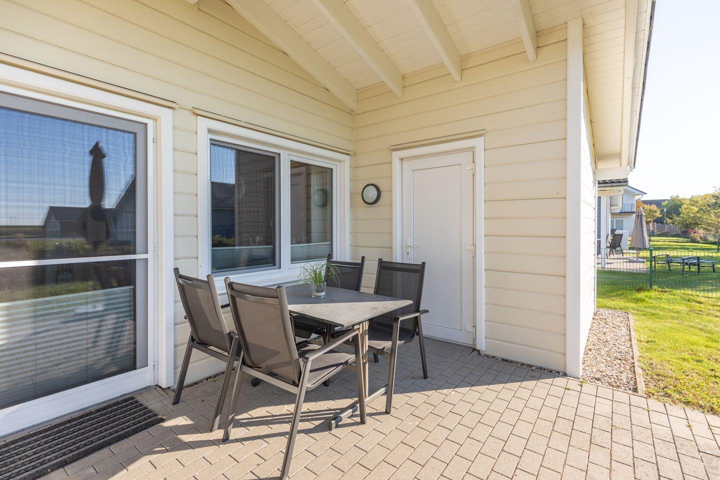 Das Badezimmer lässt keine Wünsche offen: zwei Waschbecken und eine ebenerdige Dusche geben Ihrem Urlaub den richtigen Rahmen. Das Ferienhaus verfügt über ein zusätzliches WC. Auf der überdachten, windgeschützten Terrasse können Sie auf bequemen Gartenstühlen, den Sonnenliegen oder im Strandkorb die Sonne genießen.