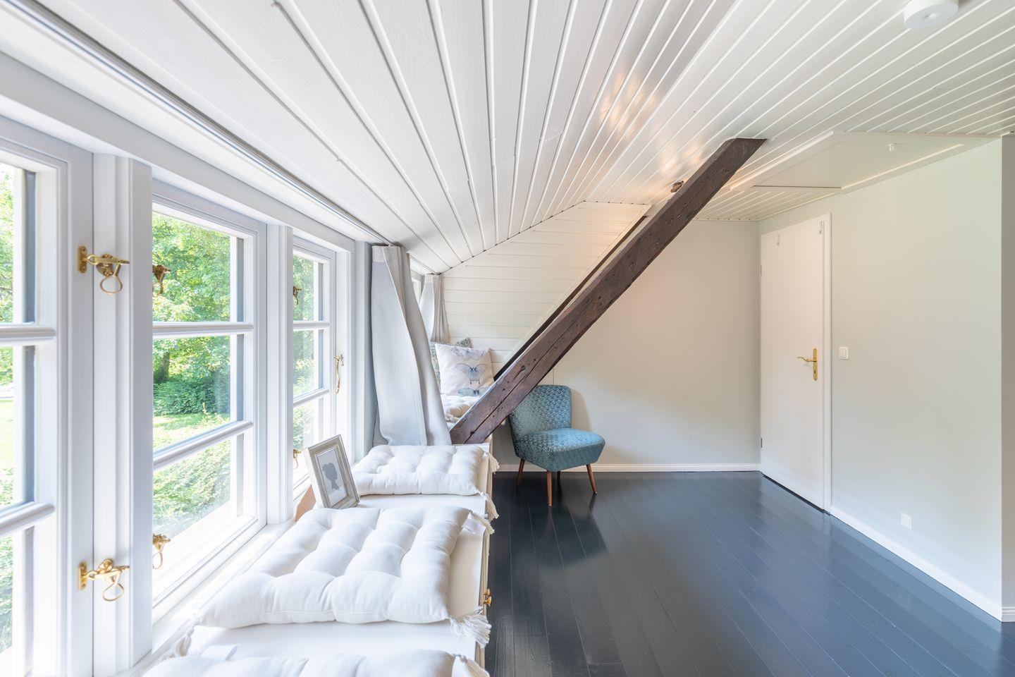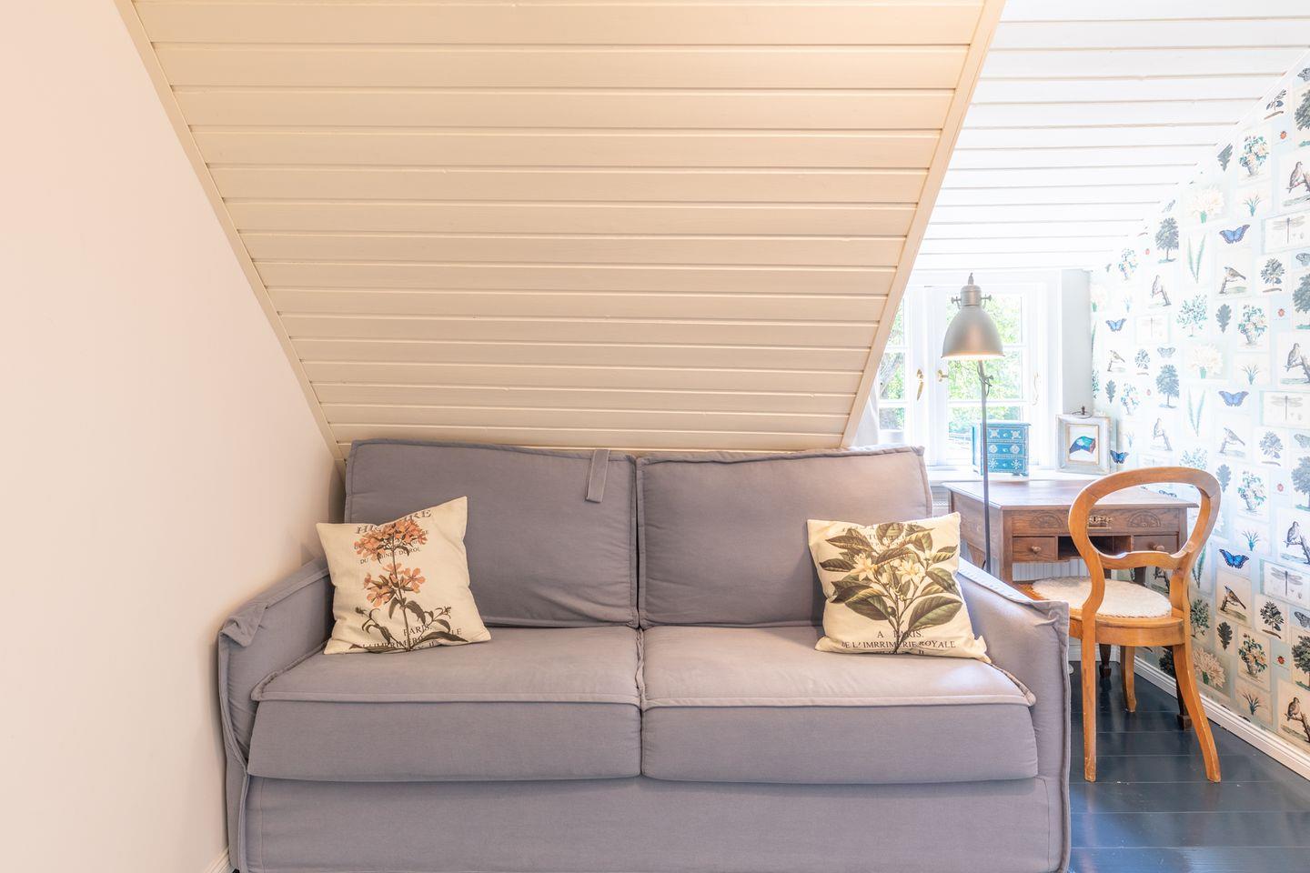 Über eine Treppe erreichen Sie das zweite, großzügige Schlafzimmer mit einem Doppelbett (180 x 200) und einer chilligen Rückzugsecke am Fenster mit grandiosem Ausblick in die Natur. Das Duschbad rundet das Bild ab. Bettwäsche und Handtücher (Erstausstattung) werden für Sie bereitgelegt.