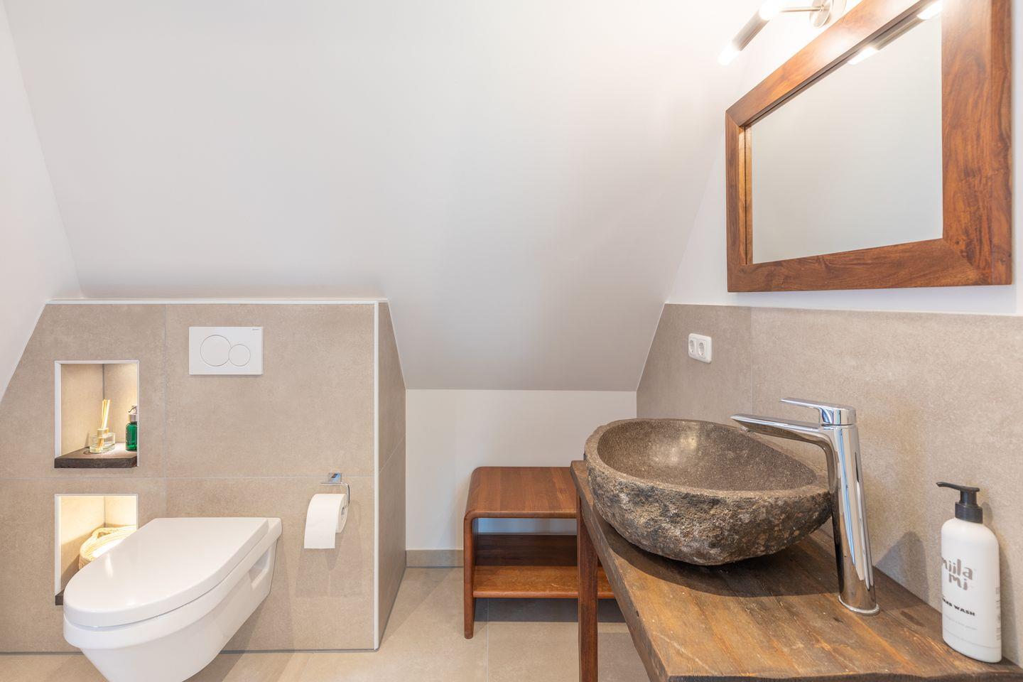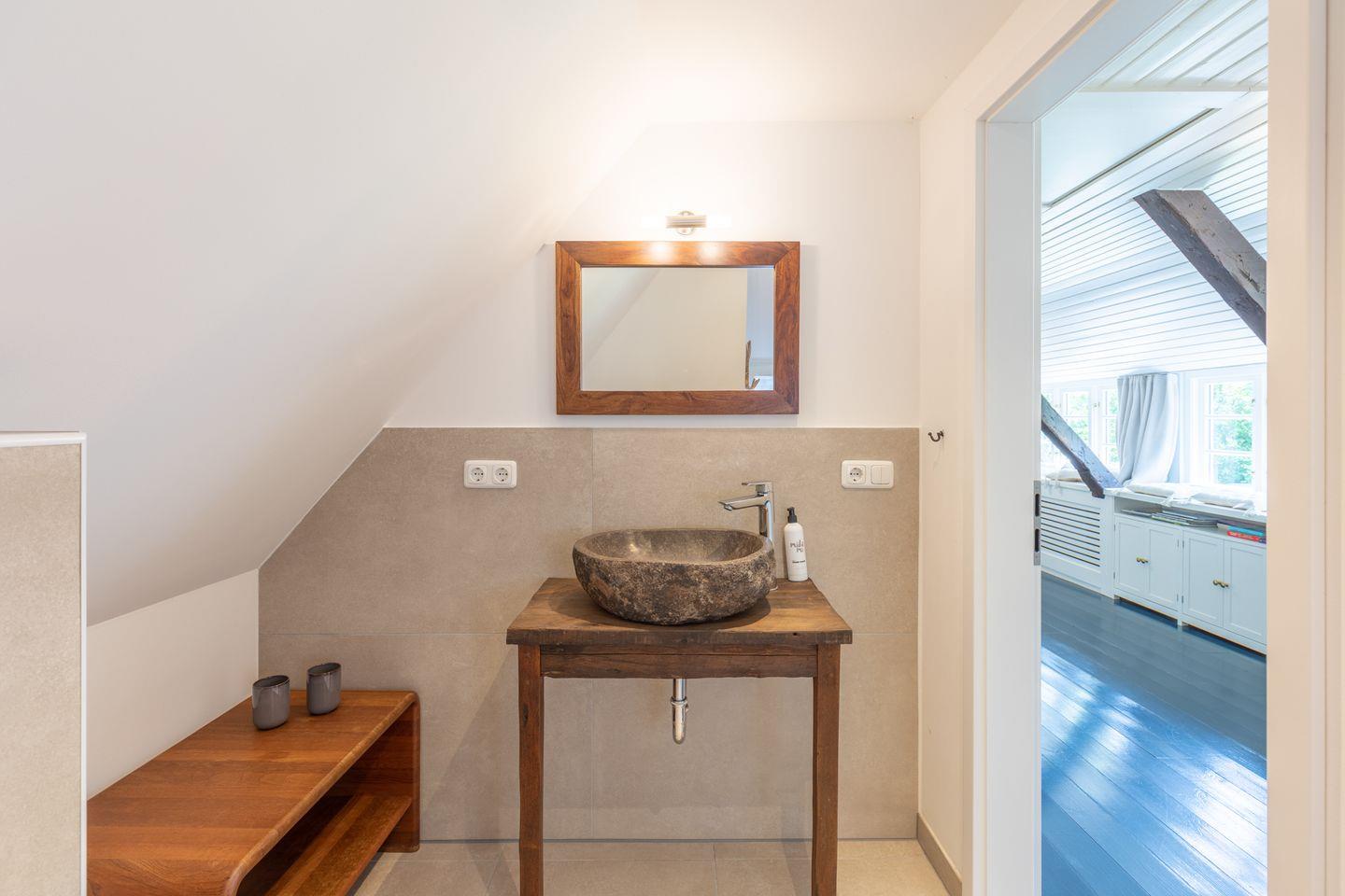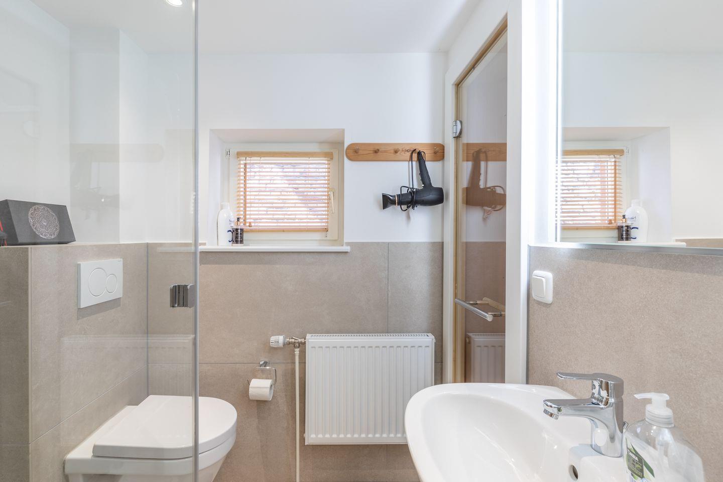 Das Duschbad wird gekrönt mit einer kleinen 2-Personen-Sauna.