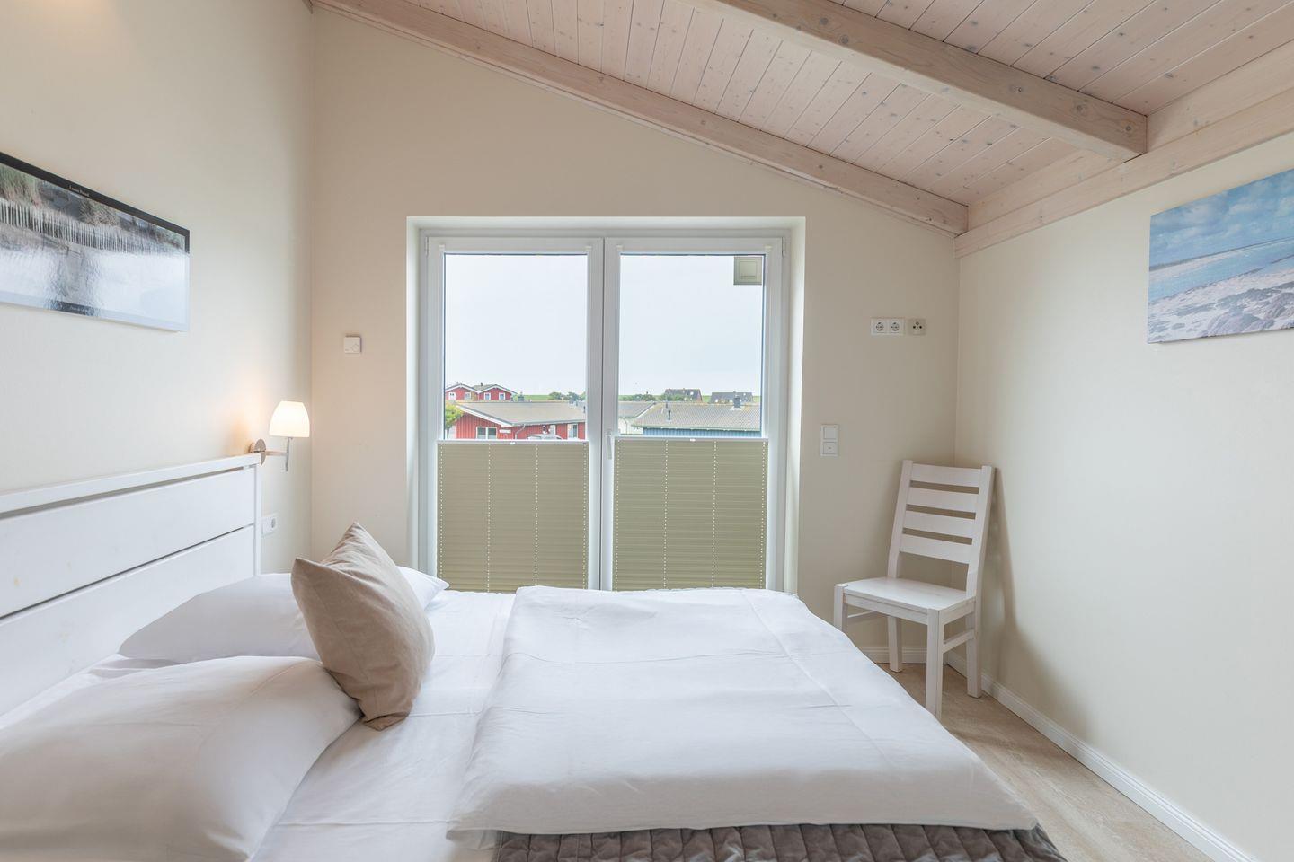 Eines der Schlafzimmer befindet sich im Erdgeschoss und ist mit einem komfortablen 1,20 m breiten Bett ausgestattet. Ebenso befindet sich im Erdgeschoss ein Badezimmer mit einer ebenerdigen Dusche, so dass auch gehbeeinträchtigte Gäste ein komfortabler und stufenfreier Zugang ermöglicht wird.