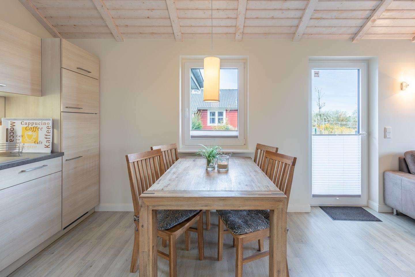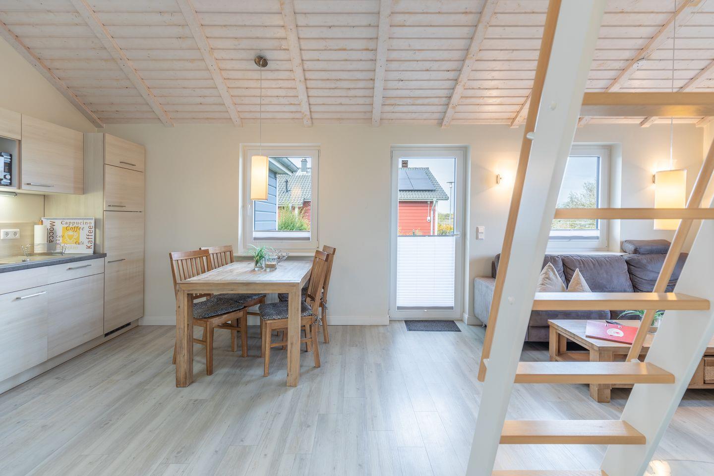 Das 50 qm große Ferienhaus ist modern und exklusiv im skandinavischen Charme eingerichtet. das Schlafzimmer mit jeweils einen Komfort-Doppelbett (180 x 200 cm) das gemütliche Wohnzimmer ist mit SAT-TV und gemütlicher Sofaecke ausgestattet. Der Kaminofen sorgt auch in der kälteren Jahreszeit für behagliche Stunden. Die offene Küche bietet Ihnen eine exklusive und umfangreiche Ausstattung, die das Herz eines jeden Hobbykochs höher schlagen lässt: Ceranfeld mit 4 Kochplatten, Backofen, Kühlschrank mit ***Gefrierfach, Mikrowelle, Geschirrspüler, Filterkaffeemaschine uvm.