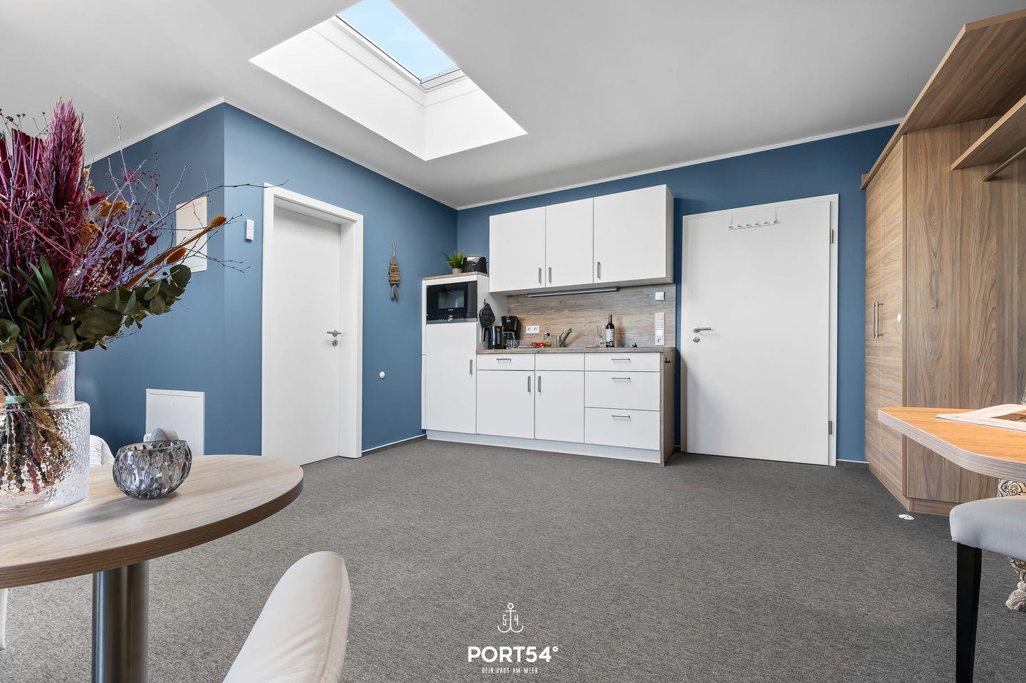 Die Wohnung überzeugt durch ihre helle und freundliche Atmosphäre. Große Oberlichtfenster lassen viel Tageslicht herein und schaffen ein angenehmes Wohngefühl. Der offene Wohn- und Küchenbereich ist modern gestaltet und perfekt geeignet für Selbstversorger und entspannte Abende. Das moderne Badezimmer mit Dusche bietet zusätzlichen Komfort und eine hochwertige Ausstattung.